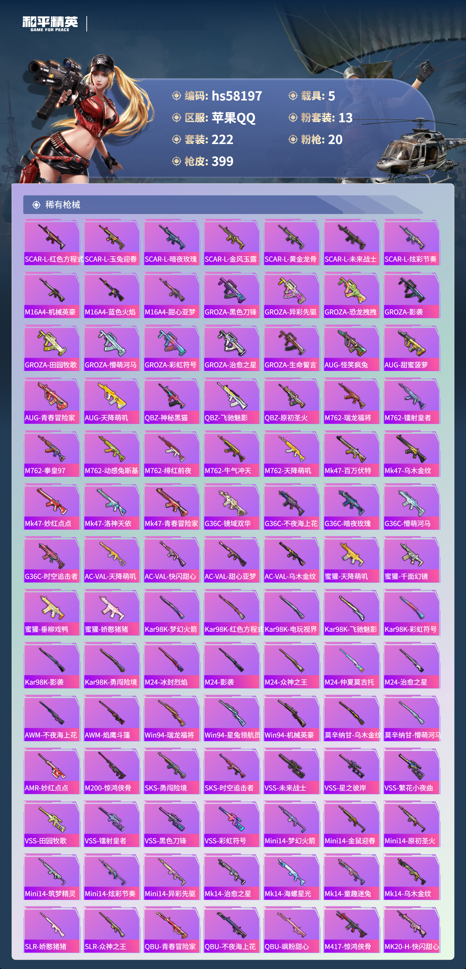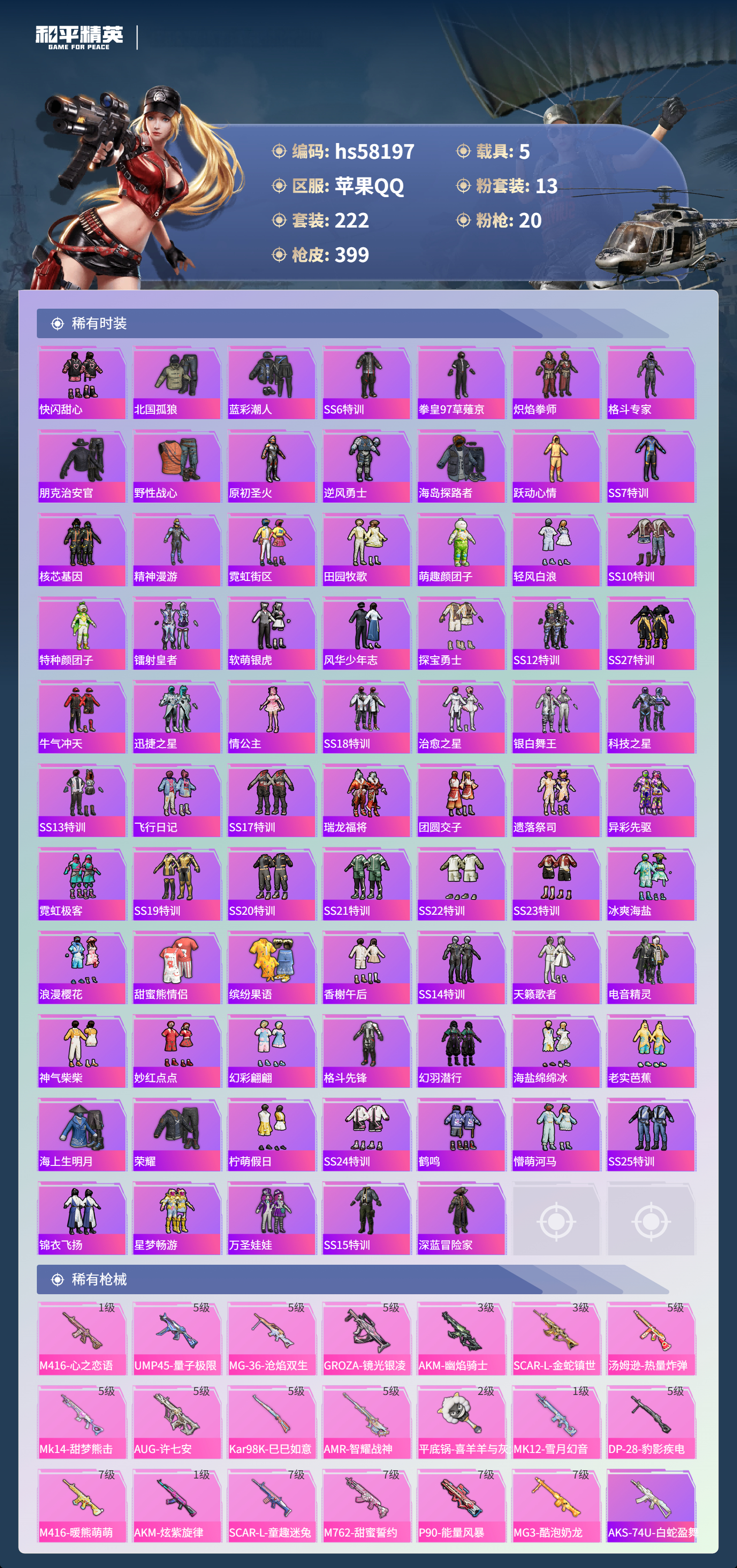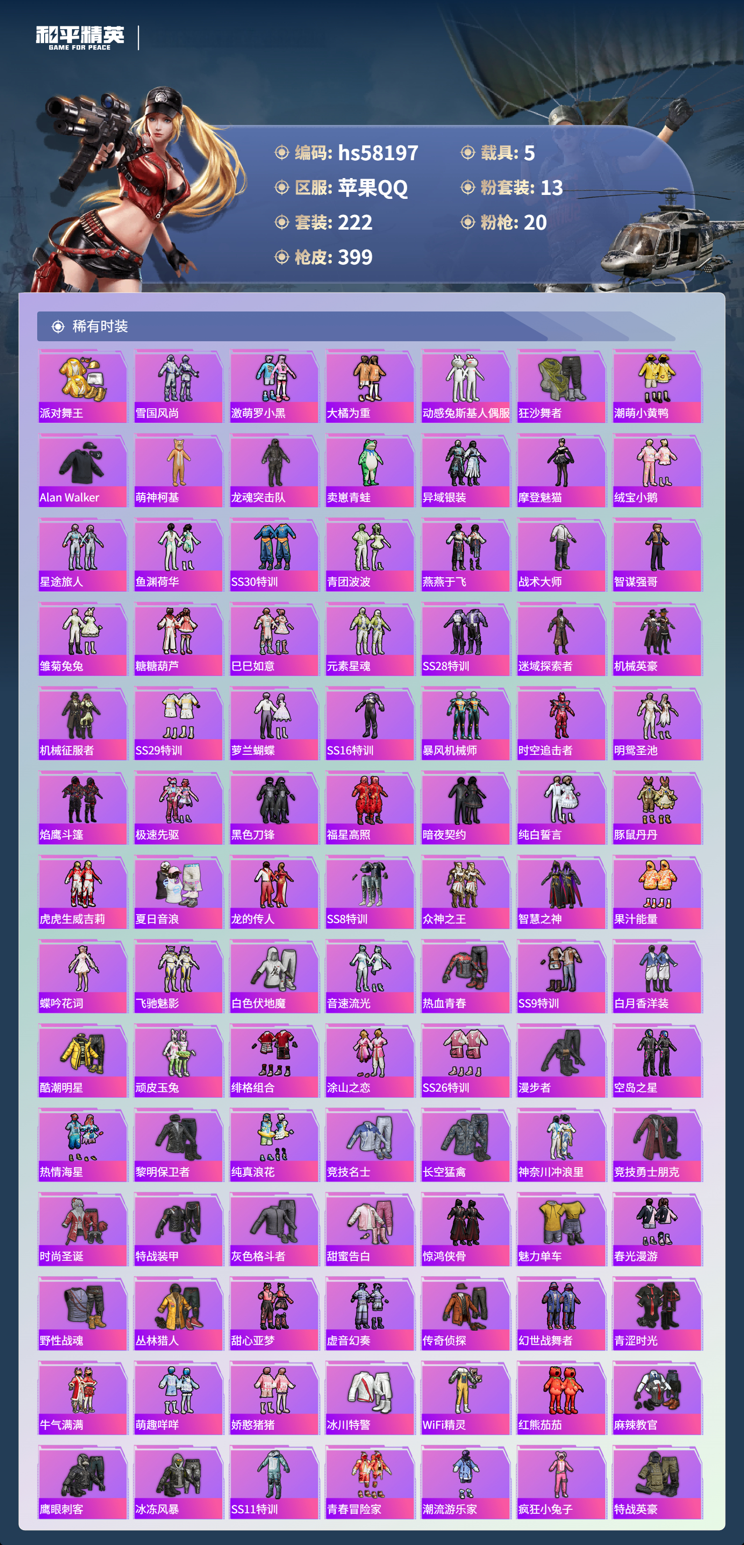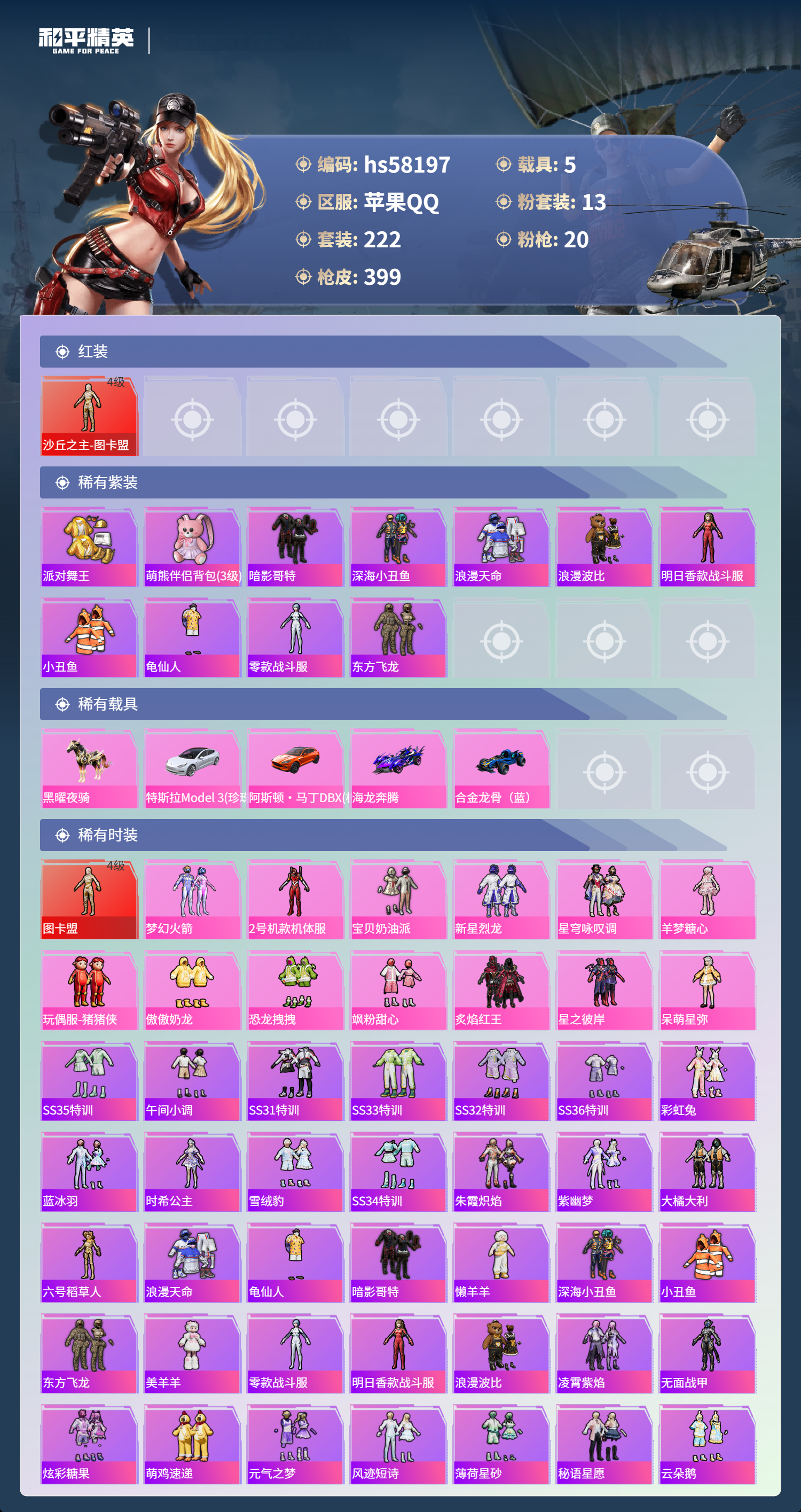 hs58197 苹果手q-30王牌印记-有战神框-1红装-13粉装-20特效呛-5载具-热力值-222套装-399呛皮-14卓越印记-14传奇印记【1红装】沙丘之主-图卡盟/4级【13粉装】套装-宝贝奶油派套装-傲傲奶龙套装-炙焰红王套装-新星烈龙套装-星穹咏叹调角色-羊梦糖心套装-恐龙拽拽玩偶服-猪猪侠套装-飒粉甜心角色-呆萌星弥套装-星之彼岸角色-2号机款