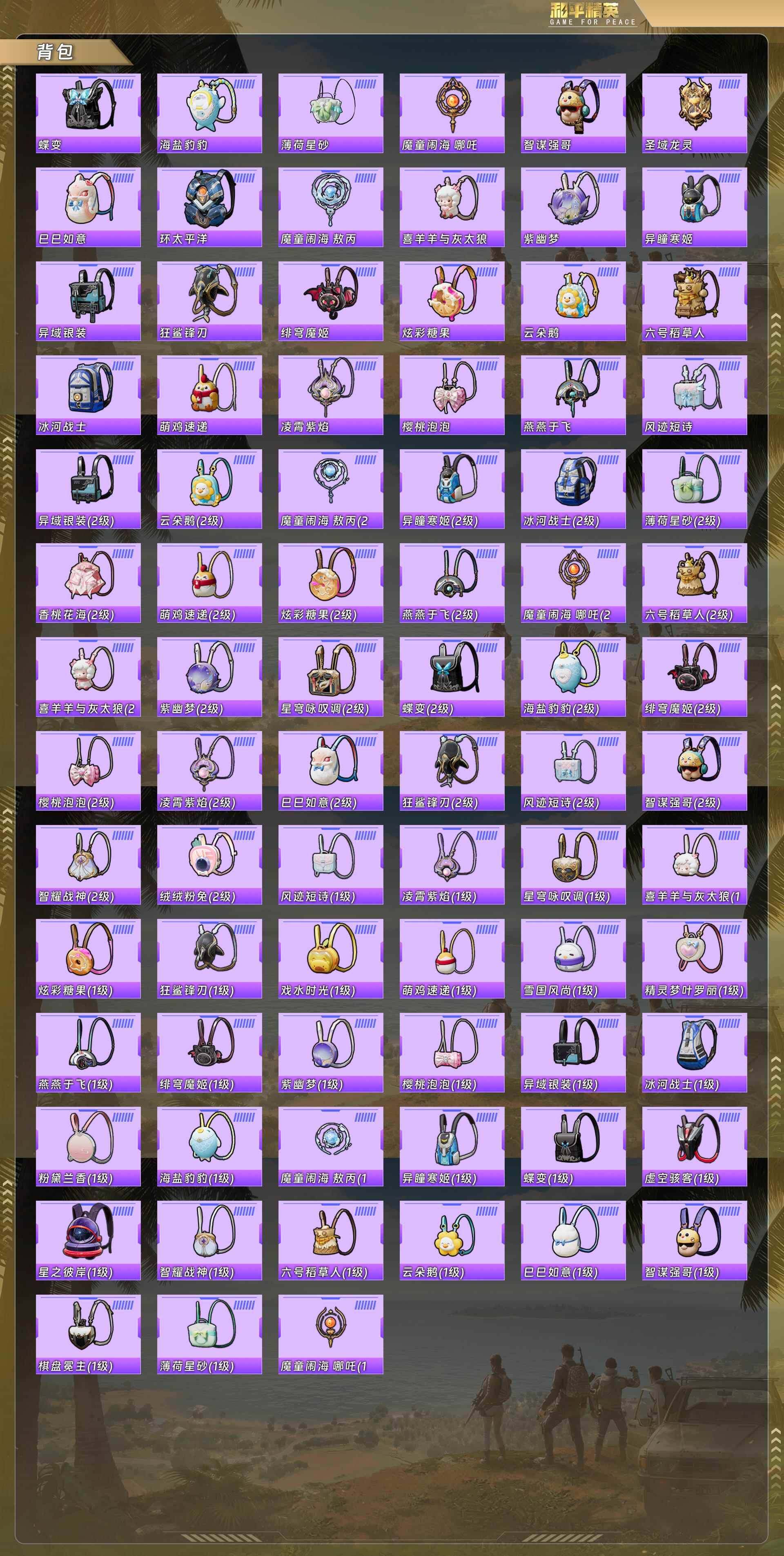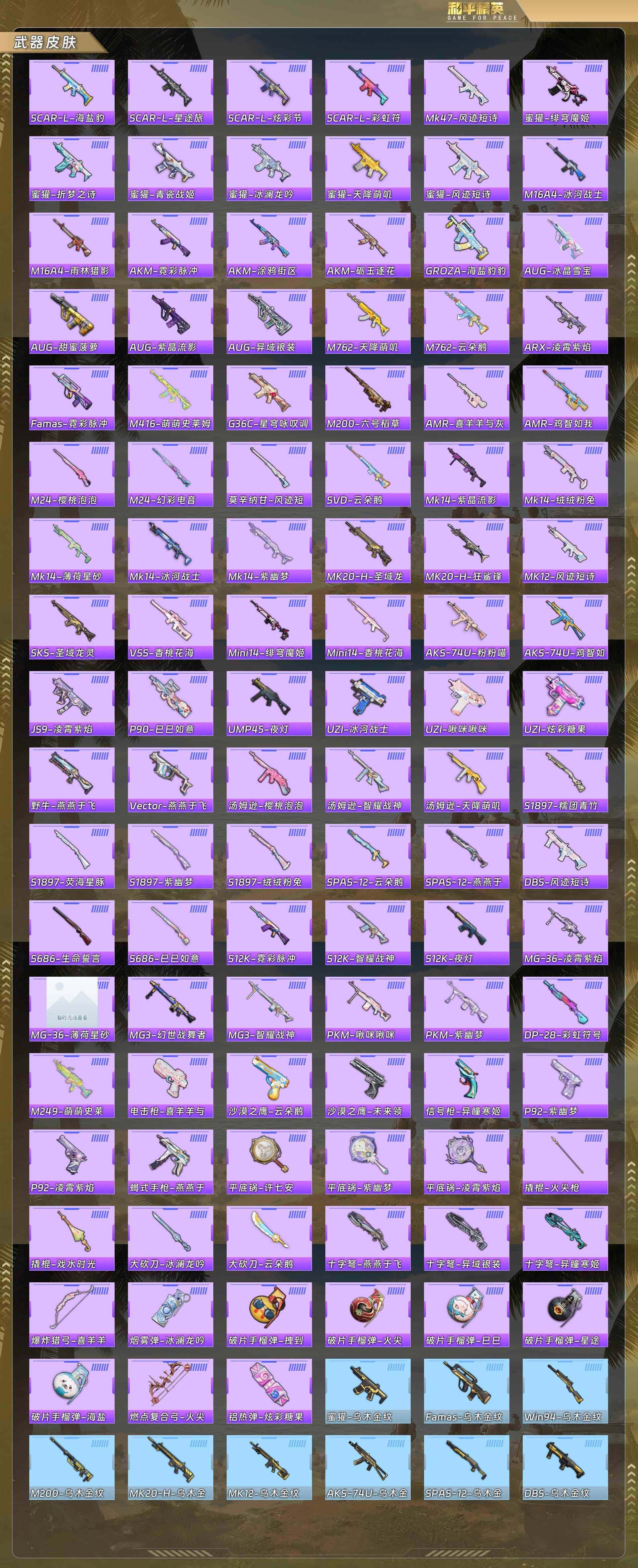 身法号-魔童闹海-哪吒[2级]/魔童闹海-敖丙[1级]/aug-暖羊咩咩[5级]/scar-l-魔童闹海 哪吒[3级]/双彩圣灵/绒绒粉兔/萌萌史莱姆/lgd战队服 /复仇流浪者/智耀战神/mk14-樱桃泡泡[6级]/groza-镜光银凌[5级]/kar98k-巳巳如意[5级]/dp-28-豹影疾电[5级]/amr-智耀战神[4级]/p90-魔童闹海 敖丙[3级]/冰绡玉鳞/没战神框 hp5224 【红色神装等级】:魔童闹海-敖丙一级,魔童闹海-哪吒二级 【红色角色神装】:魔童闹海-敖丙,魔童闹海-哪吒 【热门品类】:套装-粉红小猪 【粉色套装】:角色-复仇流浪者,角色-智耀战神 【粉色呛皮等级】:scar-l-魔童闹海 哪吒三级,groza-镜光银凌五级,aug-暖羊咩咩五级,p90-魔童闹海 敖丙三级,kar98k-巳巳如意五级,mk14-樱桃泡泡六级,amr-智耀战神四级,dp-28-豹影疾电五级 【粉色载具】:冰绡玉鳞 【粉色呛皮】:scar-l-魔童闹海 哪吒,groza-镜光银凌,aug-暖羊咩咩,p90-魔童闹海 敖丙,kar98k-巳巳如意,mk14-樱桃泡泡,amr-智耀战神,dp-28-豹影疾电 【粉色飞行器】:圣域金龙飞行器,飞天猪飞行器,灵珠游龙飞行器 【粉色降落伞】:金丰海韵降落伞,樱桃泡泡降落伞,圣域龙灵降落伞,喜羊羊与灰太狼降落伞,魔童闹海 哪吒降落伞,魔童闹海 敖丙降落伞,异瞳寒姬降落伞,极意拳锋降落伞,炫彩糖果降落伞 【稀有套装】:套装-巳巳如意,套装-燕燕于飞,套装-鱼渊荷华,角色-糖霜甜心,角色-蜜桃派对,套装-萌萌史莱姆,套装-粉恋花,套装-紫幽梦,套装-蓝冰羽,套装-星影赞美诗,套装-彩虹兔,套装-云朵鹅,套装-雪绒豹,角色-绛羽幽主,套装-朱霞炽焰,套装-凌霄紫焰,套装-擎苍青焰,玩偶服-懒羊羊,玩偶服-美羊羊,玩偶服-喜羊羊,角色-绯色魅影,套装-炫彩糖果 【稀有呛皮】:aug-冰晶雪宝,m16a4-雨林猎影,scar-l-炫彩节奏,m416-萌萌史莱姆,aug-甜蜜菠萝,m762-天降萌叽,m762-云朵鹅,g36c-星穹咏叹调,蜜獾-天降萌叽,蜜獾-青瓷战姬,蜜獾-绯穹魔姬,蜜獾-折梦之诗,arx-凌霄紫焰,uzi-啾咪啾咪,ump45-夜灯,汤姆逊-天降萌叽,汤姆逊-樱桃泡泡,汤姆逊-智耀战神,js9-凌霄紫焰,p90-巳巳如意,m24-幻彩电音,m24-樱桃泡泡,sks-圣域龙灵,mini14-绯穹魔姬,amr-喜羊羊与灰太狼,mk20-h-圣域龙灵,m200-六号稻草人,svd-云朵鹅,s686-生命誓言,s686-巳巳如意,s1897-荧海星豚,s12k-夜灯,s12k-智耀战神,spas-12-云朵鹅,m249-萌萌史莱姆,dp-28-彩虹符号,mg3-幻世战舞者,mg3-智耀战神,mg-36-凌霄紫焰,p92-凌霄紫焰,沙墨之鹦-云朵鹅,爆炸猎弓-喜羊羊与灰太狼,大砍刀-云朵鹅,撬棍-戏水时光,平底锅-凌霄紫焰,破片手留单-巳巳如意 【其他套装】:套装-lgd战队服,套装-ss28特训,套装-ss29特训,套装-人气偶像,套装-完美偶像,套装-春日漫步,套装-极速红龙,套装-柠萌假日,套装-森林游猎者,套装-橘黑制服,套装-海岛探路者,套装-深蓝色名流,套装-湖蓝色名流,套装-滨海厨神,套装-特训学院,套装-猎鹰,套装-猛禽,套装-生化防暴队,套装-白色伏地魔,套装-破蛋小黄鸡,套装-竞技达人朋克,套装-粉红小猪,套装-红色运动,套装-绯格组合,套装-缤纷果语,套装-耀粉歌者,套装-蓝彩潮人,套装-蓝色守护者,套装-蓝色运动,套装-酒红色名流,套装-酷萌兔限定,套装-长空猛禽,套装-青年教官,套装-青春校园,套装-顽皮玉兔,套装-魅力单车,套装-黄色伏地魔,套装-黄色名流,套装-黄色运动,套装-黑色伏地魔,套装-甜蜜菠萝,套装-极地朋克,套装-冰川特警,套装-雪山征服者,套装-核芯基因,套装-潮流游乐家 【营地id】:778254415