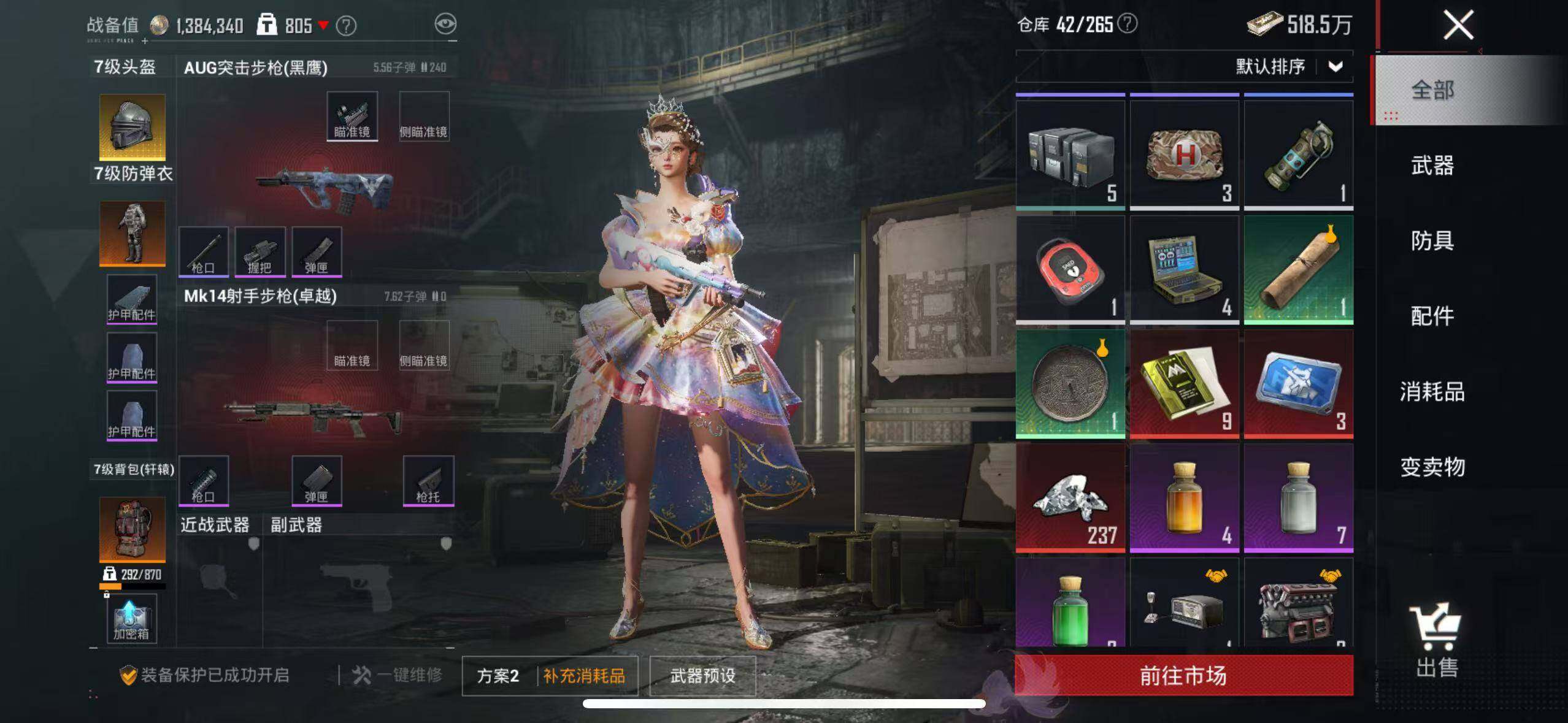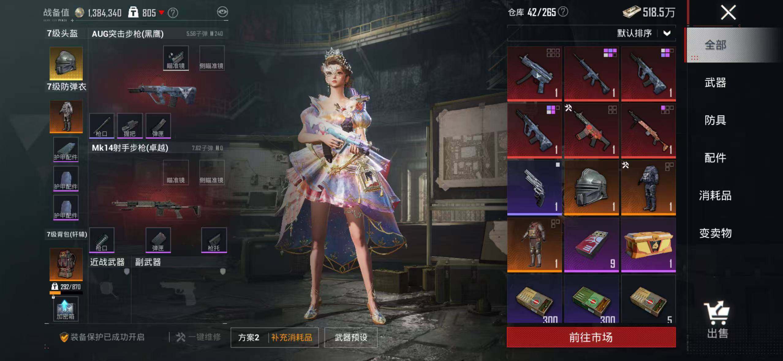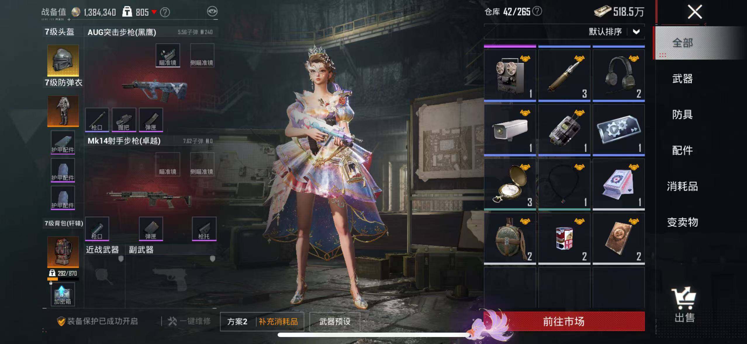 6297 2粉装-3特效呛-0载具-4粉色飞行器-22385热力值-3王牌印记-41套装-77呛皮 【热门品类】:套装-小丑鱼 【粉色套装】:粉装-星穹咏叹调,角色-羊梦糖心 【粉色呛皮等级】:amr-智耀战神七级 【粉色呛皮】:kar98k-巳巳如意,amr-智耀战神,dp-28-豹影疾电 【粉色飞行器】:繁龙极客飞行器,镜光幻境飞行翼,极意拳锋飞行器 【粉色降落伞】:绝对恒星降落伞