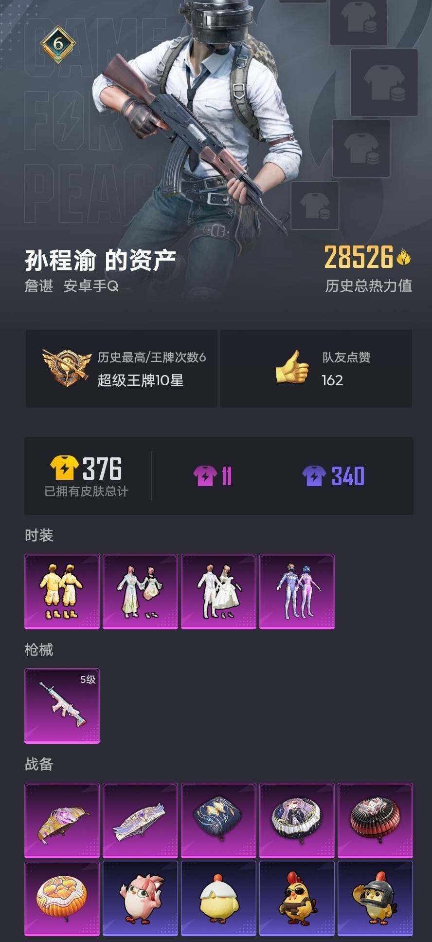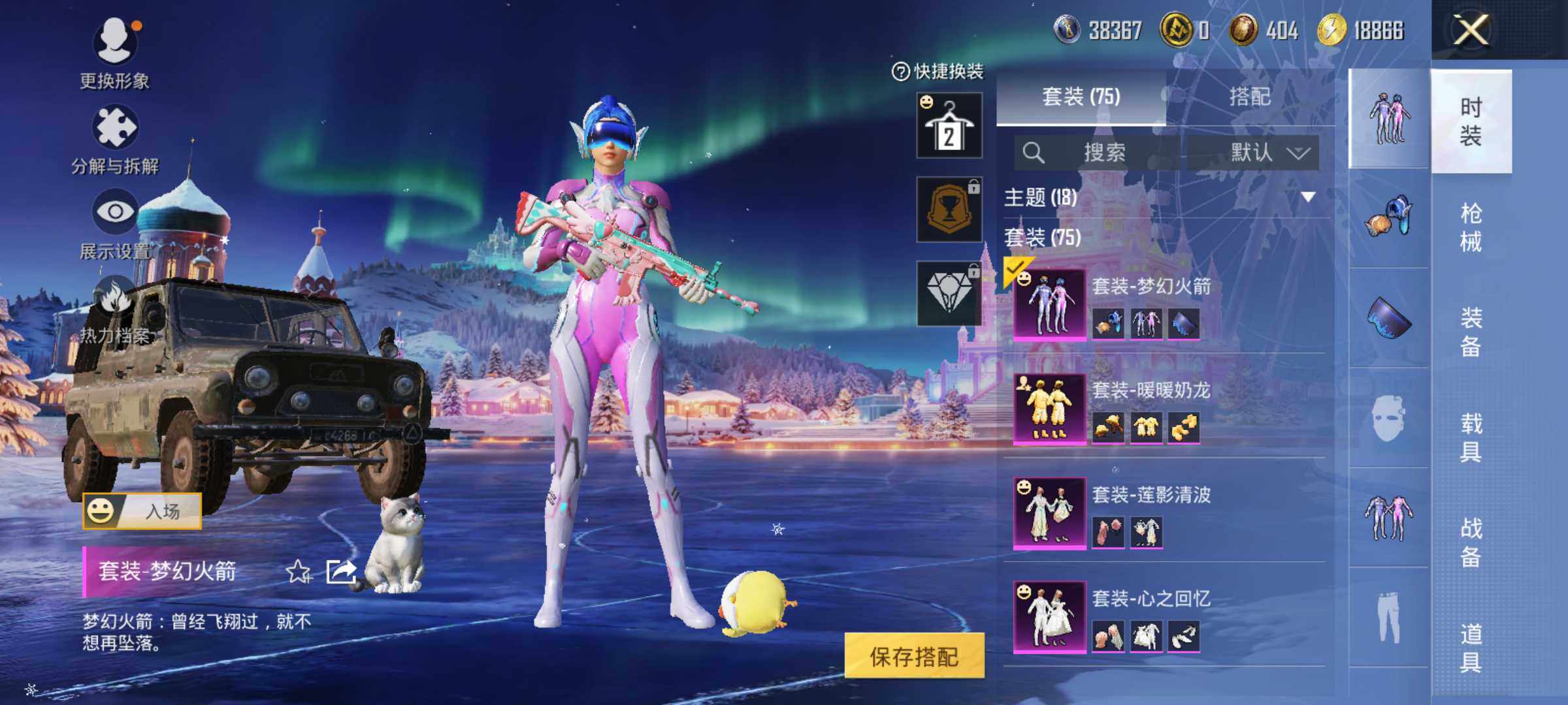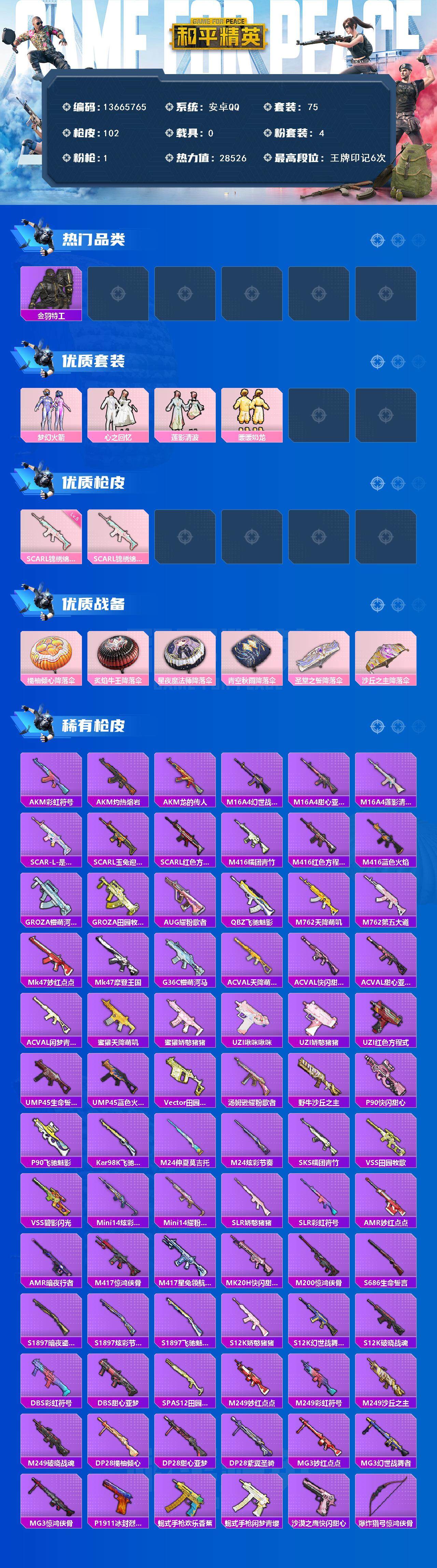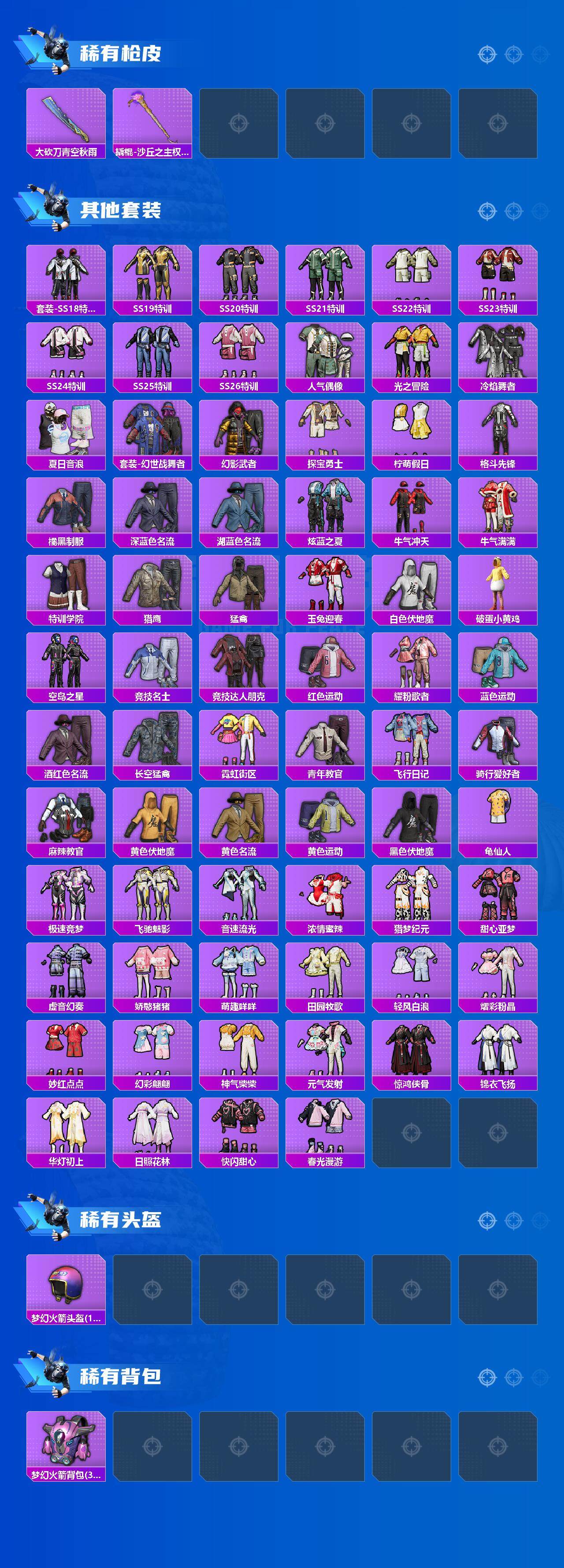 6155-4粉装-1特效呛-0载具-0粉色飞行器-28526热力值-6王牌印记-75套装-102呛皮 【热门品类】:粉装-梦幻火箭,套装-金羽特工,套装-龟仙人 【粉色套装】:粉装-梦幻火箭,粉装-心之回忆,粉装-莲影清波,粉装-暖暖奶龙 【粉色呛皮等级】:scar-l-锦绣绵绵五级 【粉色呛皮】:scar-l-锦绣绵绵 【粉色降落伞】:橘柚倾心降落伞,炙焰牛王降落伞,星夜魔法师降落伞