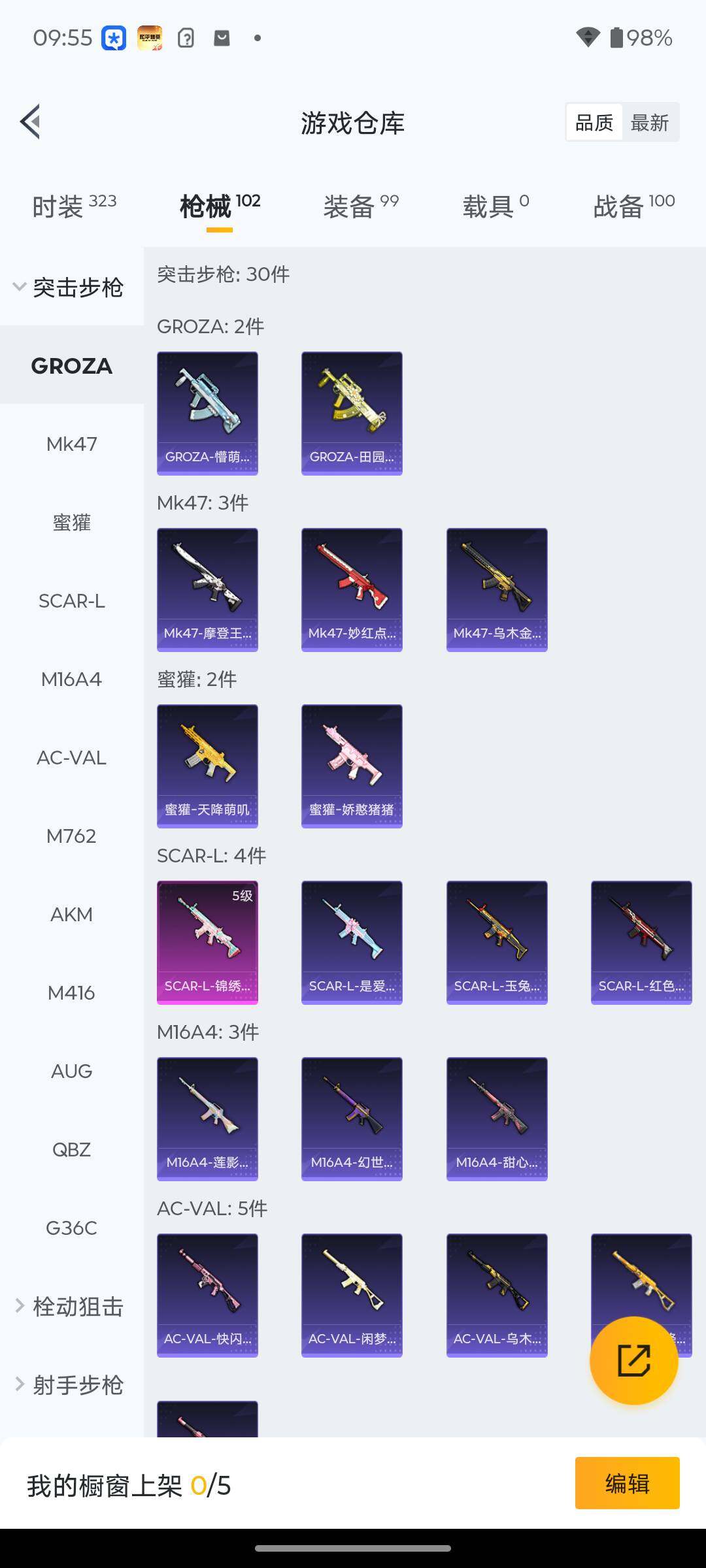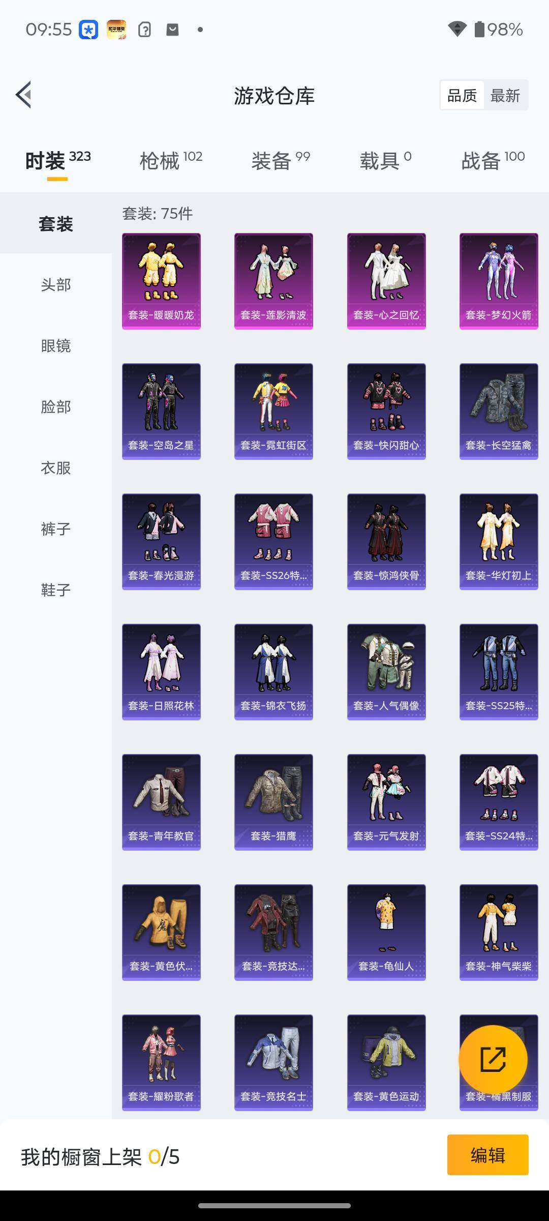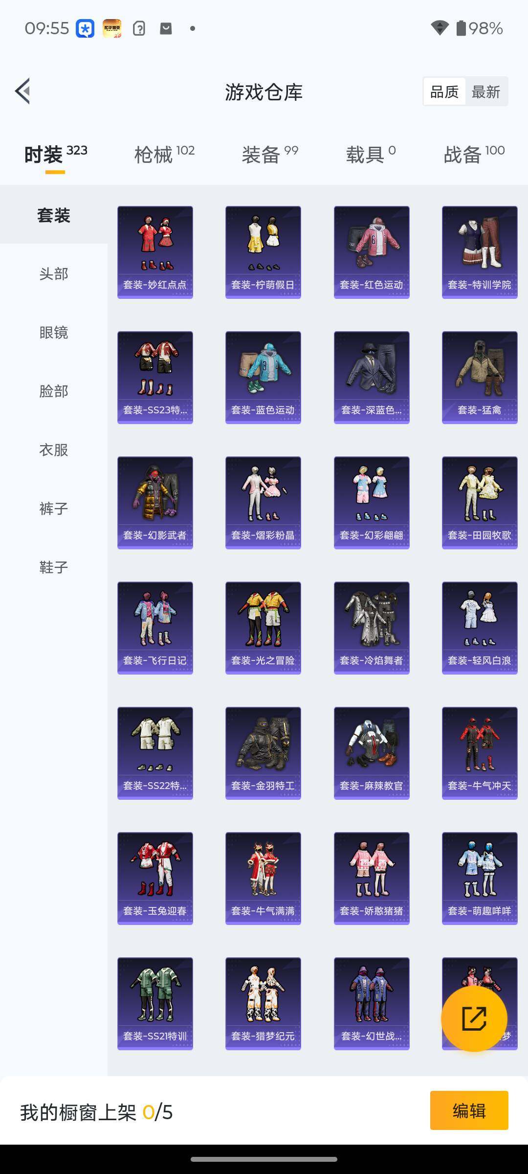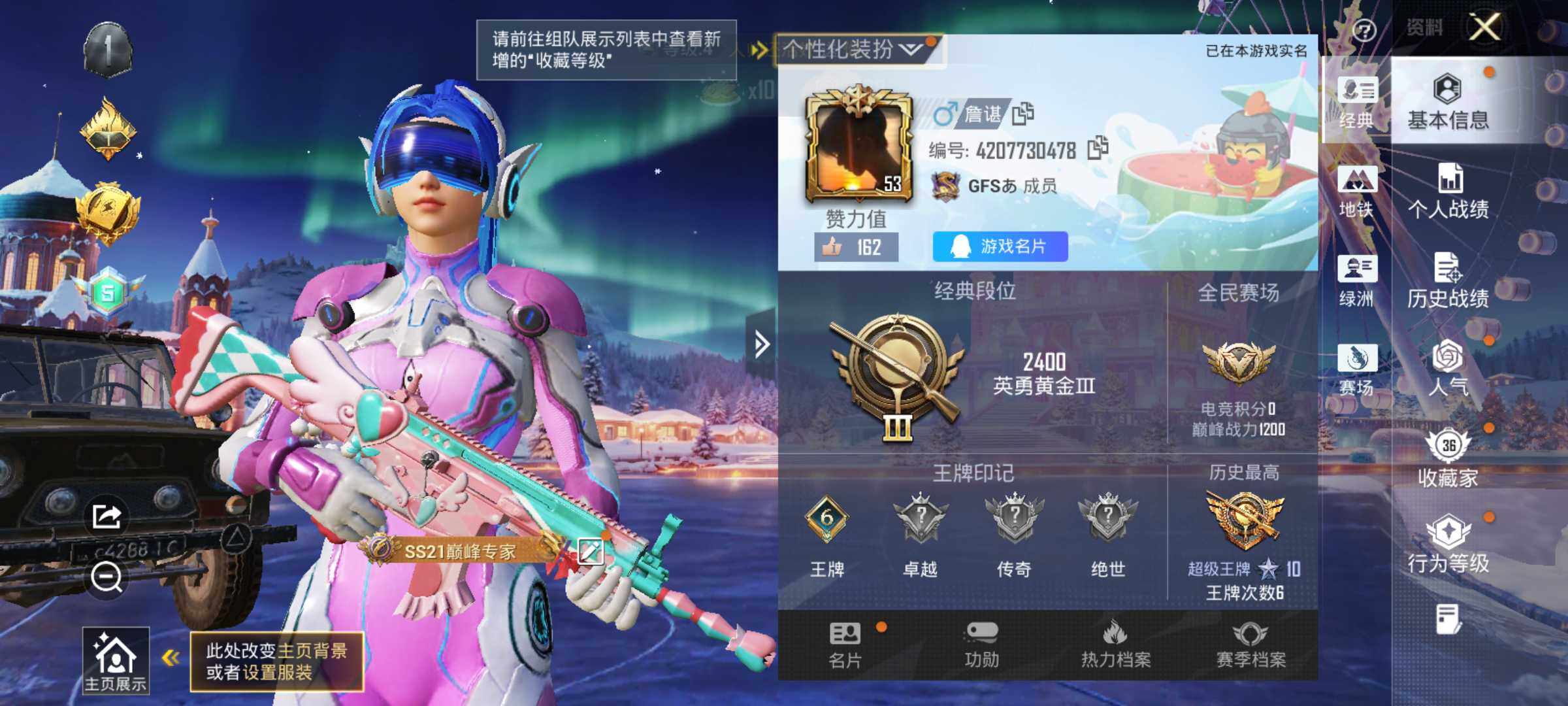 6155-4粉装-1特效呛-0载具-0粉色飞行器-28526热力值-6王牌印记-75套装-102呛皮 【热门品类】:粉装-梦幻火箭,套装-金羽特工,套装-龟仙人 【粉色套装】:粉装-梦幻火箭,粉装-心之回忆,粉装-莲影清波,粉装-暖暖奶龙 【粉色呛皮等级】:scar-l-锦绣绵绵五级 【粉色呛皮】:scar-l-锦绣绵绵 【粉色降落伞】:橘柚倾心降落伞,炙焰牛王降落伞,星夜魔法师降落伞