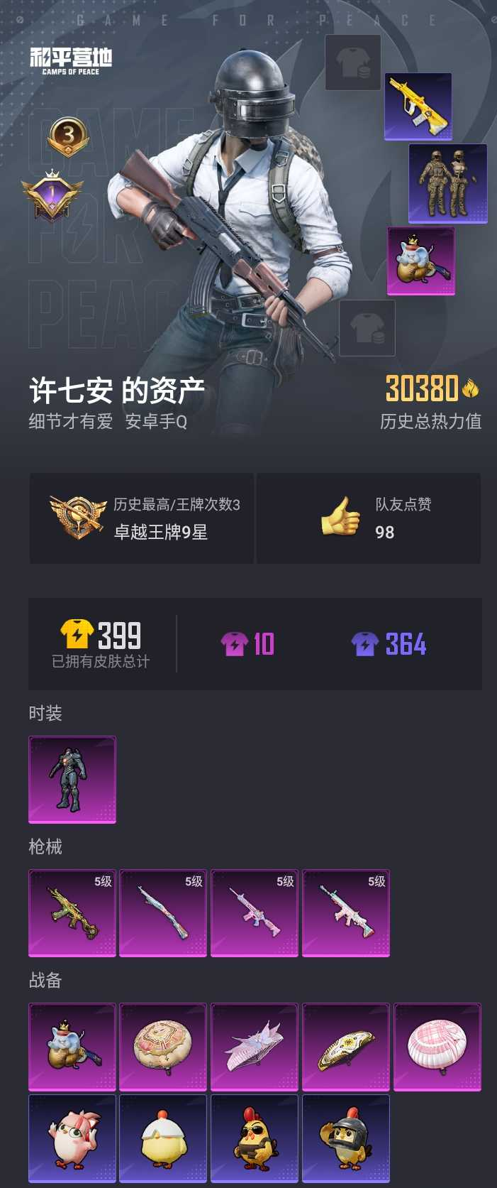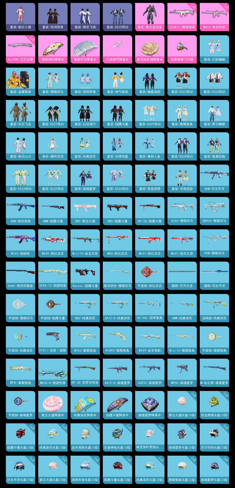【和平精英】【lyhp20515】1粉装,4特效呛,0载具,历史最高段位:卓越王牌9星 王牌印记3次 热力值:30380,84套装,108呛械,123装备,67战备;套装:角色-复仇流浪者,套装-红色运动,套装-黄色运动,套装-蓝色运动,套装-白色伏地魔,套装-竞技名士,套装-酒红色名流,套装-长空猛禽,套装-竞技勇士朋克,套装-旭日情侣,套装-燃烧卡路里,套装-完美偶像,套装-人气偶像,套装-幻影武者,套装-街头潮人,套装-魅力单车,套装-竞技达人朋克,套装-森林游猎者,套装-都市魅力,套装-荣耀,套装-金耀舞者,套装-生化防暴队,套装-青涩时光,套装-缤纷果语,套装-滨海厨神,套装-龙魂突击队,套装-元素星魂,套装-极速红龙,套装-东方飞龙,套装-粉红小猪,套装-破蛋小黄鸡,套装-疯狂小兔子,套装-北国孤狼,套装-跃动心情,套装-白熊同盟,套装-白糯汤圆,套装-战术大师,套装-曼妙人鱼,套装-热情海星,套装-纯真浪花,套装-吉莉礼服,套装-光之冒险,套装-ss23特训,套装-数潮玩咖,套装-神气柴柴,套装-懵萌河马,套装-幻彩翩翩,套装-柠萌假日,套装-ss24特训,套装-龟仙人,套装-ss25特训,套装-惊鸿侠骨,套装-锦衣飞扬,套装-深海梦境,套装-龙的传人,套装-冰河战士,套装-云魄琉璃,套装-焰鹰斗篷,套装-幽夜迷踪,套装-幻羽潜行,套装-ss27特训,套装-恋语绒绒,套装-ss28特训,角色-蝶吟花词,套装-街头风暴,套装-海盐绵绵冰,套装-蝶变,套装-粉日山川,套装-ss29特训,套装-雏菊兔兔,套装-萝兰蝴蝶,套装-ss31特训,套装-智谋强哥,套装-ss33特训,套装-巳巳如意,套装-ss32特训,套装-青翼流星,套装-大橘大利,套装-ss35特训,套装-琴音绮想,套装-画境星梦,套装-书海巡游,套装-ss36特训,套装-雪国风尚;呛皮:g36c-懵萌河马,ac-val-乌木金纹,ac-val-天降萌叽,ac-val-冠军兔兔,akm-缤纷海域,akm-破晓战魂,akm-环太平洋,akm-龙的传人,m16a4-幻世战舞者,m16a4-冰河战士,mk47-妙红点点,mk47-炫光之旅,5级scar-l-锦绣绵绵,scar-l-红色方程式,scar-l-海盐豹豹,famas-汪仔布丁,groza-懵萌河马,groza-海盐豹豹,ace32-画境星梦,ace32-冰晶雪宝,m762-诡娃娃,m762-雏菊兔兔,m762-登顶巅峰,5级m416-电玩时刻,m416-红色方程式,q-彩虹符号,q-纯真浪花,aug-天降萌叽,蜜獾-天降萌叽,蜜獾-乌木金纹,awm-天降萌叽,awm-焰鹰斗篷,awm-纯真浪花,莫辛纳甘-乌木金纹,莫辛纳甘-懵萌河马,m200-惊鸿侠骨,m200-乌木金纹,5级kar98k-巳巳如意,kar98k-彩虹符号,m24-炫彩节奏,win94-乌木金纹,mini14-金玉无双,mini14-炫彩节奏,mini14-香桃花海,mini14-雏菊兔兔,mk20-h-竞速先锋,mk20-h-星途旅人,mk20-h-狂鲨锋刃,mk20-h-乌木金纹,m417-惊鸿侠骨,mk12-乌木金纹,m1加兰德-画境星梦,mk14-冰河战士,uzi-天降萌叽,uzi-冰河战士,uzi-啾咪啾咪,uzi-汪仔布丁,vect-焰鹰斗篷,ump45-蓝色火焰,ump45-海盐豹豹,mp5k-画境星梦,mp5k-乌木金纹,汤姆逊-天降萌叽,汤姆逊-纯真浪花,5级aks-74u-森灵之息,p90-玩趣呆呆,p90-巳巳如意,p90-乌木金纹,野牛-雏菊兔兔,aa12-g-纯真浪花,aa12-g-画境星梦,s12k-玩趣呆呆,spas-12-田园牧歌,s686-奇异狩猎者,s686-巳巳如意,dbs-第五大道,dbs-焰鹰斗篷,dbs-乌木金纹,mg3-幻世战舞者,mg3-妙红点点,mg3-惊鸿侠骨,mg-36-薄荷星砂,dp-28-彩虹符号,dp-28-焰鹰斗篷,dp-28-尼罗河传说,m249-妙红点点,m249-金丰海韵,m249-冰晶雪宝,pkm-懵萌河马,pkm-啾咪啾咪,r1895-雏菊兔兔,p1911-创世·救赎,平底锅-妙红点点,平底锅-懵萌河马,平底锅-惊鸿侠骨,平底锅-焰鹰斗篷,平底锅-纯真浪花,平底锅-雏菊兔兔,平底锅-画境星梦,撬棍-齐天大圣,撬棍-环太平洋,撬棍-冰晶雪宝,十子怒-异域银装,破片手留单-海盐豹豹,破片手留单-巳巳如意,破片手留单-爆破雪人,爆炸猎弓-惊鸿侠骨,铝热弹-炫彩糖果;降落伞:极意拳锋飞行器,登顶巅峰飞行器; 详情看图3w3热力值精品小号 1粉装5满级特效呛 复仇流浪者 东方飞龙 满级电玩m4 满级死噶