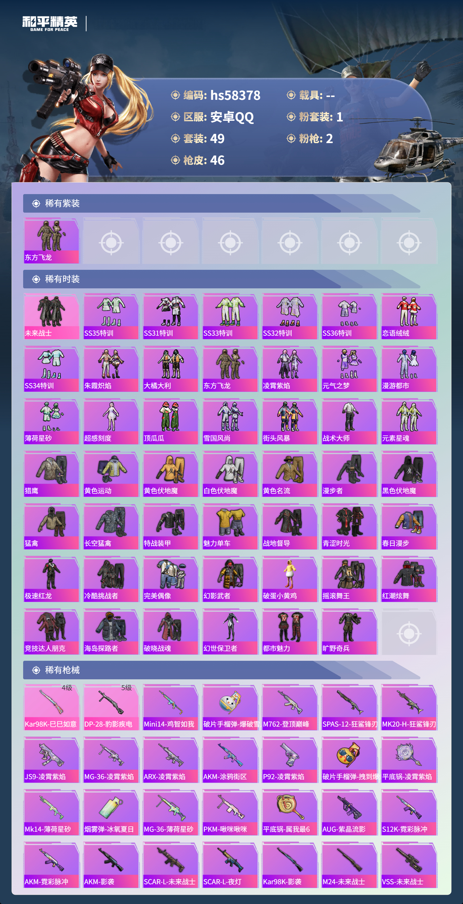 hs58378 安卓手q-4王牌印记-1粉装-2特效呛-13504热力值-49套装-46呛皮-1卓越印记【1粉装】套装-未来战士【2特效呛】kar98k-巳巳如意/4级dp-28-豹影疾电/5级【1稀有紫装】东方飞龙【48稀有时装】ss35特训ss31特训ss33特训ss32特训ss36特训恋语绒绒ss34特训朱霞炽焰大橘大利东方飞龙凌霄紫焰元气之梦漫游都市薄荷
