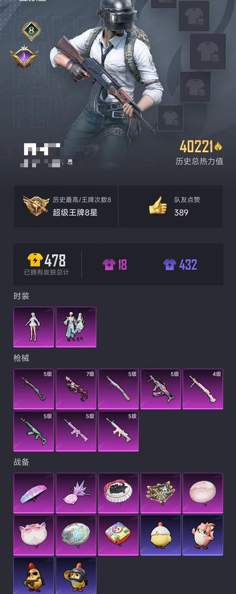 0载具-100套装-134呛皮-蓝螳螂 【2粉装8特效呛可秒换绑】 安卓q区-40221热力值-8印记-100套装-134呛皮 【1稀有】 mark.06【2粉装】 金丰海韵 角色-荧海星豚【8特效呛】 scar-l-锦绣绵绵5级 m416-电玩时刻5级 m762-青锋波束5级 vect-绯穹魔姬7级 groza-镜光银凌5级 dp-28-千金淑猫4级 kar98k-巳巳如意5级