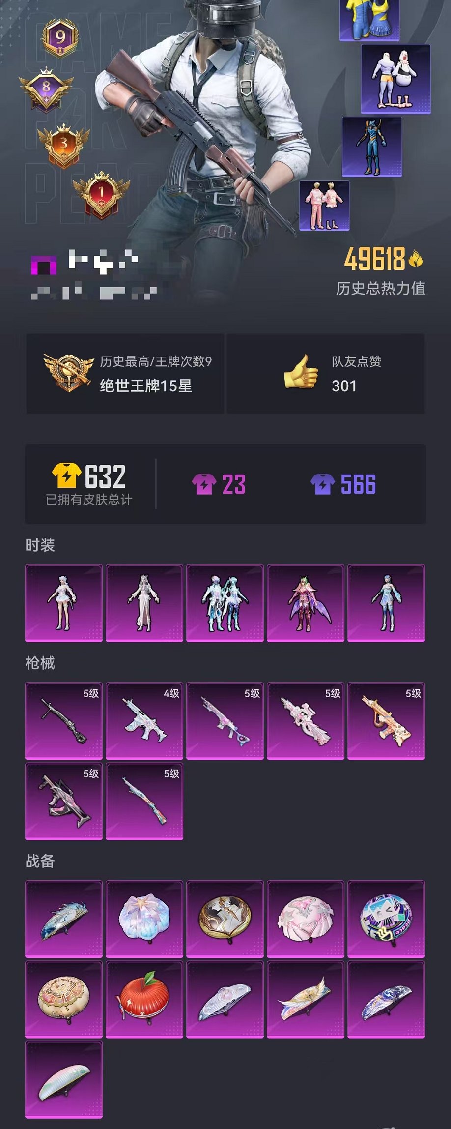 0载具-149套装-162呛皮-【9印记蓝螳螂迅捷狂鲨5粉装7特效呛可秒换绑】 安卓q区-49618热力值-9印记-149套装-161呛皮 【1稀有】 mark.06【5粉装】 幻彩电音 时空协奏·和音 角色-冷漠罗丽 角色-仙女座 瞬 角色-荧海星豚【7特效呛】 mk14-甜梦熊击5级 p90-冷漠罗丽5级 蜜獾-荧海星豚4级 groza-镜光银凌5级 kar98k-巳巳如意5级 dp-