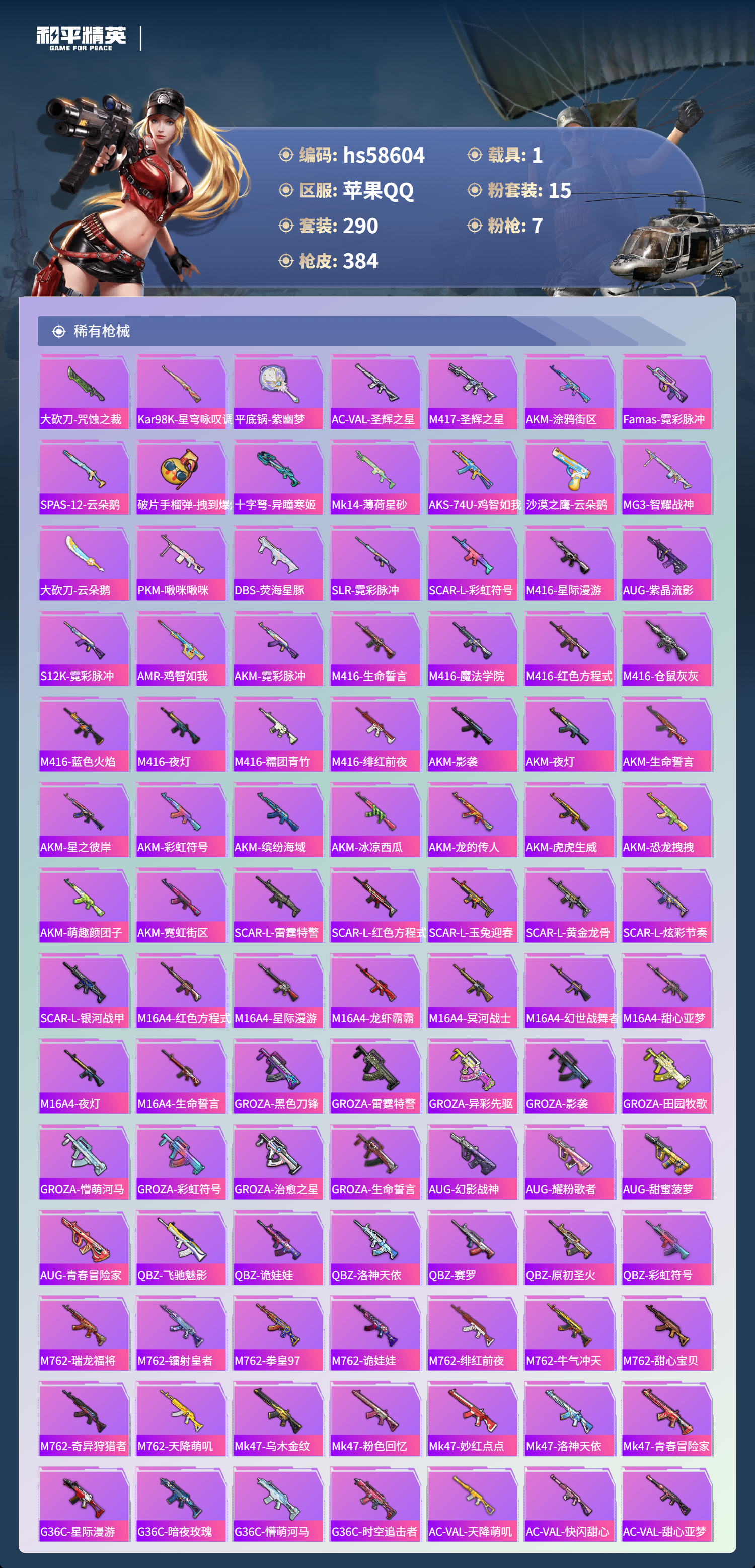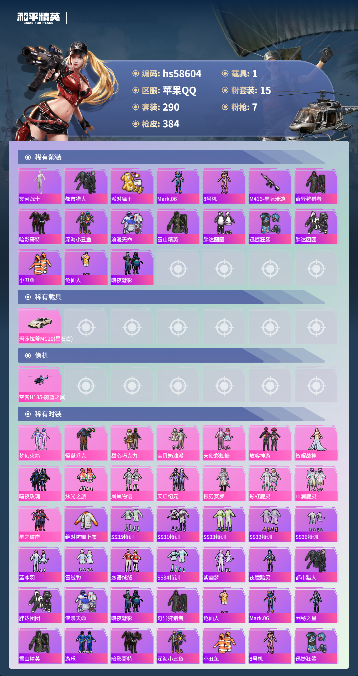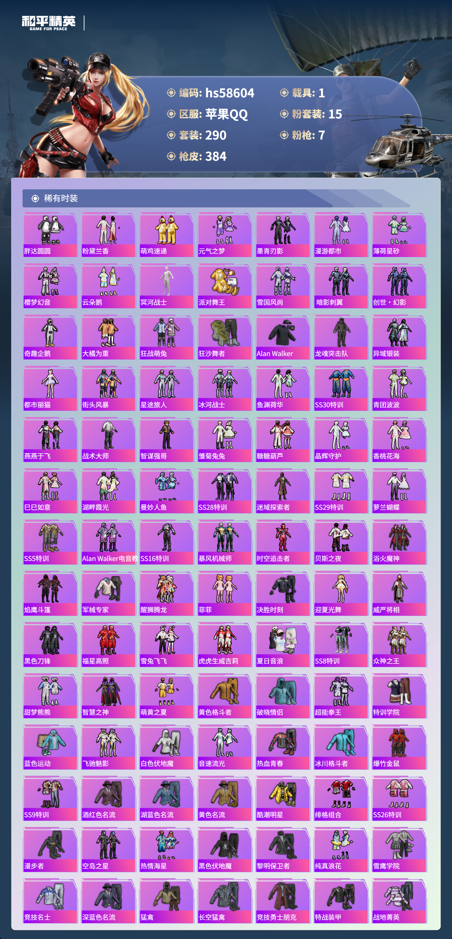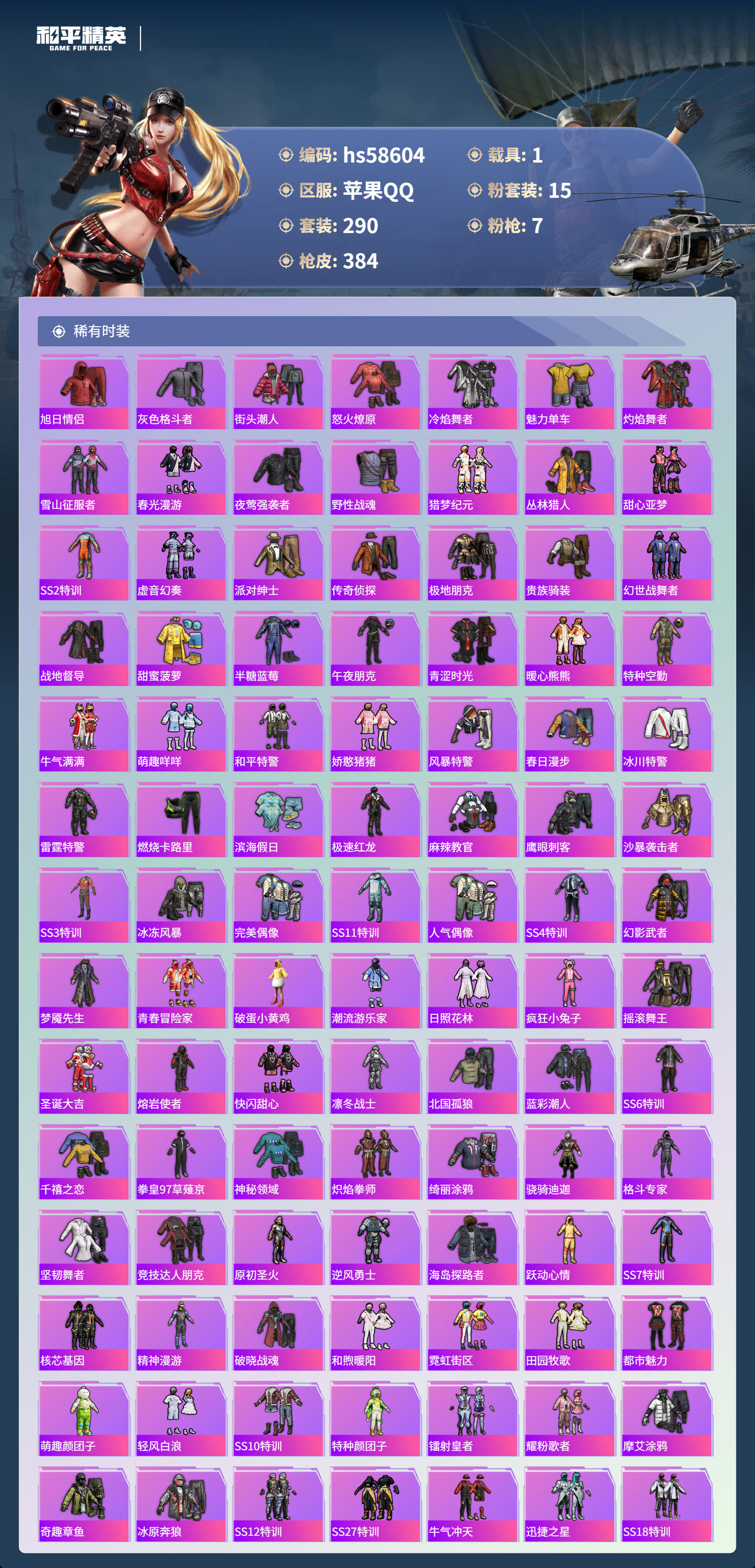 hs58604 苹果手q-25王牌印记-15粉装-7特效呛-1载具-热力值-290套装-384呛皮-3卓越印记-1传奇印记【15粉装】套装-怪诞乔克套装-山涧鹿灵套装-银刃赛罗套装-天使彩虹糖角色-智耀战神套装-岚岚物语套装-放客神游套装-暗夜玫瑰套装-宝贝奶油派套装-彩虹鹿灵套装-炫光之旅套装-天启纪元套装-甜心巧克力套装-梦幻火箭套装-星之彼岸【7特