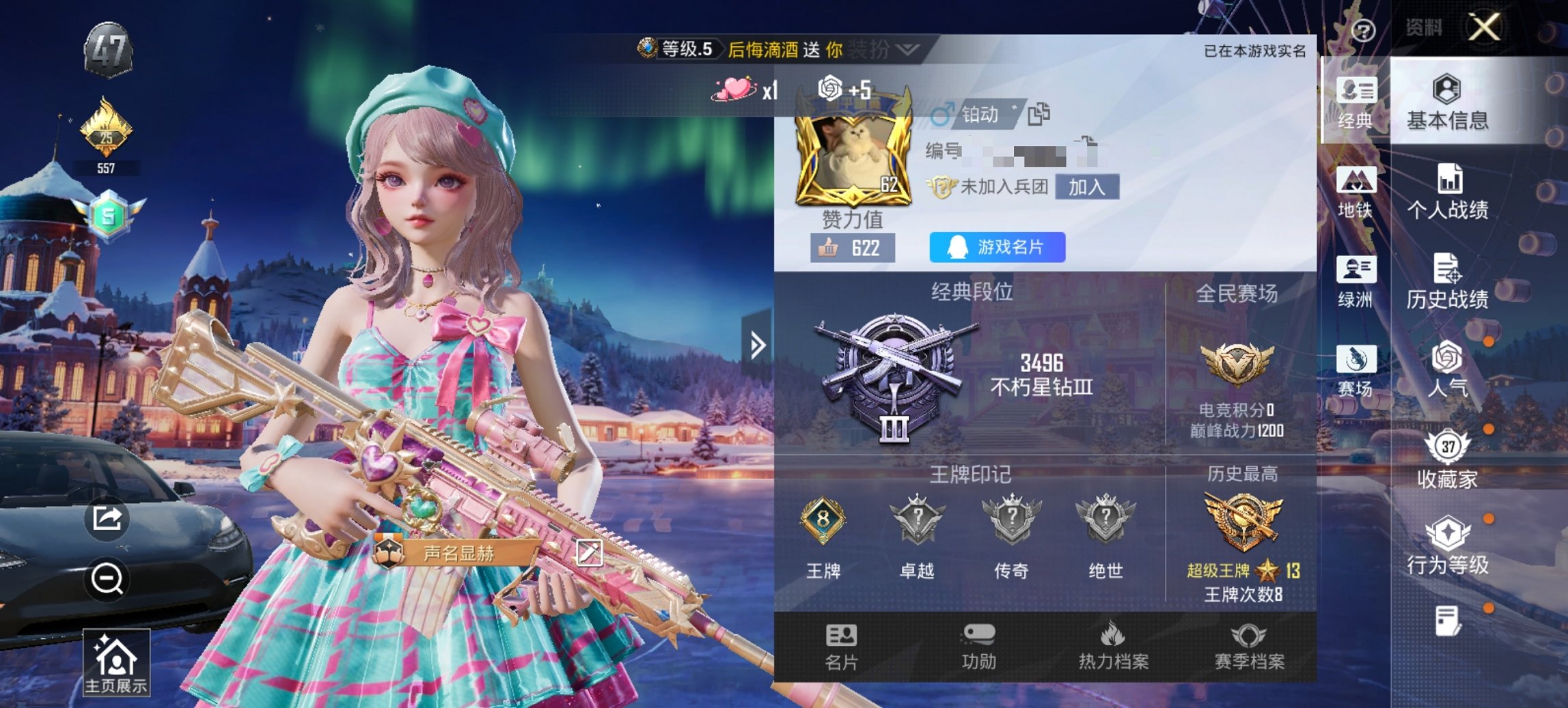 1载具-64套装-95呛皮-可二次实名【满级m4心之恋语4特效呛1载具1粉装 秒换绑不用等】 安卓q区-32649热力值-8印记-64套装-95呛皮 【1载具】 特斯拉3银色【1稀有】 奇异狩猎者【1粉装】 角色-荧海星豚【4特效呛】 m416-心之恋语7级 scar-l-锦绣绵绵5级 kar98k-巳巳如意4级 dp-28-豹影疾电5级【79热门】 软萌银虎 白色伏地魔 ss9特训 ss
