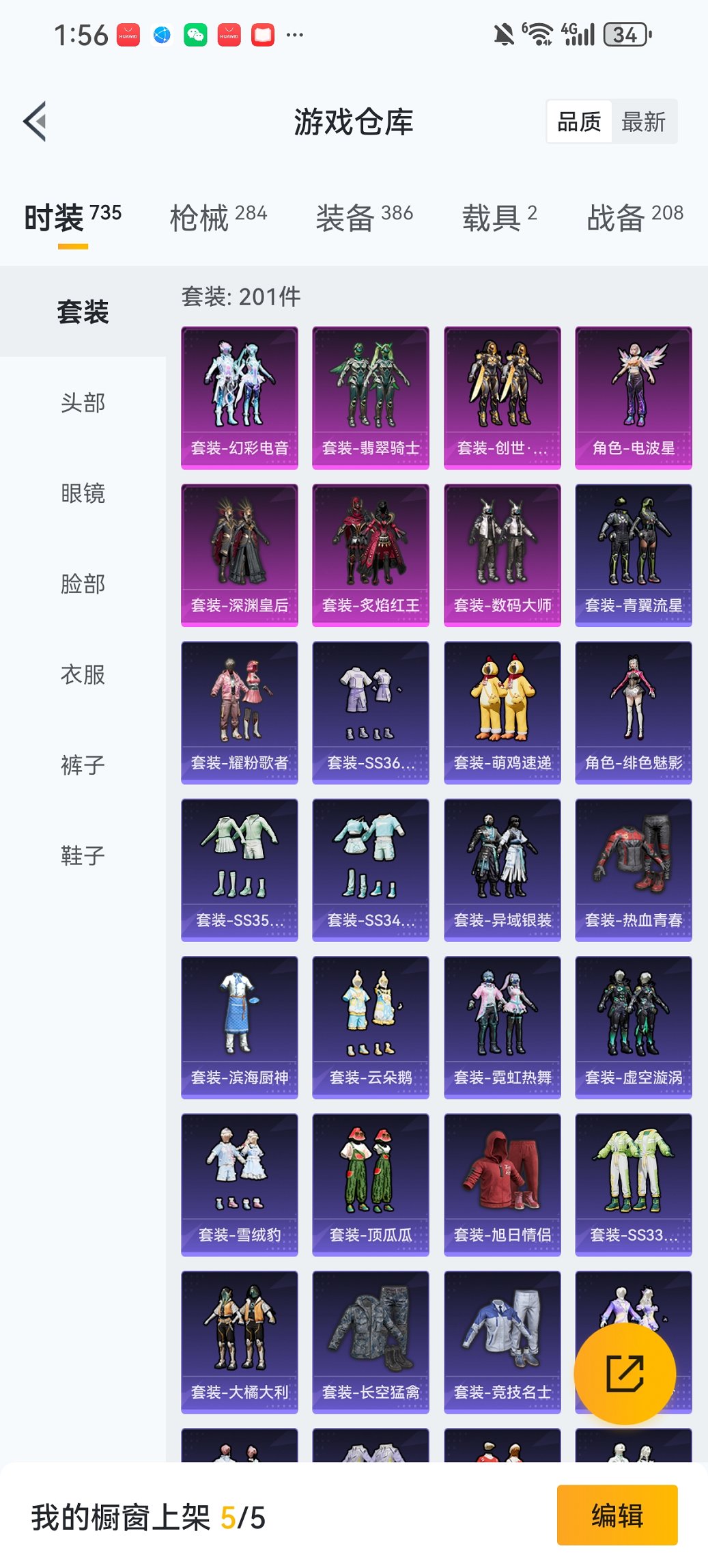 2载具-201套装-284呛皮-可二次实名【满级m4五爪金龙都市男神浪客战士猫包9特效呛7粉装2载具素材号 秒换绑不用等】 安卓q区-96117热力值-16印记-201套装-284呛皮 【2载具】 护世瑞兽 晶梦灵驹【7稀有】 都市猎人 百万伏待背包(猫包) 奇异狩猎者 akm-百万伏特 浪客战士 mark.06蓝螳螂【7粉装】 数码大师 炙焰红王 深渊皇后 翡翠骑士 创世·救赎 角色-电波星 幻彩电音【9特