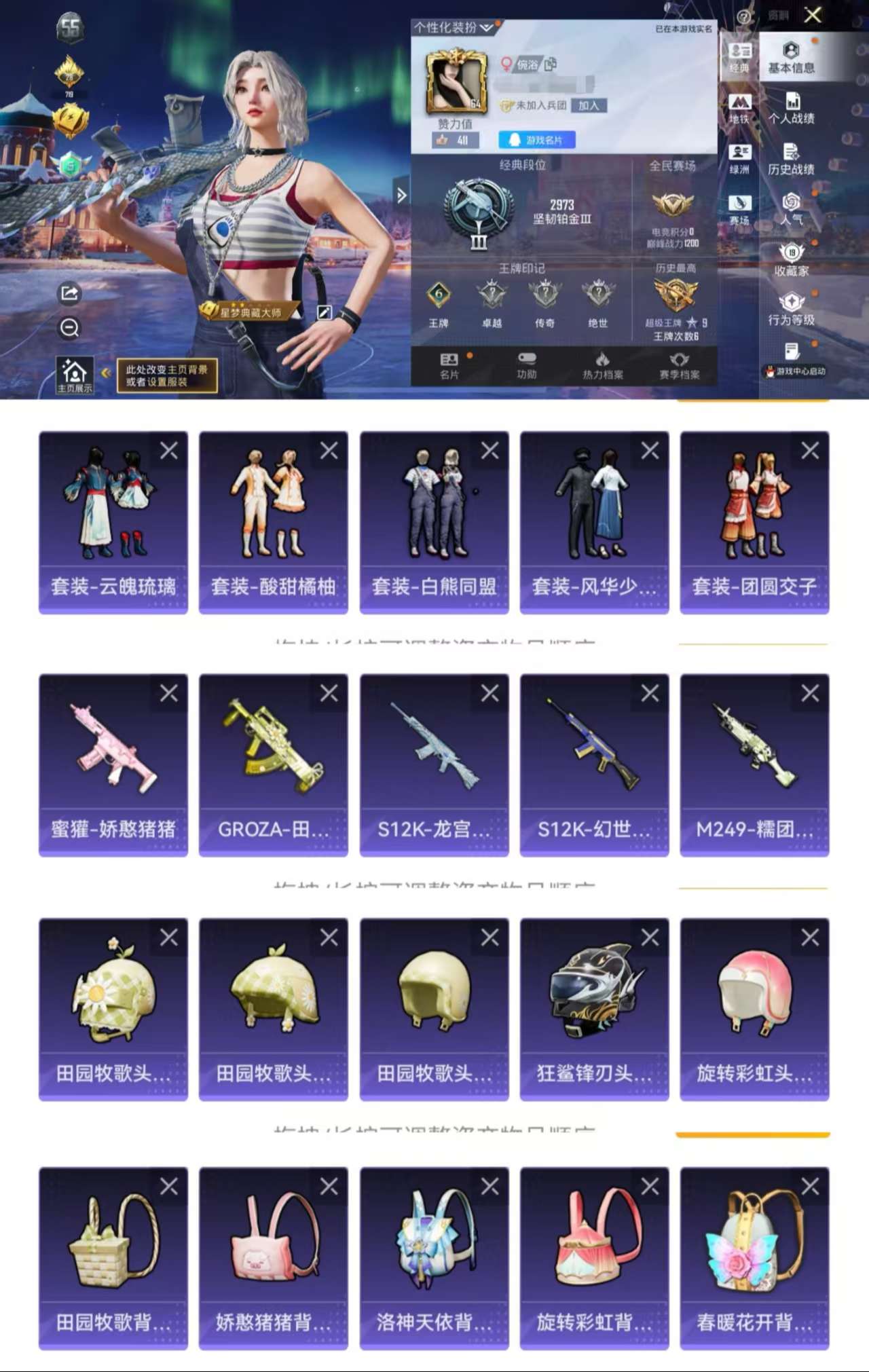 hm6456苹果q区-【可二次 2太阳 0违规 双字id 酸甜橘柚 白熊同盟 云魄琉璃 风华少年志】-13628热力值-6王牌印记-65套装-42呛皮-铂金iii-游戏64级 【稀有武器皮肤】: m416-红色方程式 m416-蓝色火焰 akm-彩虹符号 akm-灼热熔岩 scar-l-红色方程式 scar-l-玉兔迎春 m16a4-幻世战舞者 groza-田园牧歌 aug-耀粉歌者 mk47-乌