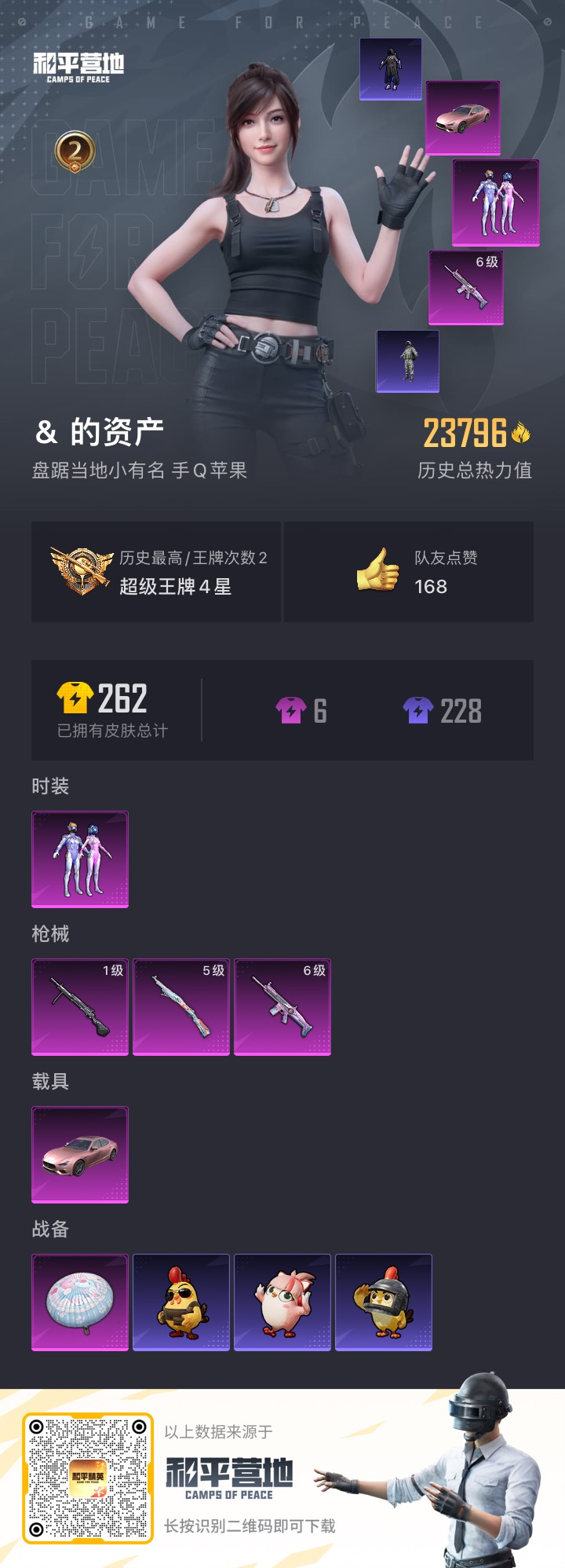 _2409029-1载具-54套装-79呛皮-2王牌印记-1粉装-3特效呛-1载具-23796热力值-54套装-79呛皮【1粉装】套装-梦幻火箭【3特效呛】dp-28-豹影疾电/1级kar98k-巳巳如意/5级scar-l-梦幻火箭/6级【1稀有紫装】龟仙人【1稀有载具】玛莎拉蒂ghibli粉【54稀有时装】梦幻火箭ss35特训ss31特训ss33特训ss32特训白辉玉蕊蓝冰羽ss34特训紫幽梦龟仙人萌鸡速递薄荷星砂暗夜行者龙魂突击队绒宝小鹅ss30特训战术大师智谋强哥巳巳如意金鼠迎春特训学院黄色名流绯格组合黑色伏地魔竞技名士猛禽长空猛禽特战装甲魅力单车幻世战舞者圣诞惊喜青涩时光牛气满满萌趣咩咩娇憨猪猪春日漫步冰川特警麻辣教官花羊椰椰破蛋小黄鸡森林游猎者田园牧歌轻风白浪耀粉歌者ss27特训牛气冲天岑岑玉浪ss20特训ss21特训玉兔迎春ss22特训ss23特训缤纷果语鹤鸣 【78稀有呛械】kar98k-巳巳如意/5级dp-28-豹影疾电/1级mk14-冰河战士uzi-冰河战士scar-l-梦幻火箭/6级win94-乌木金纹pkm-紫幽梦r45-幻彩电音mk14-紫幽梦sks-青瓷战姬蜜獾-乌木金纹s1897-紫幽梦p92-紫幽梦平底锅-紫幽梦aks-74u-乌木金纹famas-乌木金纹famas-霓彩脉冲破片手留单-拽到爆炸mg-36-薄荷星砂svd-霓彩脉冲slr-霓彩脉冲s686-雪月幻音m416-红色方程式akm-龙的传人scar-l-玉兔迎春scar-l-炫彩节奏groza-黑色刀锋groza-异彩先驱groza-田园牧歌aug-耀粉歌者aug-天降萌叽mk47-乌木金纹ac-val-天降萌叽ac-val-彩虹甜喵ac-val-乌木金纹蜜獾-娇憨猪猪kar98k-梦幻火箭m24-影袭awm-海螺星光莫辛纳甘-乌木金纹amr-乌木金纹m200-仲夏莫吉托vss-田园牧歌mini14-梦幻火箭mk14-乌木金纹slr-娇憨猪猪uzi-娇憨猪猪uzi-天降萌叽ump45-生命誓言vect-生命誓言vect-田园牧歌汤姆逊-耀粉歌者汤姆逊-天降萌叽mp5k-乌木金纹p90-乌木金纹p90-玩趣呆呆s1897-炫彩节奏s12k-幻世战舞者s12k-娇憨猪猪spas-12-田园牧歌dp-28-彩虹符号mg3-幻世战舞者mg3-暗夜行者mg3-乌木金纹mg3-瑞龙福将沙墨之鹦-旋转彩虹平底锅-光之冒险平底锅-田园牧歌平底锅-娇憨猪猪破片手留单-呆爆全场m200-乌木金纹s686-巳巳如意spas-12-乌木金纹akm-荧星灵猫vss-香桃花海mini14-香桃花海p90-巳巳如意破片手留单-巳巳如意 【13稀有背包】紫幽梦背包3级萌鸡速递背包3级巳巳如意背包3级翎光蝶翼背包3级第五大道背包3级仲夏莫吉托背包3级异域银装背包3级田园牧歌背包3级梦幻火箭背包3级智谋强哥背包3级香桃花海背包3级玉兔迎春背包3级冰河战士背包3级