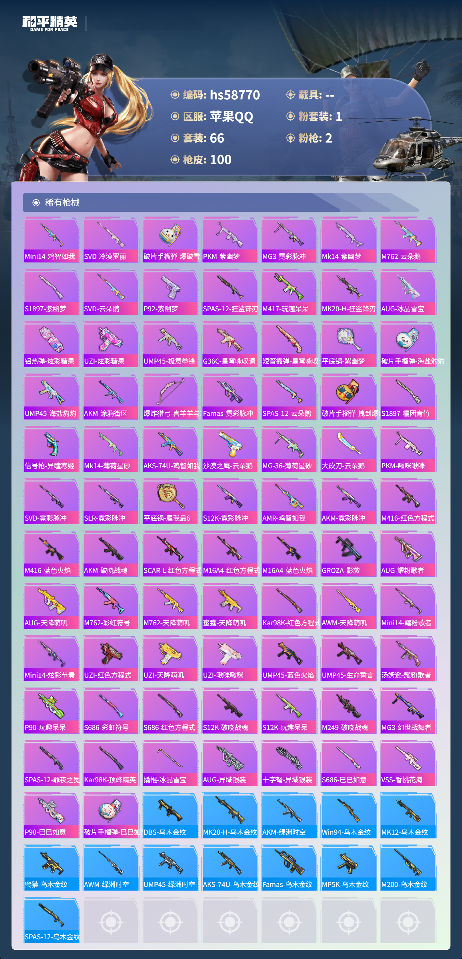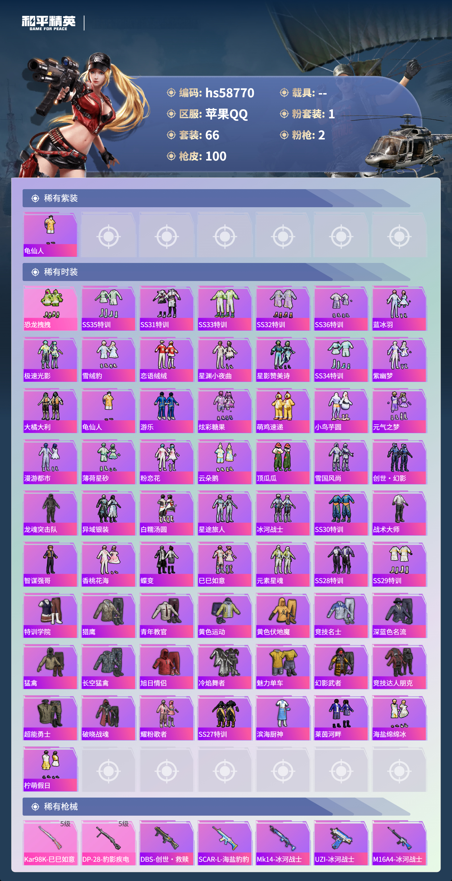 hs58770 苹果手q-5王牌印记-1粉装-2特效呛-23636热力值-66套装-100呛皮-2卓越印记【1粉装】套装-恐龙拽拽【2特效呛】dp-28-豹影疾电/5级kar98k-巳巳如意/5级【1稀有紫装】龟仙人【64稀有时装】ss35特训ss31特训ss33特训ss32特训ss36特训蓝冰羽极速光影雪绒豹恋语绒绒星渊小夜曲星影赞美诗ss34特训紫幽梦大橘大