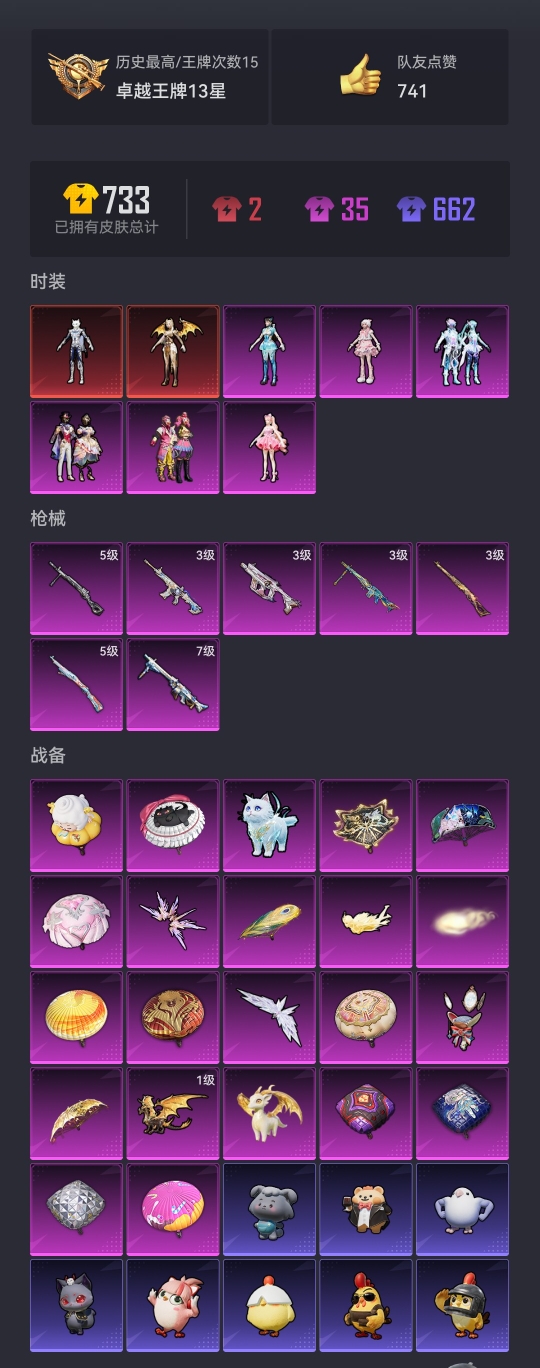 0载具-135套装-201呛皮-【2红装1个4级 6粉装7特效呛1载具素材号 秒换绑不用等】 安卓q区-69526热力值-15印记-135套装-201呛皮 【2红装】 灵猫魔法师-塞维尔2级 圣域龙灵-瑞拉4级【1稀有】 mark.06蓝螳螂【1载具】僚机-圣域龙宝【6粉装】 缤纷油彩(猪脸妹) 角色-樱桃泡泡 角色-异瞳寒姬 星穹咏叹调 幻彩电音 角色-羊梦糖心【7特效呛】 kar98k-圣域龙灵