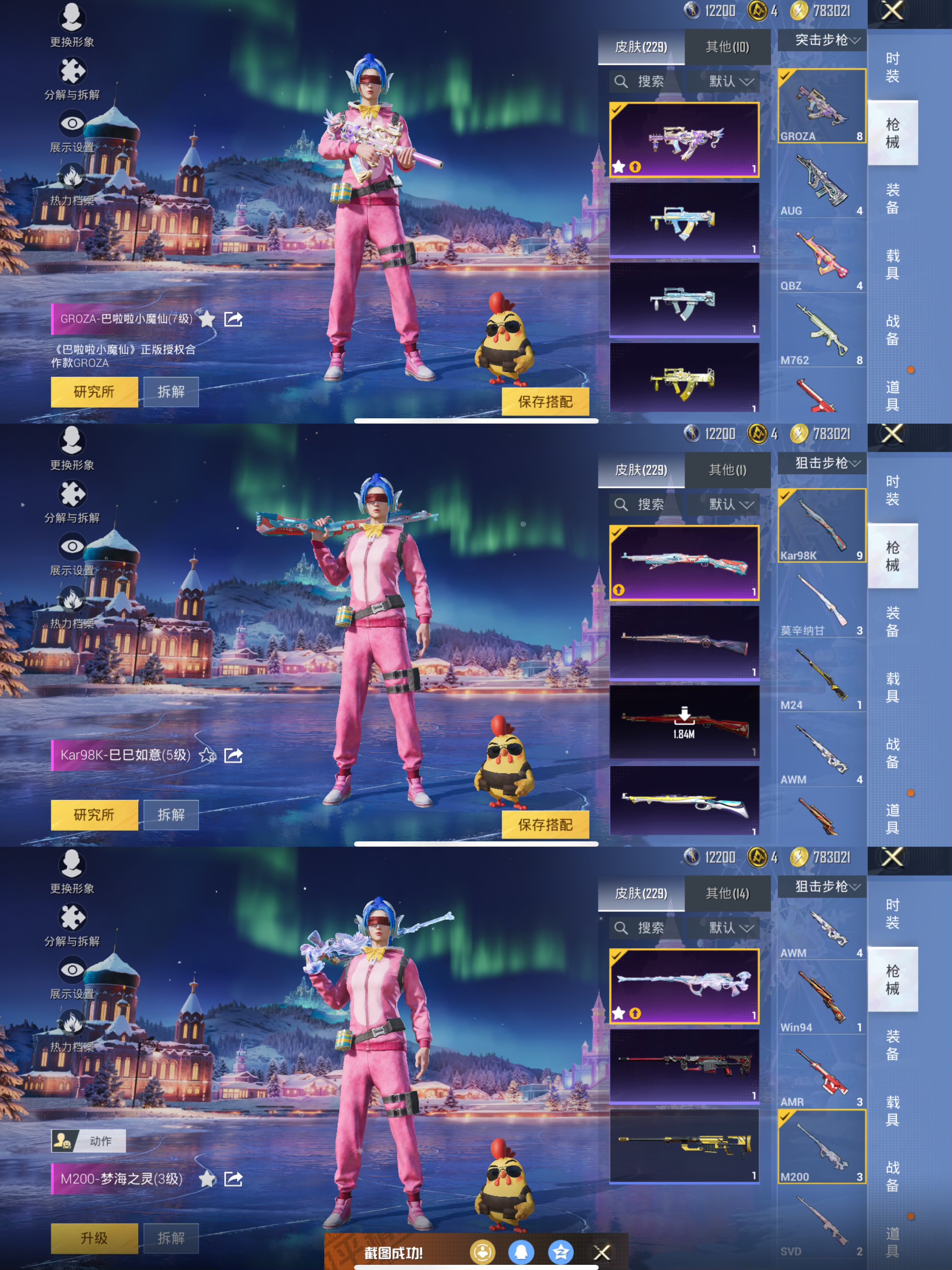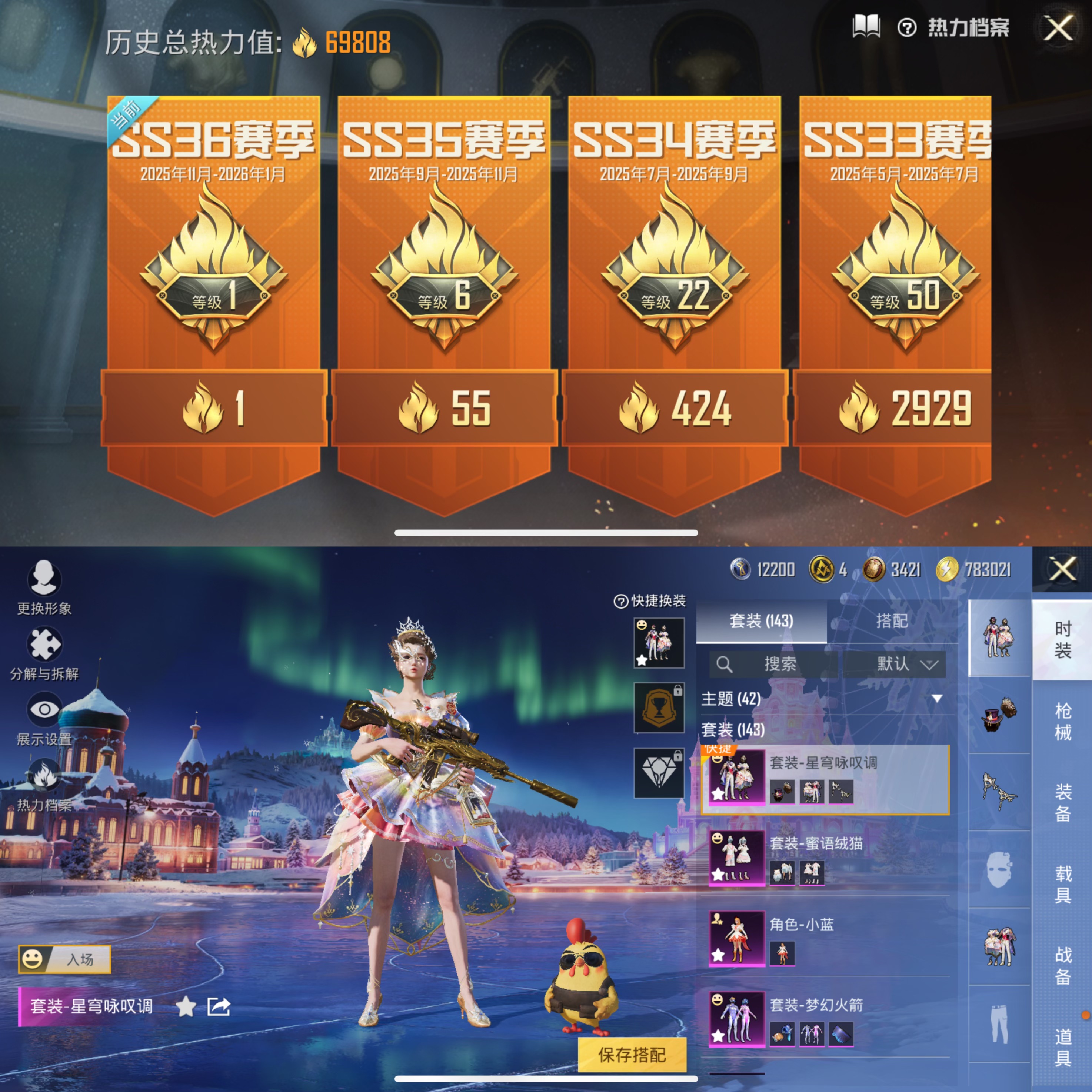 0载具-143套装-229呛皮-【身法号 梦幻火箭 红眼罩 五爪满级 猫包】苹果手q-6粉装-6特效呛-143套装-229呛皮-13王牌印记-坚韧铂金ⅴ-69808热力值【6粉装】数码大师梦幻火箭星穹咏叹调角色-小蓝鸾凤武仙蜜语绒猫【6特效呛】m200-梦海之灵[3级]mg3-突变脉冲[6级]m416-五爪金龙[7级]p90-电糖天使[3级]groza-巴啦啦小魔仙[7级]kar98k-巳