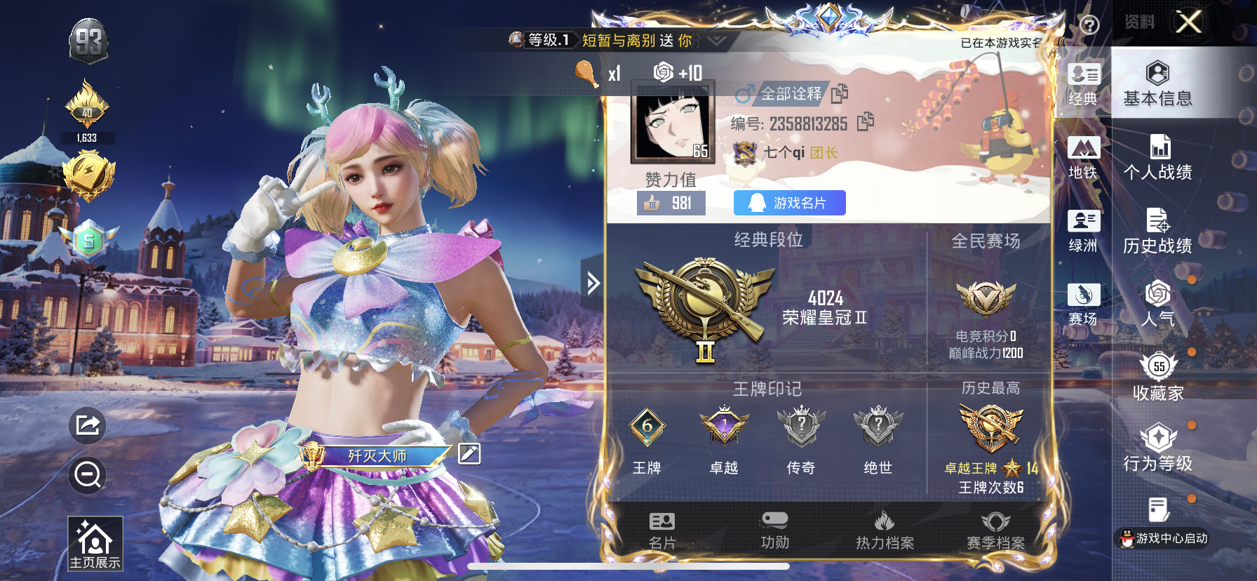 【和平精英】【txhp6529】4粉装,2特效呛,0载具,历史最高段位:卓越王牌14星 王牌印记6次 热力值:52644,148套装,171呛械,183装备,94战备;套装:套装-彩虹鹿灵,套装-山涧鹿灵,套装-暗星紫秘,角色-异瞳寒姬,套装-特训学院,套装-猎鹰,套装-青年教官,套装-橘黑制服,套装-红色运动,套装-黄色运动,套装-蓝色运动,套装-黄色伏地魔,套装-白色伏地魔,套装-黑色伏地魔,套装-骑行爱好者,套装-竞技名士,套装-深蓝色名流,套装-湖蓝色名流,套装-黄色名流,套装-猛禽,套装-长空猛禽,套装-竞技勇士朋克,套装-海岛探路者,套装-冷焰舞者,套装-灼焰舞者,套装-特战装甲,套装-战地督导,套装-灰色格斗者,套装-甜蜜告白,套装-燃烧卡路里,套装-完美偶像,套装-人气偶像,套装-幻影武者,套装-街头潮人,套装-蓝彩潮人,套装-千禧之恋,套装-神秘领域,套装-怒火燎原,套装-魅力单车,套装-坚韧舞者,套装-竞技达人朋克,套装-野性战心,套装-破晓战魂,套装-都市魅力,套装-风行保卫者,套装-热血青春,套装-幻世战舞者,套装-暗影哥特,套装-呆萌铁蟹,套装-深海小丑鱼,套装-甜蜜熊情侣,套装-缤纷果语,套装-元素星魂,套装-极速红龙,套装-格斗先锋,套装-海上生明月,套装-麻辣教官,套装-小丑鱼,套装-梦魇先生,套装-粉红小猪,套装-破蛋小黄鸡,套装-幻世猎手,套装-北国孤狼,套装-ss6特训,套装-跃动心情,套装-ss7特训,套装-鹤鸣,套装-霓虹街区,套装-大橘为重,套装-白熊同盟,套装-萌黄之夏,套装-探宝勇士,套装-牛气满满,套装-白糯汤圆,套装-怪笑疯兔,套装-青春冒险家,套装-潮流游乐家,套装-诡谋托雷基亚,套装-萌趣颜团子,套装-特种颜团子,套装-战术大师,套装-牛气冲天,套装-ss18特训,套装-耀粉歌者,套装-治愈之星,套装-科技之星,套装-梦起落英,套装-星河入梦,套装-ss14特训,套装-电音精灵,套装-吉莉礼服,套装-星梦畅游,套装-ss15特训,套装-ss16特训,套装-暴风机械师,套装-时空追击者,套装-星辰守护者,套装-ss17特训,套装-瑞龙福将,套装-团圆交子,套装-福星高照,套装-雪兔飞飞,套装-虎虎生威吉莉,套装-缤纷焰火,套装-异彩先驱,套装-霓虹极客,套装-空投萌叽,套装-ss19特训,套装-炫蓝之夏,套装-ss20特训,套装-猎梦纪元,套装-甜心亚梦,套装-虚音幻奏,套装-ss21特训,套装-萌趣咩咩,套装-娇憨猪猪,套装-玉兔迎春,套装-ss22特训,套装-ss23特训,套装-王牌教练,套装-ss24特训,套装-ss25特训,套装-ss26特训,套装-漫游都市,套装-云魄琉璃,套装-恋语绒绒,套装-老实芭蕉,套装-海盐绵绵冰,角色-夜瞳黯灵,套装-ss31特训,套装-紫幽梦,套装-粉恋花,套装-ss33特训,套装-ss32特训,套装-青翼流星,套装-蓝冰羽,套装-大橘大利,套装-星渊小夜曲,套装-星影赞美诗,套装-元气之梦,套装-ss34特训,套装-擎苍青焰,套装-朱霞炽焰,套装-凌霄紫焰,套装-薄荷星砂,套装-ss35特训,套装-ss36特训,套装-萌鸡速递;呛皮:akm-生命誓言,akm-破晓战魂,akm-涂鸦街区,akm-彩虹符号,akm-萌趣颜团子,akm-虎虎生威,akm-环太平洋,akm-霓彩脉冲,akm-绿洲时空,groza-治愈之星,groza-林间仙鹿,groza-彩虹符号,groza-蓝莓炮弹,groza-异彩先驱,mk47-林间仙鹿,mk47-青春冒险家,mk47-乌木金纹,scar-l-红色方程式,scar-l-黄金龙骨,scar-l-炫彩节奏,scar-l-玉兔迎春,famas-霓彩脉冲,famas-乌木金纹,q-诡娃娃,q-彩虹符号,q-电玩视界,蜜獾-娇憨猪猪,蜜獾-精灵梦叶罗丽,蜜獾-乌木金纹,ac-val-甜心亚梦,ac-val-乌木金纹,ac-val-天降萌叽,m416-蓝色火焰,m416-绯红前夜,m416-红色方程式,m416-神秘黑猫,m416-糯团青竹,g36c-时空追击者,g36c-星穹咏叹调,g36c-乌木金纹,m16a4-蓝色火焰,m16a4-红色方程式,m16a4-甜心亚梦,m16a4-幻世战舞者,aug-耀粉歌者,aug-青春冒险家,aug-异域银装,aug-紫晶流影,arx-凌霄紫焰,ace32-冰晶雪宝,m762-诡娃娃,m762-瑞龙福将,m762-彩虹符号,5级kar98k-巳巳如意,kar98k-红色方程式,kar98k-炫光贝贝,kar98k-欢乐麻酱,kar98k-洛神天依,kar98k-星穹咏叹调,kar98k-乌木金纹,awm-荒野猎神,awm-垂柳戏鸭,awm-天降萌叽,m200-罪夜之冕,m200-乌木金纹,win94-瑞龙福将,win94-乌木金纹,m24-治愈之星,m24-炫彩节奏,m24-乌木金纹,svd-霓彩脉冲,莫辛纳甘-乌木金纹,amr-乌木金纹,mk14-治愈之星,mk14-乌木金纹,mk14-紫幽梦,mk14-薄荷星砂,mini14-炫彩节奏,mini14-耀粉歌者,mini14-绮梦青鸾,mini14-林间仙鹿,mini14-异彩先驱,mk20-h-狂鲨锋刃,sks-炫彩节奏,sks-时空追击者,slr-娇憨猪猪,slr-霓彩脉冲,mk12-乌木金纹,vss-荒野猎神,qbu-青春冒险家,汤姆逊-耀粉歌者,汤姆逊-林间仙鹿,汤姆逊-异彩先驱,p90-飞驰魅影,p90-乌木金纹,ump45-蓝色火焰,ump45-生命誓言,ump45-荒野猎神,ump45-时空追击者,ump45-灵符少年,野牛-王牌四分卫,野牛-夜灯,野牛-青春冒险家,野牛-电玩视界,野牛-乌木金纹,uzi-红色方程式,uzi-炫彩节奏,uzi-娇憨猪猪,uzi-天降萌叽,uzi-啾咪啾咪,vect-生命誓言,vect-夜灯,vect-治愈之星,vect-暗夜玫瑰,vect-乌木金纹,mp5k-异彩先驱,js9-凌霄紫焰,aks-74u-乌木金纹,s12k-幻影战神,s12k-破晓战魂,s12k-瑞龙福将,s12k-娇憨猪猪,s12k-幻世战舞者,s12k-玩趣呆呆,s12k-霓彩脉冲,s1897-绮梦青鸾,s1897-炫彩节奏,s1897-紫幽梦,s1897-乌木金纹,spas-12-狂鲨锋刃,dbs-时空追击者,dbs-甜心亚梦,dbs-幻彩电音,s686-红色方程式,m249-破晓战魂,m249-拳皇97,m249-彩虹符号,m249-无面战甲,m249-乌木金纹,5级dp-28-豹影疾电,dp-28-彩虹符号,dp-28-甜心亚梦,mg3-瑞龙福将,mg3-幻世战舞者,mg3-乌木金纹,pkm-紫幽梦,mg-36-凌霄紫焰,mg-36-薄荷星砂,p92-紫幽梦,p92-凌霄紫焰,信号呛-异瞳寒姬,短管