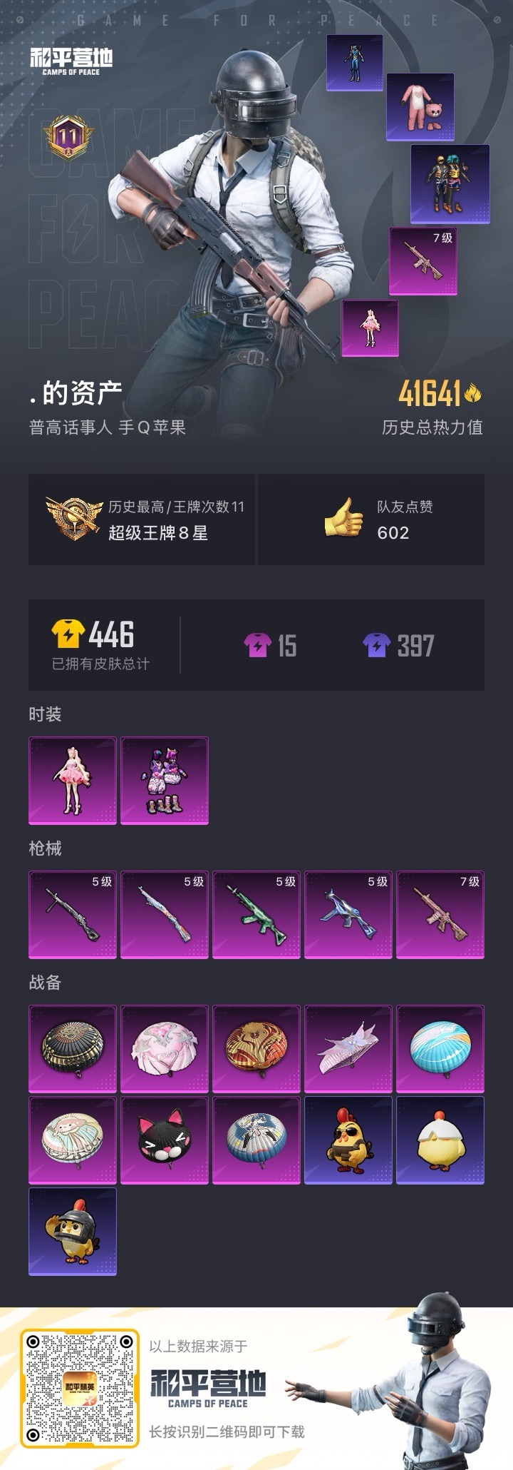 0载具-95套装-107呛皮-[]2粉装 5特效呛 11印记 可二次 【热门装扮】樱桃泡泡蓝莓炮弹呆萌铁蟹深海小丑鱼萌熊伴侣 【稀有呛皮】ump45量子极限m762-青锋波束kar98k-巳巳如意dp-28-豹影疾电m416心之恋语 【七级特效呛】七级m416-心之恋语 【五级特效呛】五级m76