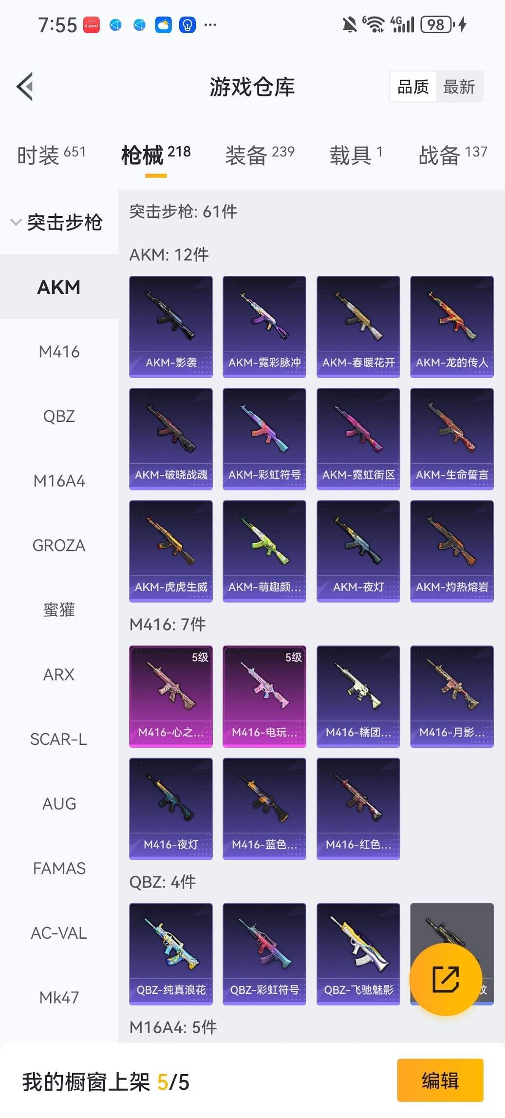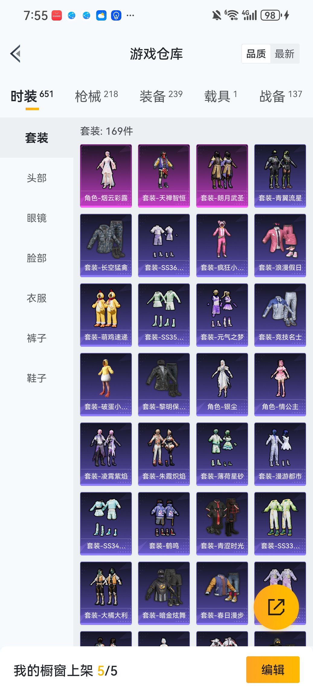 1载具-169套装-218呛皮-可二次实名【m4心之恋语7特效呛3粉装1载具 秒换绑不用等】 安卓q区-66615热力值-2印记-169套装-218呛皮 【1载具】 仰望u7先锋版阿盖尔紫【2稀有】 奇异狩猎者 mark.06蓝螳螂【3粉装】 天禅智恒 朗月武圣 角色-烟云彩露【7特效呛】 m416-心之恋语5级 mk14-精灵梦叶罗丽5级 p90-金丰海韵6级 kar98k-巳巳如意5级