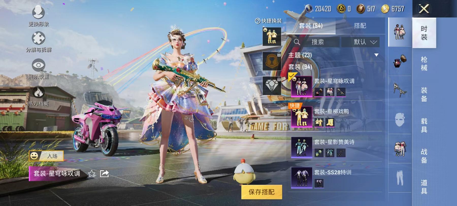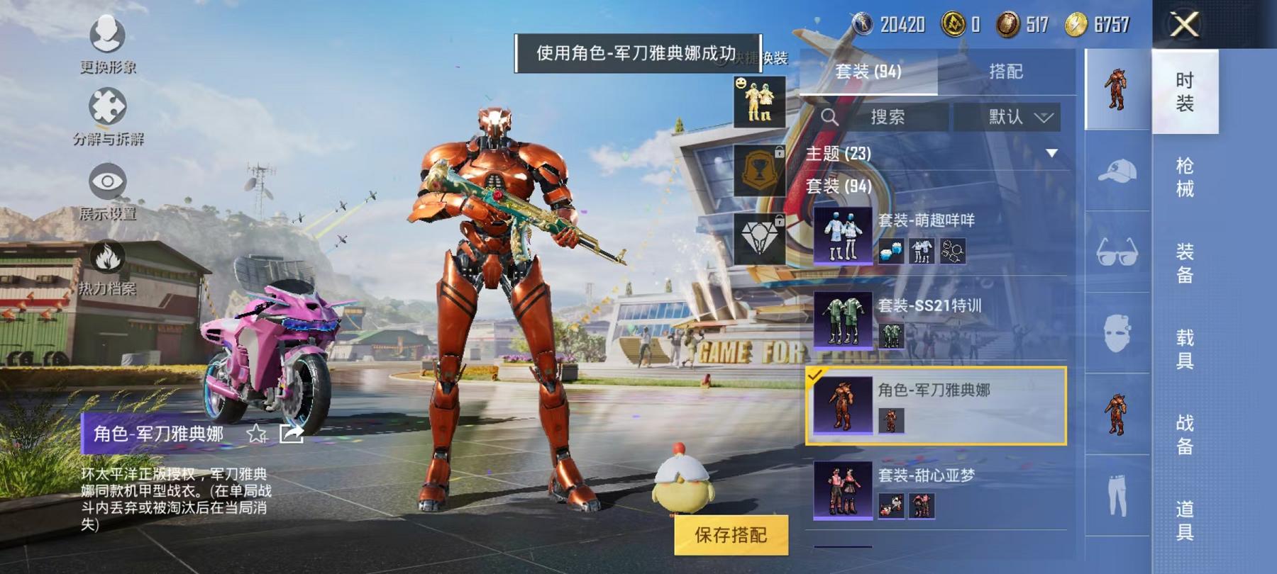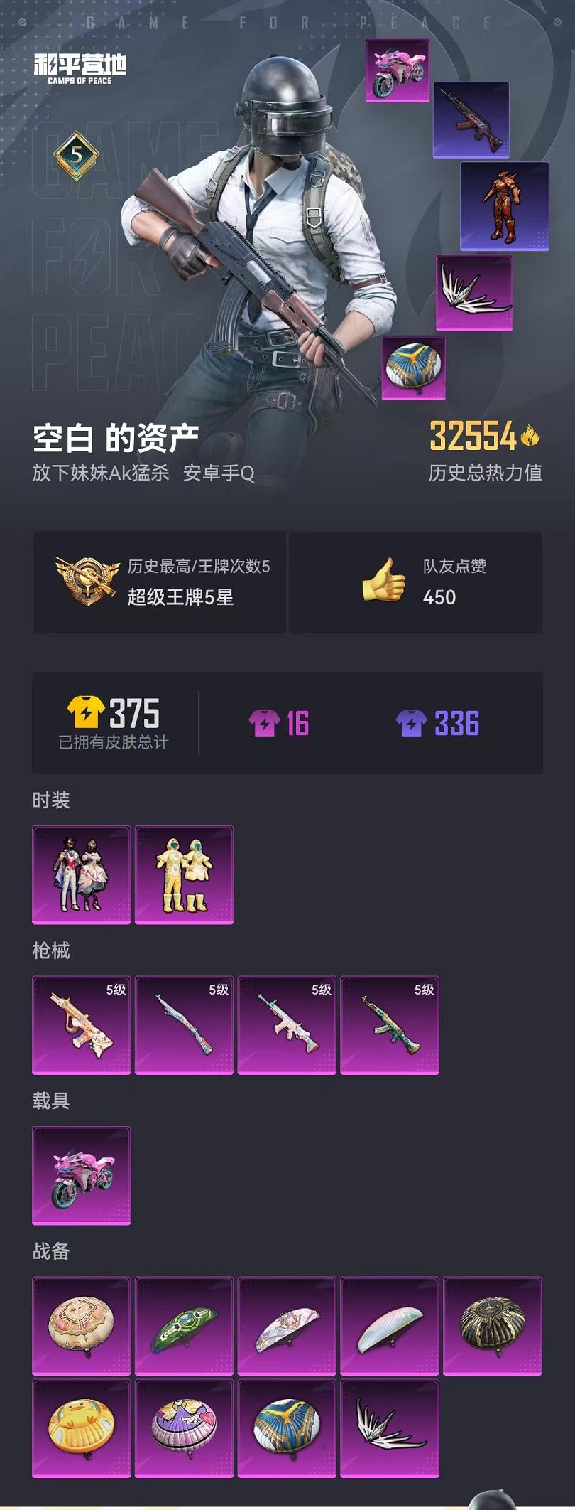 1载具-94套装-110呛皮-【2粉装4特效呛1载具军刀雅典娜】 安卓q区-32554热力值-5印记-91套装-110呛皮 【1载具】 双人摩托-梦幻火箭【2粉装】 星穹咏叹调 垂柳戏鸭【4特效呛】 scar-l-锦绣绵绵5级 akm-绿萝繁花5级 kar98k-巳巳如意5级 aug-暖羊咩咩5级【3热门】 军刀雅典娜 mg3-乌木金纹 m416-糯团青竹【1飞行器】 闪光银龙飞行器 营地i