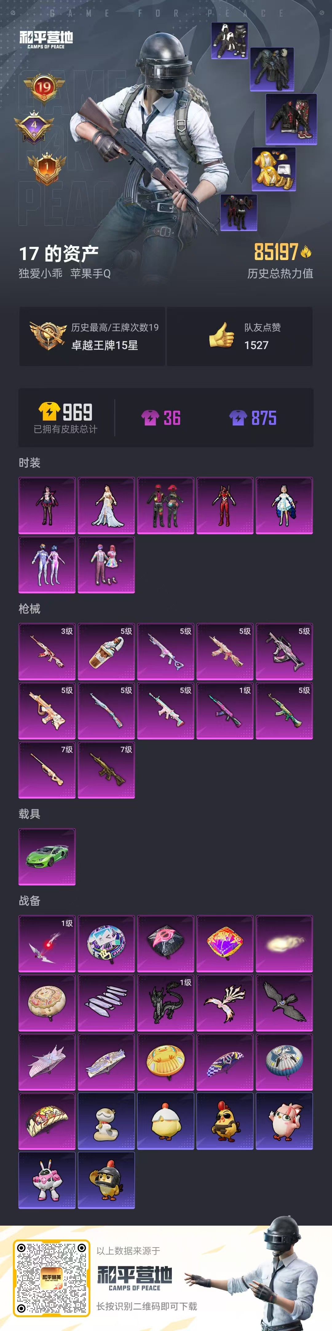 2411218-【地铁满天赋 胖达头盔 粉熊背包 红螳螂 放客 火箭 洛天依 赤蝎 金鞋子 都市 红眼罩 团团 战队服】 已实名不可二次4稀有1载具7粉装12特效呛17热门190套装249呛皮 历史卓越王牌15星 【4稀有】 赤蝎幽灵 都市猎人 浪漫天命 派对舞王 【1载具】 兰博svj绿色 【7粉装】 红螳螂 梦幻火箭 天使彩虹糖 洛天依 智耀战神 放客神游 罪夜之冕 【12