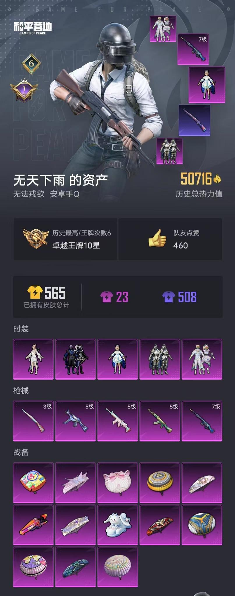 0载具-134套装-146呛皮-可二次【洛天依5粉装5特效呛满级暗夜玫瑰】 安卓q区-50716热力值-6印记-133套装-146呛皮 【5粉装】 彩虹鹿灵 角色-月影灵韵 角色-洛天依 暗夜玫瑰 银龙傲海【5特效呛】 scar-l-锦绣绵绵5级 akm-绿萝繁花5级 slr-暗夜玫瑰7级 kar98k-巳巳如意3级 ump45-量子极限5级【7热门】 雪山精英老6服 极速红龙 团圆交
