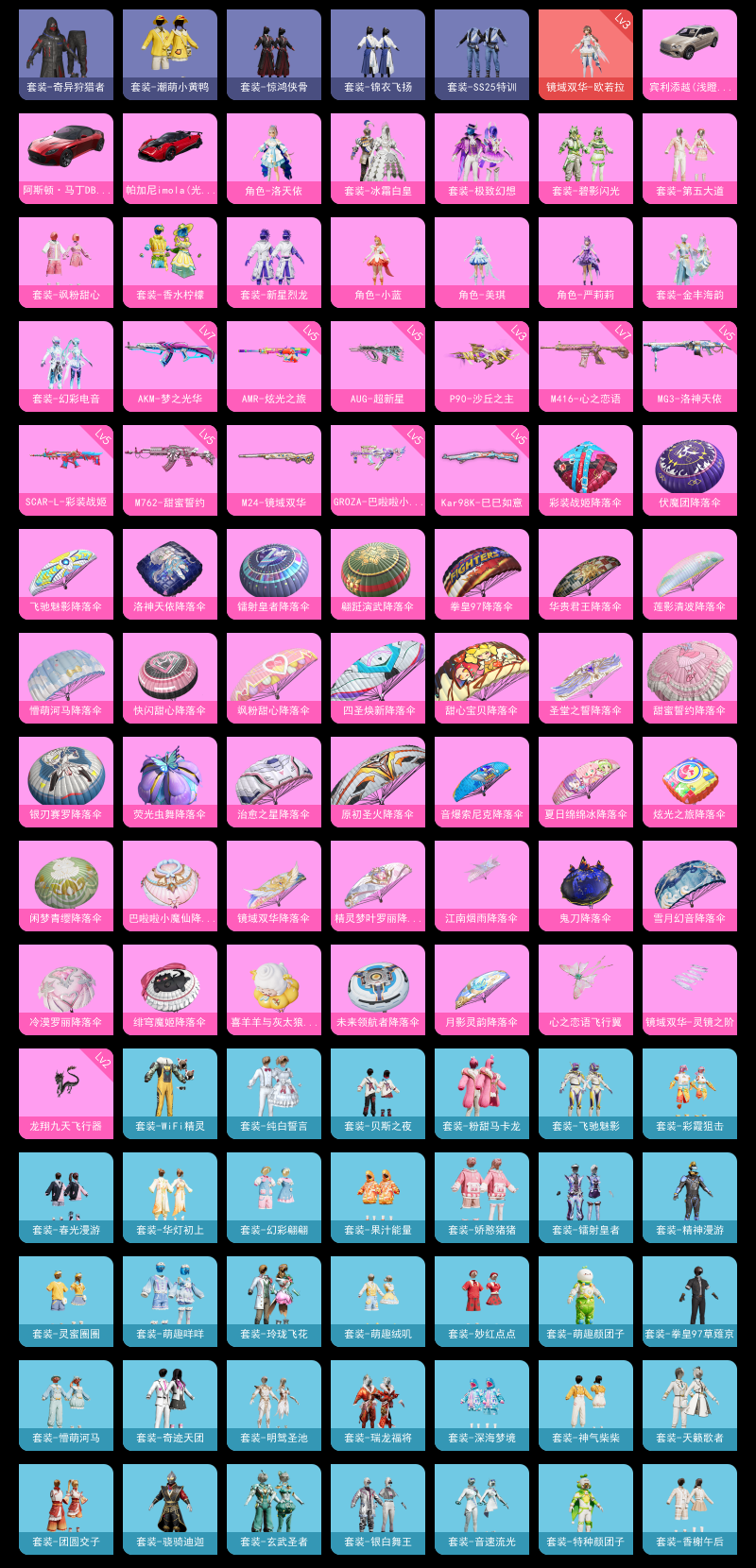 【和平精英】【lyhp20554】14粉装,13特效呛,3载具,历史最高段位:超级王牌12星 王牌印记13次 热力值:99688,181套装,270呛械,353装备,169战备;套装:镜域双华-欧若拉,套装-新星烈龙,套装-极致幻想,套装-冰霜白皇,套装-香水柠檬,角色-洛天依,套装-碧影闪光,套装-第五大道,套装-飒粉甜心,角色-小蓝,角色-美琪,角色-严莉莉,套装-金丰海韵,套装-幻彩电音,角色-罪夜之冕,套装-蓝色运动,套装-白色伏地魔,套装-骑行爱好者,套装-竞技名士,套装-长空猛禽,套装-竞技勇士朋克,套装-蓝色守护者,套装-冷焰舞者,套装-特战装甲,套装-灰色格斗者,套装-甜蜜告白,套装-迎春赐吉,套装-龙腾端午,套装-燃烧卡路里,套装-幻影武者,套装-怒火燎原,套装-魅力单车,套装-耀眼新星,套装-坚韧舞者,套装-竞技达人朋克,套装-野性战心,套装-荣耀,套装-风行保卫者,套装-热血青春,套装-沙漠兵团,套装-丛林猎人,套装-传奇侦探,套装-幻世战舞者,套装-甜蜜菠萝,套装-奇异狩猎者,套装-蓝调潮人,套装-甜蜜熊情侣,套装-缤纷果语,套装-冰川特警,套装-wifi精灵,套装-疯狂小兔子,套装-北国孤狼,套装-ss6特训,套装-拳皇97草薙京,套装-炽焰拳师,套装-格斗专家,套装-奇迹天团,套装-玲珑飞花,套装-跃动心情,套装-ss7特训,套装-黑色刀锋,套装-核芯基因,套装-精神漫游,套装-鹤鸣,套装-霓虹街区,套装-暗夜契约,套装-纯白誓言,套装-潮萌小黄鸭,套装-ss8特训,套装-萌黄之夏,套装-夏日音浪,套装-探宝勇士,套装-粉甜马卡龙,套装-牛气满满,套装-玄武圣者,套装-骁骑迪迦,套装-原初圣火,套装-逆风勇士,套装-萌趣颜团子,套装-特种颜团子,套装-战术大师,套装-ss12特训,套装-牛气冲天,套装-镭射皇者,套装-银白舞王,套装-治愈之星,套装-科技之星,套装-飞行日记,套装-ss13特训,套装-热情海星,套装-纯真浪花,套装-ss14特训,套装-天籁歌者,套装-电音精灵,套装-ss15特训,套装-ss16特训,套装-ss17特训,套装-瑞龙福将,套装-团圆交子,套装-炫光向阳,套装-福星高照,套装-ss19特训,套装-飞驰魅影,套装-音速流光,套装-炫蓝之夏,套装-ss20特训,套装-ss21特训,套装-萌趣咩咩,套装-娇憨猪猪,套装-玉兔迎春,套装-ss22特训,套装-绯格组合,套装-ss23特训,套装-莱茵河畔,套装-香榭午后,套装-神气柴柴,套装-懵萌河马,套装-灵蜜圈圈,套装-妙红点点,套装-幻彩翩翩,套装-王牌教练,套装-柠萌假日,套装-青玉碎影,套装-ss24特训,套装-华灯初上,套装-龟仙人,套装-涂山之恋,套装-ss25特训,套装-惊鸿侠骨,套装-锦衣飞扬,套装-云霞荷露,套装-香桃花海,套装-深海梦境,套装-果汁能量,套装-龙的传人,套装-冰河战士,套装-ss26特训,套装-快闪甜心,套装-春光漫游,套装-空岛之星,套装-明鸳圣池,套装-萌趣绒叽,套装-彩霞狙击,套装-贝斯之夜,套装-焰鹰斗篷,套装-幻羽潜行,套装-ss27特训,套装-ss28特训,角色-湖雨初晴,套装暗影刺翼,角色-粉雾星云,角色-白光莹,角色-情公主,套装-海盐绵绵冰,套装-蝶变,套装-ss29特训,套装-先驱飞行员,套装-星途旅人,套装-ss30特训,角色-光矢逐梦,角色-绛羽幽主,角色-馥郁金蕊,套装-ss31特训,套装-鱼渊荷华,套装-燕燕于飞,套装-ss33特训,套装-云朵鹅,套装-巳巳如意,套装-ss32特训,套装-彩虹兔,套装-青翼流星,套装-雪绒豹,角色-时希公主,套装-星影赞美诗,套装-ss34特训,套装-擎苍青焰,套装-朱霞炽焰,套装-游乐,套装-凌霄紫焰,套装-ss35特训,套装-ss36特训;呛皮:famas-墨龙九天,famas-镜域双华,famas-乌木金纹,5级scar-l-彩装战姬,scar-l-红色方程式,scar-l-甜蜜誓约,scar-l-炫彩节奏,scar-l-海盐豹豹,ac-val-乌木金纹,ac-val-彩虹甜喵,ac-val-天降萌叽,ac-val-闲梦青缨,ac-val-快闪甜心,ac-val-彩装战姬,ac-val-霁蓝缠春,蜜獾-娇憨猪猪,蜜獾-天降萌叽,蜜獾-精灵梦叶罗丽,蜜獾-绯穹魔姬,蜜獾-乌木金纹,5级m762-甜蜜誓约,m762-拳皇97,m762-牛气冲天,m762-镭射皇者,m762-瑞龙福将,m762-第五大道,m762-云朵鹅,m16a4-蓝色火焰,m16a4-幻世战舞者,m16a4-莲影清波,5级aug-超新星,aug-耀粉歌者,aug-天降萌叽,aug-闲梦青缨,aug-异域银装,aug-冰晶雪宝,7级akm-梦之光华,akm-生命誓言,akm-奇异狩猎者,akm-天启纪元,akm-霓虹街区,akm-夜灯,akm-彩虹符号,akm-萌趣颜团子,akm-虎虎生威,akm-龙的传人,akm-江南烟雨,mk47-百万伏特,mk47-洛神天依,mk47-乌木金纹,mk47-妙红点点,mk47-炫光之旅,7级m416-心之恋语,m416-蓝色火焰,m416-红色方程式,m416-潮汐统领,m416-糯团青竹,m416-乌木金纹,5级groza-巴啦啦小魔仙,groza-生命誓言,groza-黑色刀锋,groza-马卡龙,groza-治愈之星,groza-懵萌河马,groza-2b战斗服款,groza-乌木金纹,q-神秘黑猫,q-原初圣火,q-彩虹符号,q-洛神天依,q-飞驰魅影,q-纯真浪花,ace32-冰晶雪宝,arx-凌霄紫焰,g36c-懵萌河马,g36c-镜域双华,g36c-乌木金纹,5级kar98k-巳巳如意,kar98k-红色方程式,kar98k-彩虹符号,kar98k-洛神天依,kar98k-飞驰魅影,kar98k-星穹咏叹调,kar98k-乌木金纹,awm-焰鹰斗篷,awm-纯真浪花,awm-乌木金纹,5级amr-炫光之旅,amr-妙红点点,amr-镜光幻境,amr-墨龙九天,amr-鸡智如我,amr-乌木金纹,莫辛纳甘-乌木金纹,莫辛纳甘-懵萌河马,1级m24-镜域双华,m24-治愈之星,m24-乌木金纹,svd-云朵鹅,m200-惊鸿侠骨,m200-乌木金纹,win94-瑞龙福将,win94-乌木金纹,mini14-原初圣火,mini14-炫彩节奏,mini14-涂山之恋,mk20-h-快闪甜心,mk20-h-星途旅人,mk20-h-狂鲨锋刃,mk20-h-乌木金纹,m417-惊鸿侠骨,m417-玩趣呆呆,sks-夜灯,sks-怪兽之王,sks-糯团青竹,qbu-飒粉甜心,mk14-治愈之星,mk14-乌木金纹,mk14-薄荷星砂,vss-黑色刀