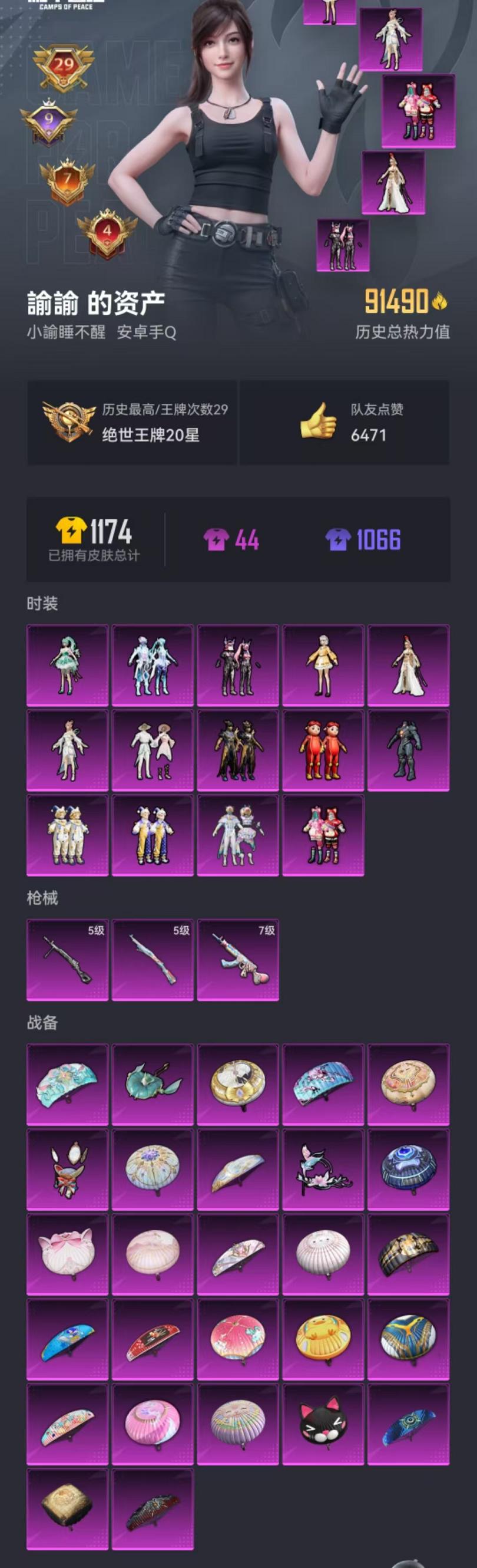 【ss1特训29印记14粉装3特效呛复仇流浪者】 安卓q区-91490热力值-29印记-246套装-287呛皮 【12粉装】 鎏金朋克 玩偶服-猪猪侠 彩虹鹿灵 御兔特攻 角色-月影灵韵 精灵娃娃 角色-萨利娅 俏皮狐尾 角色-呆萌星弥 酣梦娃娃 角色-复仇流浪者 幻彩电音【3特效呛】 dp-28-豹影疾电5级 kar98k-巳巳如意5级 m762-甜心娃娃7级【14热门】 雪山精英老6服 极速红龙 纯白誓言 醒狮腾龙 团圆交子 彩虹鹿灵 神秘黑猫 黑色刀锋 mg3-乌木金纹 mini14-炫彩节奏 kar98k-彩虹符号 m416-糯团青竹 akm-彩虹符号 m24-香水柠檬【1飞行器】 绯果甜心飞行器【3背包】 甜心宝贝背包 神秘黑猫背包 折纸暴龙背包 营地id:767718296
