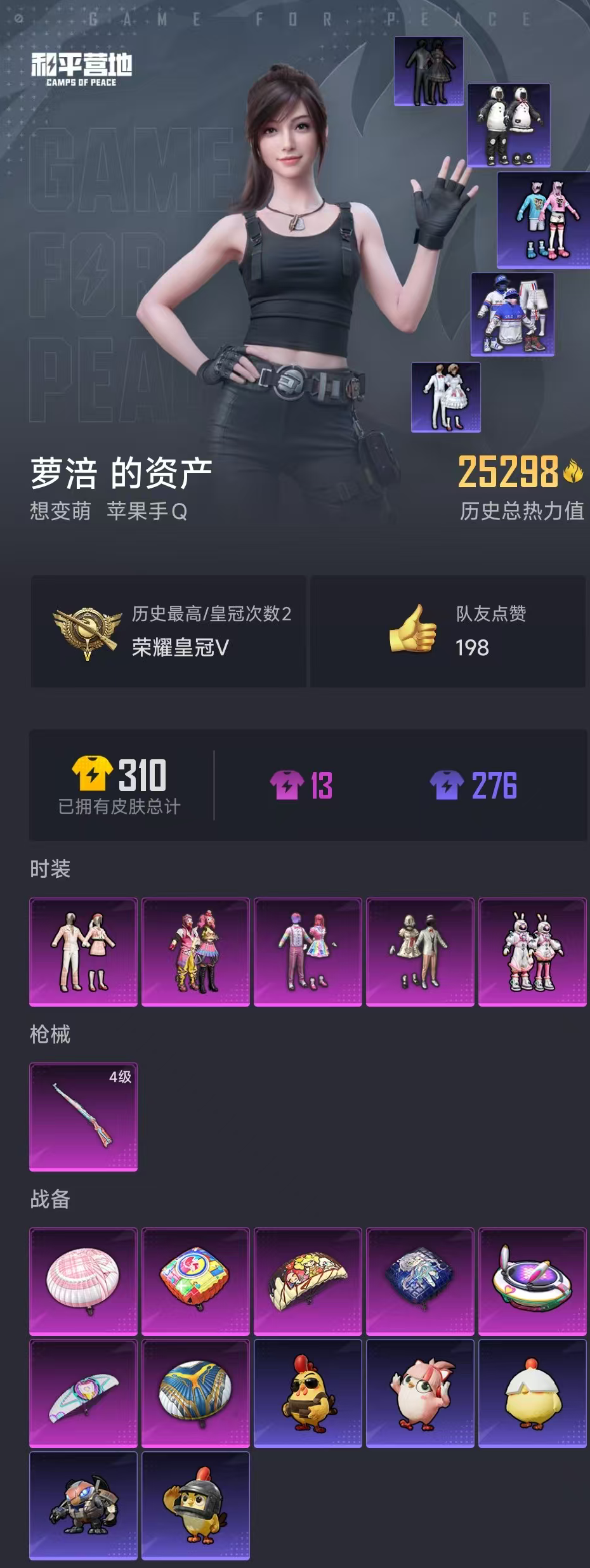 【和平精英】【lyhp20840】5粉装,1特效呛,0载具,历史最高段位:荣耀皇冠ⅴ 王牌印记-1次 热力值:25298,63套装,80呛械,93装备,59战备;套装:套装-宝贝奶油派,套装-天使彩虹糖,套装-缤纷油彩,套装-太空嘟嘟,套装-第五大道,套装-特训学院,套装-黄色运动,套装-白色伏地魔,套装-竞技名士,套装-长空猛禽,套装-浪漫天命,套装-甜蜜告白,套装-蓝彩潮人,套装-魅力单车,套装-耀眼新星,套装-破晓战魂,套装-荣耀,套装-幻世战舞者,套装-缤纷果语,套装-龙魂突击队,套装-胖达圆圆,套装-粉红小猪,套装-破蛋小黄鸡,套装-暗夜契约,套装-纯白誓言,套装-激萌罗小黑,套装-萌黄之夏,套装-牛气满满,套装-战术大师,套装-团圆交子,套装-ss21特训,套装-萌趣咩咩,套装-娇憨猪猪,套装-玉兔迎春,套装-ss22特训,套装-和煦暖阳,套装-田园牧歌,套装-轻风白浪,套装-绚烂繁星,套装-绯格组合,套装-ss23特训,套装-神气柴柴,套装-懵萌河马,套装-妙红点点,套装-幻彩翩翩,套装-王牌教练,套装-柠萌假日,套装-ss24特训,套装-涂山之恋,套装-ss25特训,套装-冰河战士,套装-ss28特训,套装暗影刺翼,套装-蝶变,套装-ss29特训,套装-ss30特训,套装-ss31特训,套装-巳巳如意,套装-青翼流星,套装-琴音绮想,套装-画境星梦,套装-ss36特训,套装-雪国风尚;呛皮:m762-甜心宝贝,m762-呛炮玫瑰,m762-第五大道,m762-天降萌叽,m762-萌物绒绒,q-彩虹符号,groza-田园牧歌,groza-懵萌河马,groza-海盐豹豹,蜜獾-娇憨猪猪,蜜獾-垂柳戏鸭,scar-l-甜蜜誓约,scar-l-玉兔迎春,ac-val-乌木金纹,g36c-懵萌河马,akm-缤纷海域,akm-龙的传人,ace32-画境星梦,ace32-冰晶雪宝,mk47-乌木金纹,mk47-妙红点点,m16a4-幻世战舞者,m16a4-冰河战士,m416-糯团青竹,莫辛纳甘-乌木金纹,莫辛纳甘-懵萌河马,amr-妙红点点,m200-乌木金纹,4级kar98k-巳巳如意,mini14-炫彩节奏,mini14-旋转彩虹,mini14-涂山之恋,m1加兰德-画境星梦,slr-娇憨猪猪,slr-彩虹符号,slr-金丰海韵,vss-田园牧歌,vss-彩虹符号,sks-炫彩节奏,mk20-h-乌木金纹,mk14-乌木金纹,mk14-冰河战士,mk12-乌木金纹,p90-巳巳如意,p90-乌木金纹,汤姆逊-暗夜鎏金,uzi-娇憨猪猪,uzi-墨染幽兰,uzi-冰河战士,mp5k-画境星梦,mp5k-乌木金纹,ump45-生命誓言,ump45-炫光之旅,ump45-极意拳锋,vect-田园牧歌,dbs-乌木金纹,spas-12-太空嘟嘟,spas-12-田园牧歌,s1897-炫彩节奏,s1897-暗夜鎏金,aa12-g-画境星梦,s12k-娇憨猪猪,s12k-幻世战舞者,s686-橘柚倾心,m249-糯团青竹,m249-妙红点点,mg3-幻世战舞者,mg3-乌木金纹,mg3-妙红点点,pkm-懵萌河马,mg-36-薄荷星砂,平底锅-娇憨猪猪,平底锅-田园牧歌,平底锅-妙红点点,平底锅-懵萌河马,平底锅-画境星梦,撬棍-甜心宝贝,撬棍-幻世战舞者,撬棍-冰晶雪宝,破片手留单-太空嘟嘟;降落伞:太空嘟嘟飞行器; 详情看图精品小女号5粉装1特效呛 第五大道 猪妹 宝贝奶油 胖达圆圆 浪漫天命 罗小黑