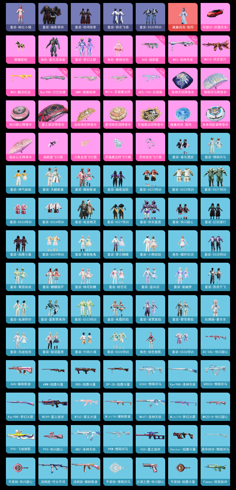 【和平精英】【lyhp20839】3粉装,10特效呛,2载具,历史最高段位:超级王牌10星 王牌印记9次 热力值:56028,81套装,176呛械,196装备,85战备;套装:魔童闹海-敖丙,套装-梦幻火箭,角色-复仇流浪者,角色-樱桃泡泡,套装-竞技名士,套装-长空猛禽,套装-灼焰舞者,套装-都市漫游者,套装-沙漠兵团,套装-幻世战舞者,套装-暗影哥特,套装-滨海厨神,套装-麻辣教官,套装-粉红小猪,套装-牛气满满,套装-战术大师,套装-耀粉歌者,套装-天籁歌者,套装-电音精灵,套装-快乐星愿,套装-ss21特训,套装-ss22特训,套装-光之冒险,套装-ss23特训,套装-神气柴柴,套装-懵萌河马,套装-王牌教练,套装-柠萌假日,套装-ss24特训,套装-龟仙人,套装-涂山之恋,套装-ss25特训,套装-惊鸿侠骨,套装-锦衣飞扬,套装-ss26特训,套装-快闪甜心,套装-春光漫游,套装-空岛之星,套装-焰鹰斗篷,套装-幽夜迷踪,套装-幻羽潜行,套装-ss27特训,套装-恋语绒绒,套装-ss28特训,角色-蝶吟花词,套装-小熊娃娃,套装-ss29特训,套装-雏菊兔兔,套装-萝兰蝴蝶,角色-绯色魅影,套装-星途旅人,角色-临安公主,套装-ss30特训,套装-青团波波,套装-棉花软糖,套装-糖糖葫芦,套装-ss31特训,套装-鱼渊荷华,套装-燕燕于飞,套装-智谋强哥,套装-紫幽梦,套装-粉恋花,套装-ss33特训,套装-巳巳如意,套装-ss32特训,套装-蓝冰羽,套装-大橘大利,套装-星影赞美诗,玩偶服-喜羊羊,套装-元气之梦,套装-ss34特训,套装-擎苍青焰,套装-朱霞炽焰,套装-凌霄紫焰,套装-ss35特训,套装-午间小调,套装-秘语星愿,套装-风迹短诗,套装-ss36特训,套装-雪国风尚,套装-萌鸡速递;呛皮:groza-懵萌河马,groza-海盐豹豹,scar-l-红色方程式,scar-l-炫彩节奏,scar-l-星途旅人,蜜獾-天降萌叽,蜜獾-糖糖葫芦,蜜獾-风迹短诗,蜜獾-乌木金纹,ac-val-乌木金纹,ac-val-天降萌叽,ac-val-快闪甜心,ace32-蓝晶绮麟,7级aug-超新星,aug-耀粉歌者,aug-天降萌叽,aug-异域银装,aug-金蛇镇世,1级m416-风花雪月,9级m416-灵猫魔法师,m416-蓝色火焰,m416-红色方程式,m416-糯团青竹,m16a4-蓝色火焰,m16a4-红色方程式,m16a4-幻世战舞者,m16a4-冰河战士,g36c-懵萌河马,g36c-星穹咏叹调,akm-破晓战魂,akm-彩虹符号,akm-龙的传人,akm-霓彩脉冲,mk47-洛神天依,mk47-乌木金纹,mk47-风迹短诗,m762-彩虹符号,m762-第五大道,m762-天降萌叽,m762-雏菊兔兔,famas-突变脉冲,famas-霓彩脉冲,q-彩虹符号,q-洛神天依,arx-凌霄紫焰,awm-焰鹰斗篷,莫辛纳甘-乌木金纹,莫辛纳甘-懵萌河马,莫辛纳甘-风迹短诗,2级amr-智耀战神,amr-喜羊羊与灰太狼,amr-乌木金纹,m200-惊鸿侠骨,m200-乌木金纹,5级kar98k-巳巳如意,kar98k-红色方程式,kar98k-梦幻火箭,kar98k-洛神天依,kar98k-星穹咏叹调,win94-乌木金纹,mk12-金蛇镇世,mk12-风迹短诗,mk12-乌木金纹,mk20-h-快闪甜心,mk20-h-星途旅人,mk20-h-糖糖葫芦,mk20-h-狂鲨锋刃,mk20-h-乌木金纹,sks-炫彩节奏,sks-糯团青竹,mini14-梦幻火箭,mini14-炫彩节奏,mini14-耀粉歌者,mini14-雏菊兔兔,mk14-乌木金纹,mk14-紫幽梦,mk14-薄荷星砂,vss-星之彼岸,vss-香桃花海,slr-彩虹符号,slr-金丰海韵,slr-霓彩脉冲,m417-惊鸿侠骨,野牛-雏菊兔兔,野牛-燕燕于飞,p90-飞驰魅影,p90-快闪甜心,p90-巳巳如意,p90-乌木金纹,ump45-夜灯,ump45-蓝色火焰,ump45-涂山之恋,ump45-海盐豹豹,ump45-糖糖葫芦,mp5k-未来领航者,mp5k-乌木金纹,uzi-红色方程式,uzi-炫彩节奏,uzi-天降萌叽,uzi-啾咪啾咪,uzi-炫彩糖果,js9-蓝晶绮麟,js9-凌霄紫焰,vect-生命誓言,vect-焰鹰斗篷,vect-燕燕于飞,汤姆逊-耀粉歌者,汤姆逊-环太平洋,汤姆逊-天降萌叽,汤姆逊-灵猫魔法师,3级aks-74u-无垠阁,aks-74u-乌木金纹,dbs-彩虹符号,dbs-焰鹰斗篷,dbs-风迹短诗,dbs-乌木金纹,s686-红色方程式,s686-巳巳如意,spas-12-燕燕于飞,spas-12-乌木金纹,s12k-破晓战魂,s12k-幻世战舞者,s12k-玩趣呆呆,s12k-霓彩脉冲,s1897-炫彩节奏,s1897-紫幽梦,m249-破晓战魂,m249-星之彼岸,m249-彩虹符号,m249-糯团青竹,m249-冰晶雪宝,pkm-懵萌河马,pkm-紫幽梦,7级mg3-洛神天依,1级mg3-酷泡奶龙,mg3-幻世战舞者,mg3-乌木金纹,mg3-惊鸿侠骨,mg3-霓彩脉冲,5级dp-28-豹影疾电,dp-28-焰鹰斗篷,5级mg-36-沧焰双生,mg-36-凌霄紫焰,p92-紫幽梦,p92-凌霄紫焰,信号呛-异瞳寒姬,蝎式手呛-燕燕于飞,短管霰弹-星穹咏叹调,p18c-糖糖葫芦,r1895-雏菊兔兔,沙墨之鹦-快闪甜心,平底锅-飞行日记,平底锅-光之冒险,平底锅-懵萌河马,平底锅-惊鸿侠骨,平底锅-快闪甜心,平底锅-空岛之星,平底锅-焰鹰斗篷,平底锅-雏菊兔兔,平底锅-糖糖葫芦,平底锅-许七安,平底锅-紫幽梦,平底锅-凌霄紫焰,撬棍-灵猫魔法师,破片手留单-呆爆全场,破片手留单-星途旅人,破片手留单-海盐豹豹,破片手留单-拽到爆炸,破片手留单-巳巳如意,十子怒-异瞳寒姬,十子怒-燕燕于飞,十子怒-异域银装,铝热弹-炫彩糖果,突击盾牌-初号机 觉醒ver.,爆炸猎弓-惊鸿侠骨,爆炸猎弓-喜羊羊与灰太狼;载具:黑曜夜骑,仰望u9赤霞丹朱;降落伞:万象金身飞行器,灵猫魔法师飞行器,灵珠游龙飞行器,超新星飞行器,光之冒险尾迹,空岛之星尾迹,破刃行动尾迹,鸡智如我飞行器; 详情看图1红3粉10特效呛2载 1级敖丙 梦幻火箭 樱桃泡泡 多呛型 满级m4灵猫魔法师 满级aug超新星 满级mg3黄金 3级aus无垠阁 黑耀马 红超跑