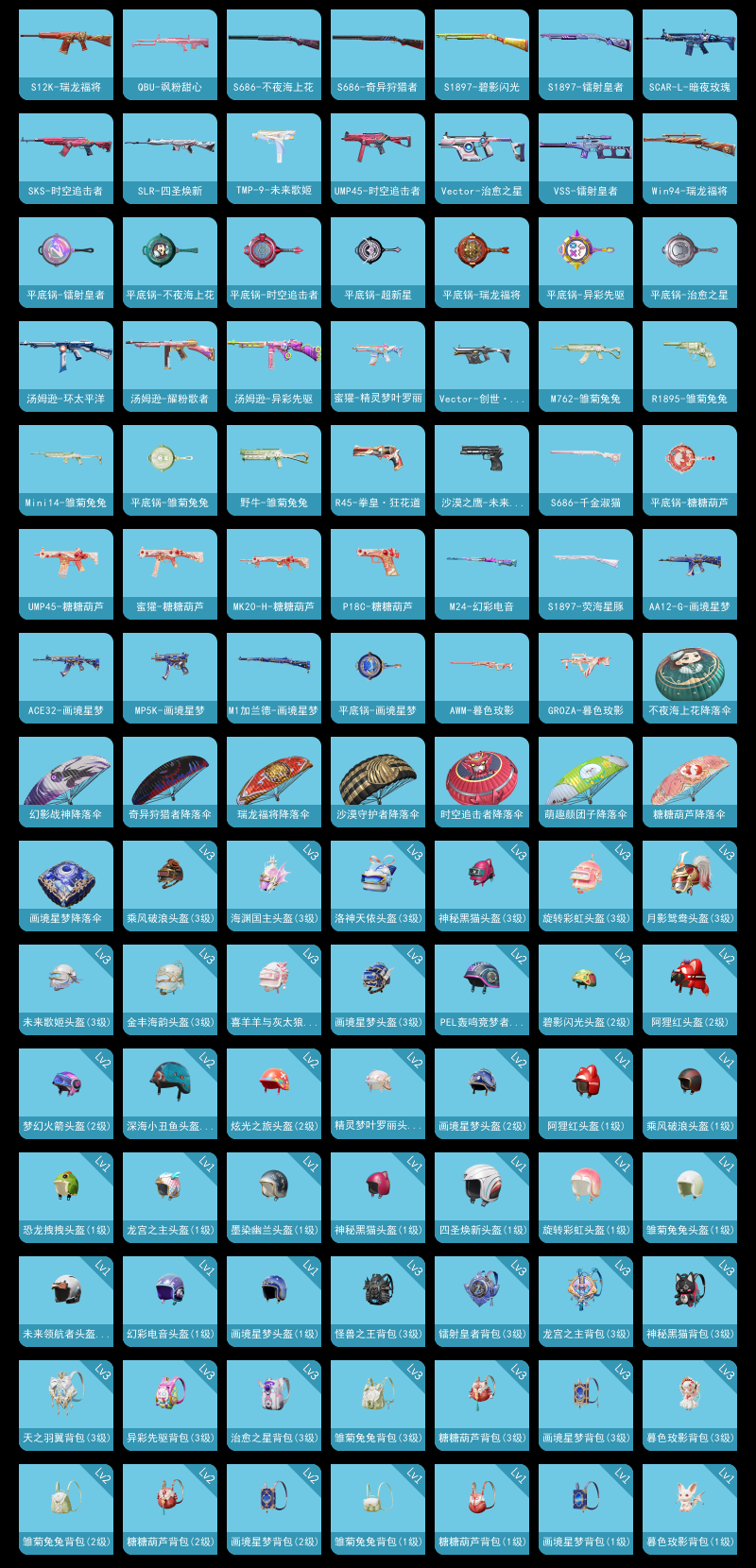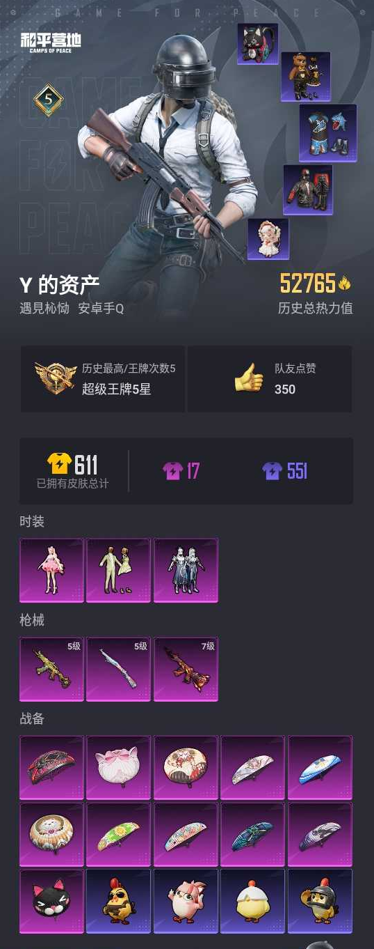 【和平精英】【lyhp20829】3粉装,3特效呛,0载具,历史最高段位:超级王牌5星 王牌印记5次 热力值:52765,148套装,160呛械,180装备,101战备;套装:套装-吟月归客,套装-绿野邂逅,角色-樱桃泡泡,套装-特训学院,套装-猎鹰,套装-青年教官,套装-橘黑制服,套装-红色运动,套装-黄色运动,套装-蓝色运动,套装-黄色伏地魔,套装-白色伏地魔,套装-黑色伏地魔,套装-骑行爱好者,套装-竞技名士,套装-深蓝色名流,套装-酒红色名流,套装-湖蓝色名流,套装-黄色名流,套装-长空猛禽,套装-蓝色守护者,套装-旭日情侣,套装-冷焰舞者,套装-灼焰舞者,套装-特战装甲,套装-战地菁英,套装-战地督导,套装-甜蜜告白,套装-5.56爱好者,套装-人气偶像,套装-幻影武者,套装-海滨突袭者,套装-街头潮人,套装-蓝彩潮人,套装-怒火燎原,套装-魅力单车,套装-绮丽涂鸦,套装-耀眼新星,套装-坚韧舞者,套装-竞技达人朋克,套装-夜莺强袭者,套装-野性战心,套装-破晓战魂,套装-都市魅力,套装-热血青春,套装-ss2特训,套装-极地朋克,套装-幻世战舞者,套装-清新柠檬,套装-金耀舞者,套装-蓝调潮人,套装-迅捷狂鲨,套装-甜蜜熊情侣,套装-缤纷果语,套装-冰川特警,套装-元素星魂,套装-极速红龙,套装-格斗先锋,套装-海上生明月,套装-麻辣教官,套装-破蛋小黄鸡,套装-疯狂小兔子,套装-ss5特训,套装-浪漫波比,套装-鹤鸣,套装-霓虹街区,套装-ss10特训,套装-白熊同盟,套装-萌黄之夏,套装-夏日音浪,套装-风华少年志,套装-白月香洋装,套装-探宝勇士,套装-牛气满满,套装-ss11特训,套装-娴静芝兰,套装-战术大师,套装-牛气冲天,套装-ss18特训,套装-镭射皇者,套装-银白舞王,套装-耀粉歌者,套装-治愈之星,套装-科技之星,套装-飞行日记,套装-ss13特训,套装-冰爽海盐,套装-ss14特训,套装-天籁歌者,套装-快乐星愿,套装-ss15特训,套装-ss16特训,套装-暴风机械师,套装-时空追击者,套装-ss17特训,套装-醒狮腾龙,套装-瑞龙福将,套装-团圆交子,套装-冰爽风暴,套装-极乐追光,套装-福星高照,套装-虎虎生威吉莉,套装-异彩先驱,套装-霓虹极客,套装-空投萌叽,套装-ss19特训,套装-ss21特训,套装-绯格组合,套装-ss23特训,套装-柠萌假日,套装-ss24特训,套装-龟仙人,套装-涂山之恋,套装-ss25特训,套装-惊鸿侠骨,套装-锦衣飞扬,套装-元气发射,套装-龙的传人,套装-冰河战士,套装-ss26特训,套装-空岛之星,套装-明鸳圣池,套装-云魄琉璃,套装-ss27特训,套装-ss28特训,角色-冰公主,套装-海盐绵绵冰,套装-ss29特训,套装-雏菊兔兔,套装-萝兰蝴蝶,角色-摩登魅猫,套装-星途旅人,套装-ss30特训,套装-青团波波,套装-糖糖葫芦,套装-ss31特训,套装-ss33特训,套装-ss32特训,套装-青翼流星,套装-ss34特训,套装-ss35特训,套装-琴音绮想,套装-画境星梦,套装-书海巡游,角色-月烬之祷,套装-阳光菠萝,套装-ss36特训,套装-雪国风尚;呛皮:g36c-不夜海上花,g36c-时空追击者,g36c-乌木金纹,scar-l-暗夜玫瑰,scar-l-海盐豹豹,7级m416-风花雪月,m416-蓝色火焰,m416-红色方程式,m416-神秘黑猫,m416-糯团青竹,m416-乌木金纹,groza-生命誓言,groza-治愈之星,groza-蓝莓炮弹,groza-异彩先驱,groza-暮色玫影,m762-奇异狩猎者,m762-牛气冲天,m762-镭射皇者,m762-瑞龙福将,m762-暖熊萌萌,m762-天降萌叽,m762-能量风暴,m762-雏菊兔兔,m762-乌木金纹,akm-灼热熔岩,akm-生命誓言,akm-奇异狩猎者,akm-霓虹街区,akm-夜灯,akm-虎虎生威,akm-龙的传人,mk47-洛神天依,mk47-乌木金纹,蜜獾-精灵梦叶罗丽,蜜獾-糖糖葫芦,famas-乌木金纹,aug-耀粉歌者,aug-天降萌叽,ac-val-乌木金纹,ac-val-天降萌叽,q-神秘黑猫,q-彩虹符号,m16a4-生命誓言,m16a4-红色方程式,m16a4-冰河战士,ace32-画境星梦,ace32-冰晶雪宝,awm-不夜海上花,awm-暮色玫影,awm-乌木金纹,win94-瑞龙福将,win94-乌木金纹,m24-奇异狩猎者,m24-治愈之星,m24-幻彩电音,m24-乌木金纹,5级kar98k-巳巳如意,kar98k-红色方程式,kar98k-彩虹符号,kar98k-乌木金纹,amr-乌木金纹,莫辛纳甘-乌木金纹,m200-惊鸿侠骨,mk20-h-星途旅人,mk20-h-糖糖葫芦,mk20-h-乌木金纹,vss-镭射皇者,vss-香桃花海,m1加兰德-画境星梦,sks-炫彩节奏,sks-时空追击者,sks-糯团青竹,qbu-不夜海上花,qbu-飒粉甜心,mini14-炫彩节奏,mini14-龙宫之主,mini14-异彩先驱,mini14-涂山之恋,mini14-香桃花海,mini14-雏菊兔兔,mini14-鸡智如我,mk14-治愈之星,mk12-乌木金纹,slr-四圣焕新,m417-惊鸿侠骨,vect-生命誓言,vect-彩虹符号,vect-治愈之星,vect-创世·救赎,p90-乌木金纹,汤姆逊-耀粉歌者,汤姆逊-异彩先驱,汤姆逊-环太平洋,汤姆逊-天降萌叽,uzi-炫彩节奏,uzi-天降萌叽,uzi-乌木金纹,mp5k-异彩先驱,mp5k-画境星梦,mp5k-乌木金纹,野牛-雏菊兔兔,野牛-乌木金纹,ump45-蓝色火焰,ump45-生命誓言,ump45-时空追击者,ump45-涂山之恋,ump45-糖糖葫芦,5级aks-74u-森灵之息,aks-74u-乌木金纹,dbs-时空追击者,dbs-第五大道,dbs-彩虹符号,dbs-乌木金纹,spas-12-狂鲨锋刃,spas-12-乌木金纹,aa12-g-画境星梦,s686-奇异狩猎者,s686-不夜海上花,s686-千金淑猫,s1897-镭射皇者,s1897-碧影闪光,s1897-荧海星豚,s1897-乌木金纹,s12k-瑞龙福将,s12k-焦糖拿铁,s12k-玩趣呆呆,m249-古堡领主,m249-镭射皇者,m249-星之彼岸,m249-彩虹符号,m249-冰晶雪宝,m249-乌木金纹,mg3-瑞龙福将,mg3-惊鸿侠骨,dp-28-乌木金纹,mg-36-薄荷星砂,r1895-雏菊兔兔,p18c-百万伏特,p18c-糖糖葫芦,tmp-9-未来歌姬,沙墨之鹦-未来领航者,r45-拳皇·狂花道,平底锅-不夜海上花,平底锅-镭射皇者,平底锅-飞行日记,平底锅-治愈之星,平底锅-时空追击者,平底锅