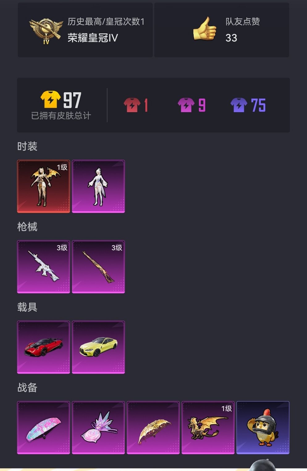 2载具-10套装-25呛皮-可二次实名【女号1红装2载具2特效呛1粉装m4女娲灵识 秒换绑不用等】 安卓q区-11805热力值10套装-25呛皮 【1红装】 圣域龙灵-瑞拉1级【2载具】 帕加尼imola光影红 宝马m4圣保罗黄【1粉装】 角色-女娲灵识【2特效呛】 m416-女娲灵识3级 kar98k-圣域龙灵3级【23热门】 mg3-幻世战舞者 黄色运动 mg-36-薄荷星砂