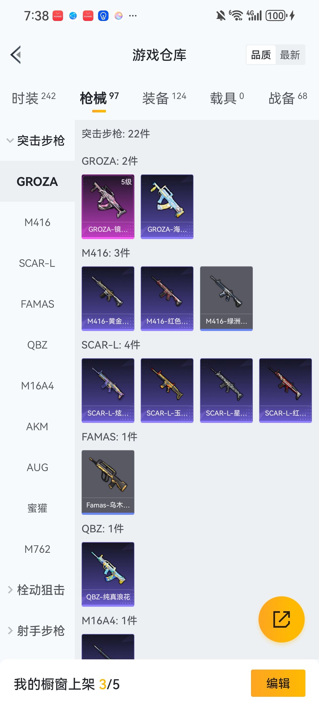 0载具-59套装-97呛皮-可二次实名【蜘蛛侠m4黄金龙骨5特效呛1粉装 秒换绑不用等】 安卓q区-27998热力值-5印记-59套装-97呛皮 【3稀有】 奇异狩猎者 m416-黄金龙骨 awm-黄金龙骨【1粉装】 幻影飞狐【5特效呛】 kar98k-巳巳如意5级 aug-暖羊咩咩5级 groza-镜光银凌5级 dp-28-豹影疾电5级 ump45-量子极限4级【115热门】 sca