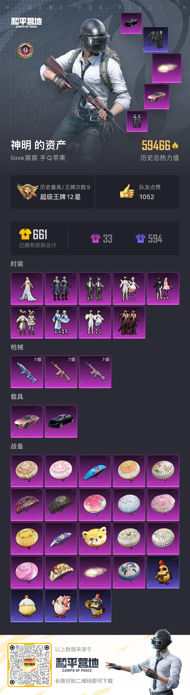 _2412774-2载具-146套装-173呛皮-3稀有2载具9粉装3特效呛9印记【3稀有】akm-缤纷海域都市猎人浪漫天命【2载具】玛莎拉蒂q蓝色玛莎拉蒂粉色【9粉装】智耀战神青空秋雨数码大师童趣迷兔傲雪凌霜炙焰牛王冰川粉黛蜜桃特工寒光使者【3特效呛】m416-心之恋语7级scar-l-童趣迷兔7级akm-梦之光华7级【24热门】龟仙人东方飞龙呆萌铁蟹万圣娃娃鹰眼刺客激萌罗小黑深海小丑鱼胖达圆圆山经魅狐神秘黑猫暗夜契约暗影哥特醒狮腾龙团圆交子瑞龙福将纯白誓言粉红小猪狂沙舞者漫步者破蛋小黄鸡英勇保护者m416-快乐主宰m762-奇异狩猎者m762-瑞龙福将【1飞行器】齐天大圣飞行器【3头盔】百万伏特头盔甜蜜誓约头盔花间之火头盔【4背包】甜心宝贝背包百万伏特背包深海小丑鱼背包甜蜜誓约背包营地id: