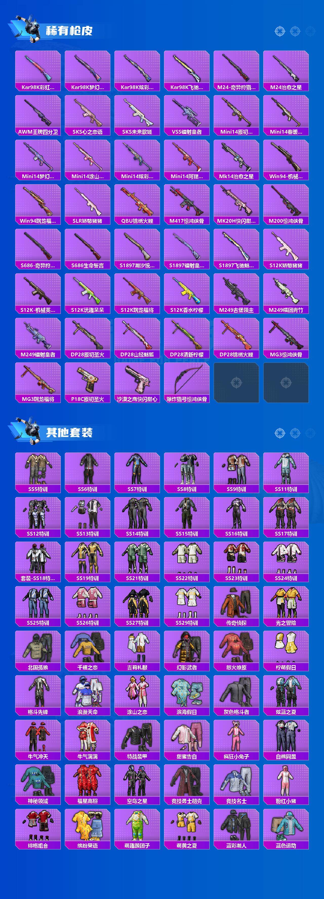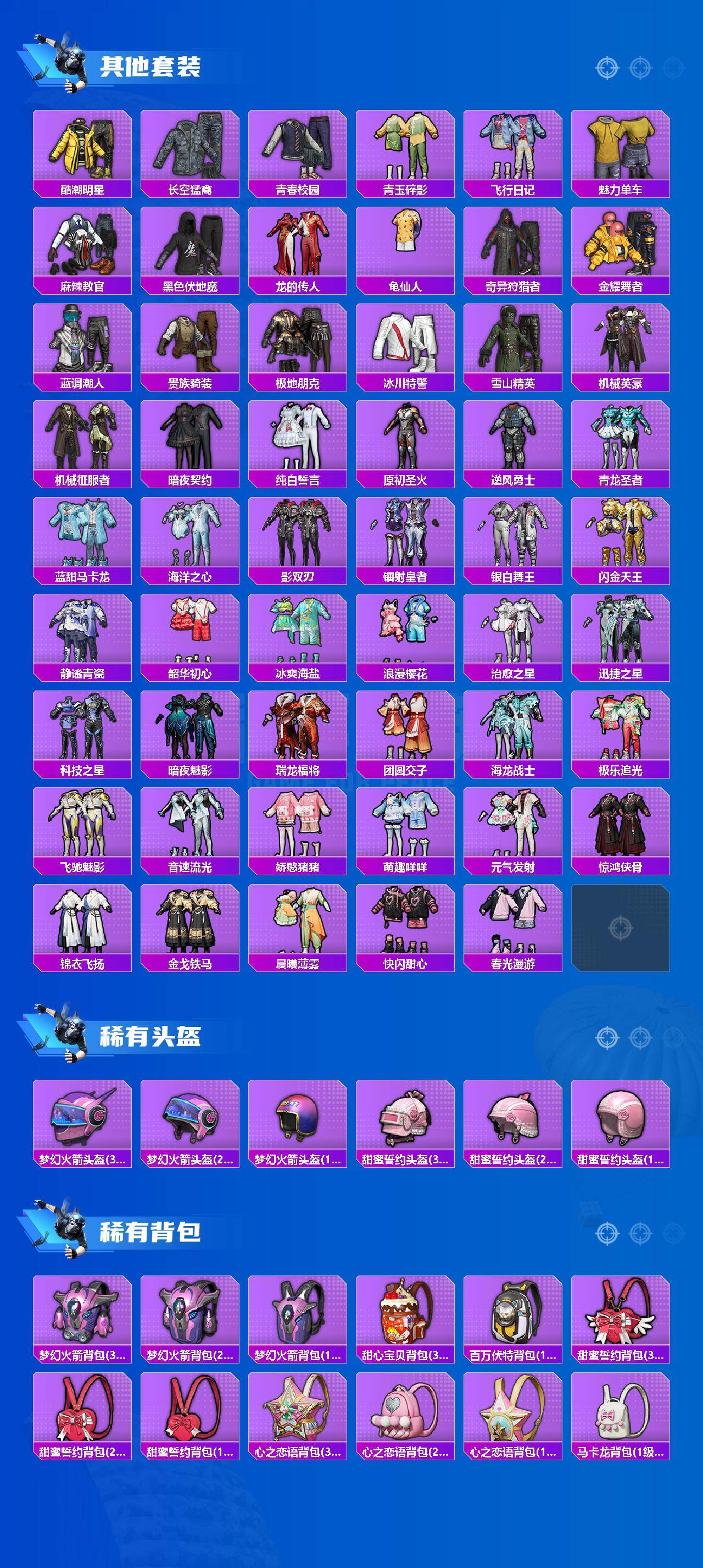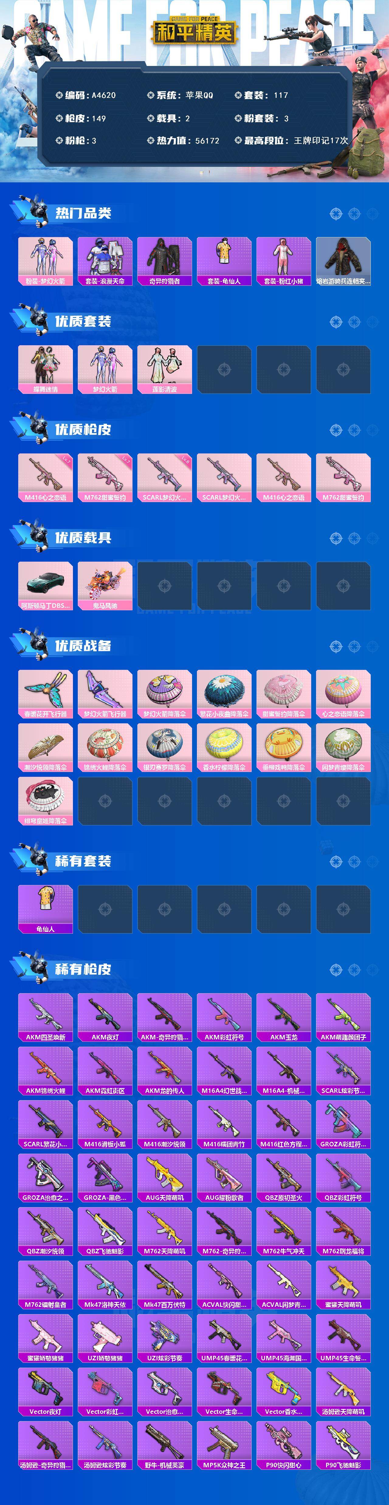 [16076581]苹果【小号/梦幻火箭/m416-心之恋语七级/百万伏特背包1级】 手q-3粉装-3特效呛-2载具-2粉色飞行器-56172热力值-17王牌印记-117套装-149呛皮 【热门品类】:粉装-梦幻火箭,套装-浪漫天命,套装-奇异狩猎者,套装-龟仙人,套装-粉红小猪,熔岩游骑兵连帽夹克 【粉色套装】:粉装-蝶舞迷情,粉装-梦幻火箭,粉装-莲影清波 【粉色呛皮等级】:scar-l-梦幻火箭六级,m416-心之恋语七级,m762-甜蜜誓约七级 【粉色载具】:阿斯顿马丁dbs(绿),鬼马风驰 【粉色呛皮】:scar-l-梦幻火箭,m416-心之恋语,m762-甜蜜誓约 【粉色飞行器】:春暖花开飞行器,梦幻火箭飞行器 【粉色降落伞】:梦幻火箭降落伞,繁花小夜曲降落伞,甜蜜誓约降落伞,心之恋语降落伞,潮汐统领降落伞,锦绣火鲤降落伞,银刃赛罗降落伞,香水柠檬降落伞,垂柳戏鸭降落伞,闲梦青缨降落伞,绯穹魔姬降落伞 【稀有套装】:套装-龟仙人 【稀有呛皮】:akm-四圣焕新,akm-夜灯,akm-奇异狩猎者,akm-彩虹符号,akm-玉龙,akm-萌趣颜团子,akm-锦绣火鲤,akm-霓虹街区,akm-龙的传人,m16a4-幻世战舞者,m16a4-机械英豪,scar-l-炫彩节奏,scar-l-繁花小夜曲,m416-滑板小狐,m416-潮汐统领,m416-糯团青竹,m416-红色方程式,groza-彩虹符号,groza-治愈之星,groza-黑色刀锋,aug-天降萌叽,aug-耀粉歌者,q-原初圣火,q-彩虹符号,q-潮汐统领,q-飞驰魅影,m762-天降萌叽,m762-奇异狩猎者,m762-牛气冲天,m762-瑞龙福将,m762-镭射皇者,mk47-洛神天依,mk47-百万伏特,ac-val-快闪甜心,ac-val-闲梦青缨,蜜獾-天降萌叽,蜜獾-娇憨猪猪,uzi-娇憨猪猪,uzi-炫彩节奏,ump45-春暖花开,ump45-海渊国主,ump45-生命誓言,vect-夜灯,vect-彩虹符号,vect-治愈之星,vect-生命誓言,vect-香水柠檬,汤姆逊-天降萌叽,汤姆逊-奇异狩猎者,汤姆逊-炫彩节奏,野牛-机械英豪,mp5k-众神之王,p90-快闪甜心,p90-飞驰魅影,kar98k-彩虹符号,kar98k-梦幻火箭,ka