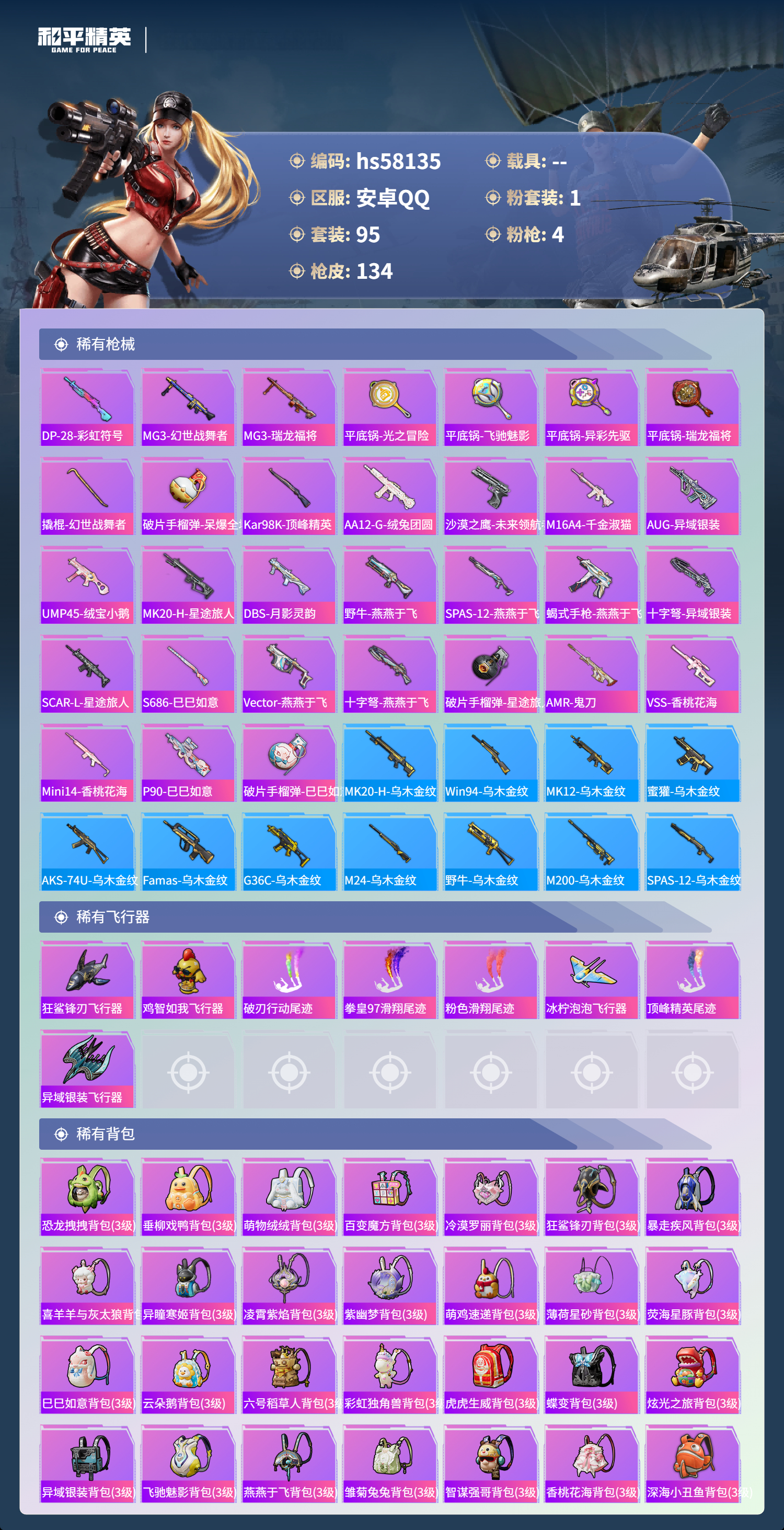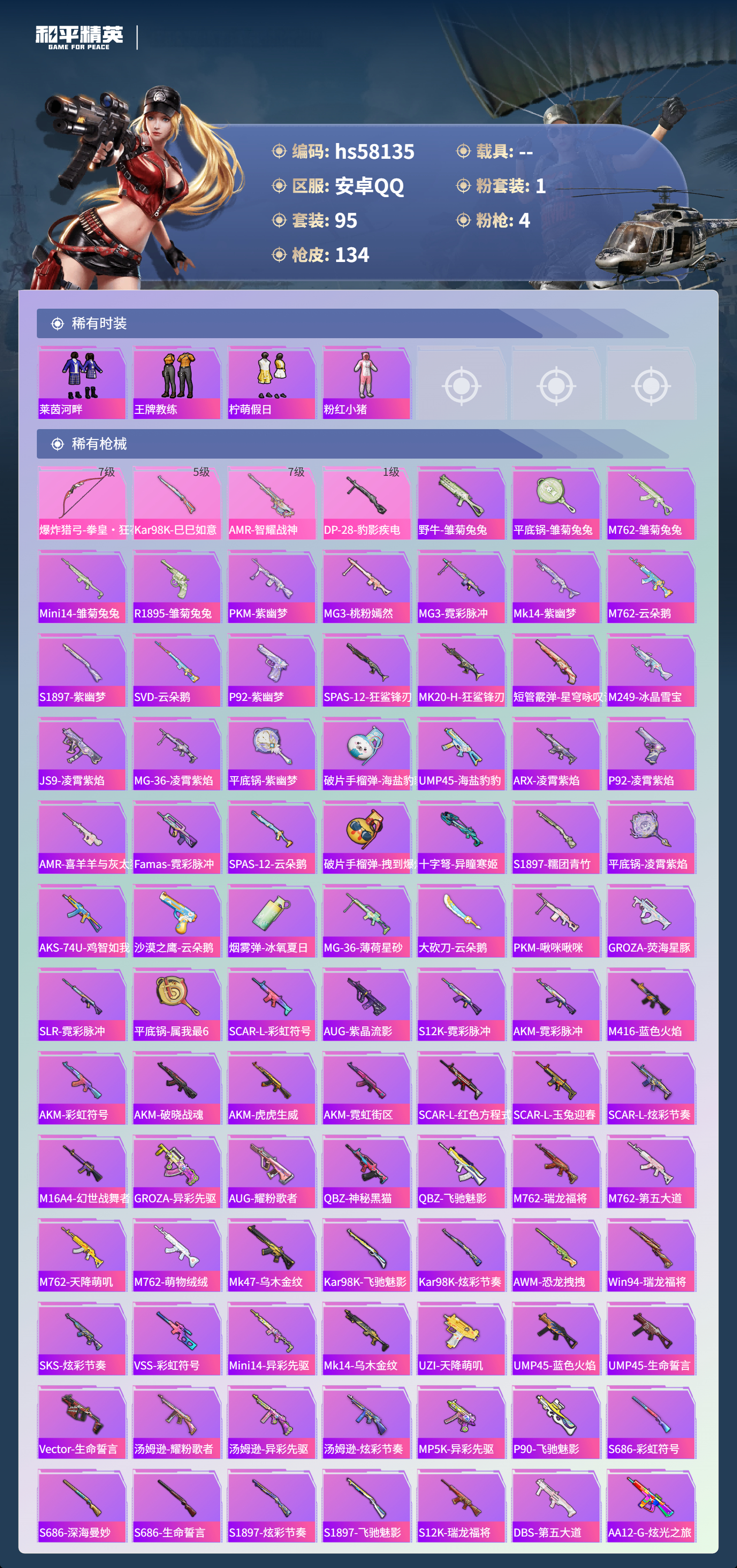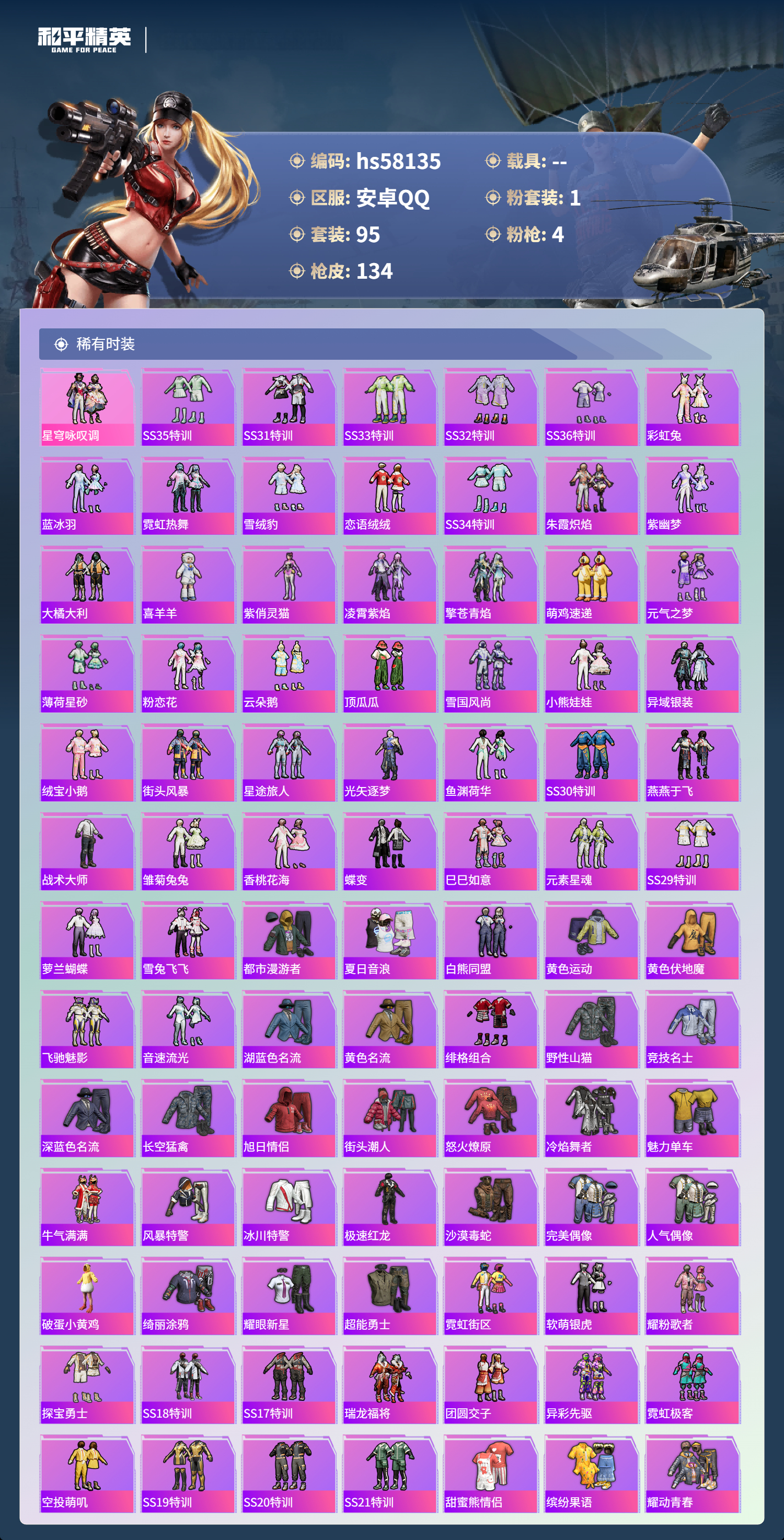 hs58135 安卓手q-9王牌印记-1粉装-4特效呛-38351热力值-95套装-134呛皮-2卓越印记【1粉装】套装-星穹咏叹调【4特效呛】kar98k-巳巳如意/5级爆炸猎弓-拳皇·狂花道/7级dp-28-豹影疾电/1级amr-智耀战神/7级【95稀有时装】星穹咏叹调ss35特训ss31特训ss33特训ss32特训ss36特训彩虹兔蓝冰羽霓虹热舞雪绒豹恋语绒绒