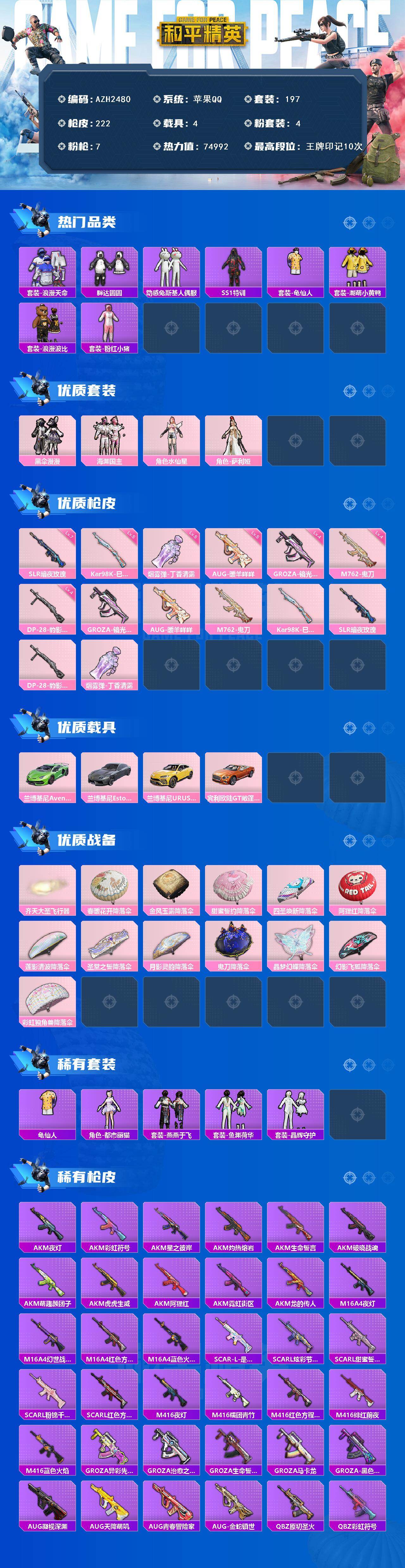 苹果 手q【水仙星 胖达圆圆兔斯基潮萌小黄鸭 满级暗夜玫瑰slr 4载具】4粉装-7特效呛-4载具-1粉色飞行器-74992热力值-10王牌印记-197套装-222呛皮 【热门品类】:套装-浪漫天命,套装-胖达圆圆,套装-动感兔斯基人偶服,套装-ss1特训,套装-龟仙人,套装-潮萌小黄鸭,套装-浪漫波比,套装-粉红小猪 【粉色套装】:粉装-黑伞漫漫,粉装-海渊国主,角色-水仙星,角色-萨利娅
