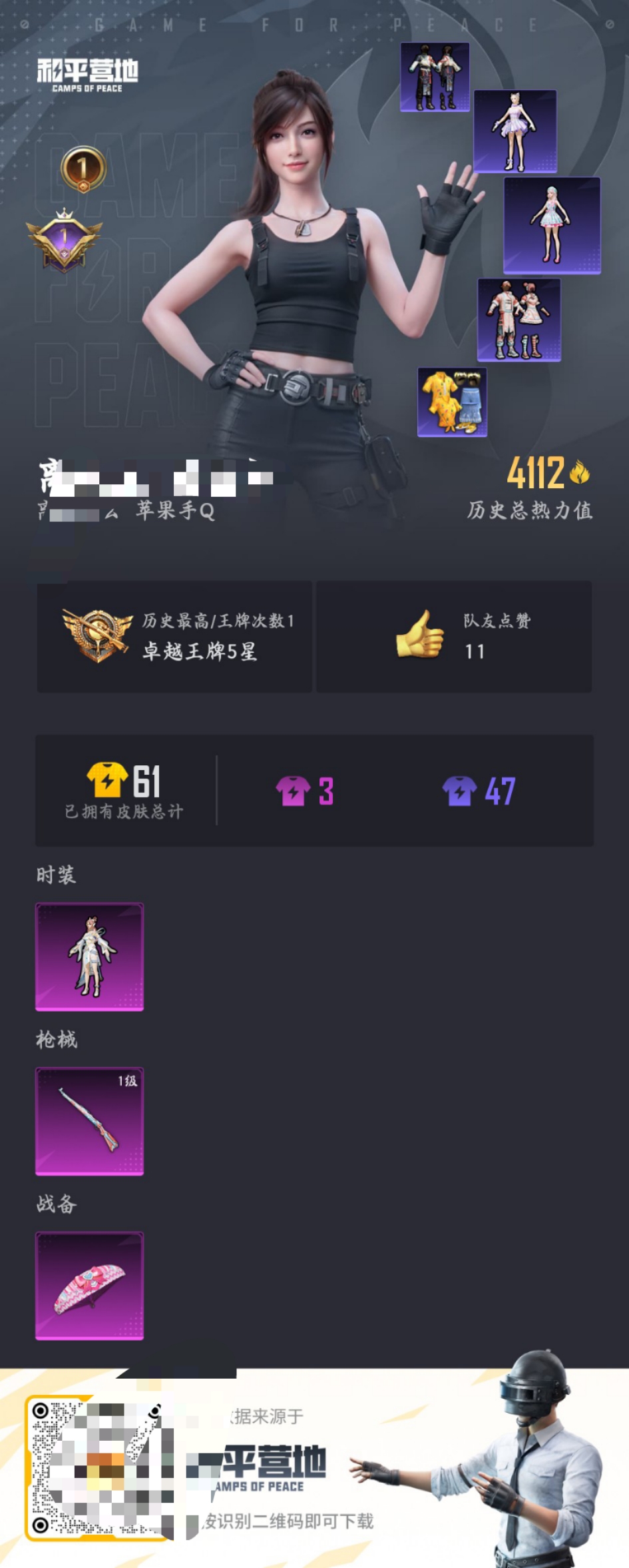 [6587131]h3214实名: 可修改 时装数: 49 呛械数: 12 战备数: 18 热门装扮: 月影灵韵 稀有呛皮: kar98k-巳巳如意 亮点: h3214精品1粉1特 粉霜甜心 都市丽猫