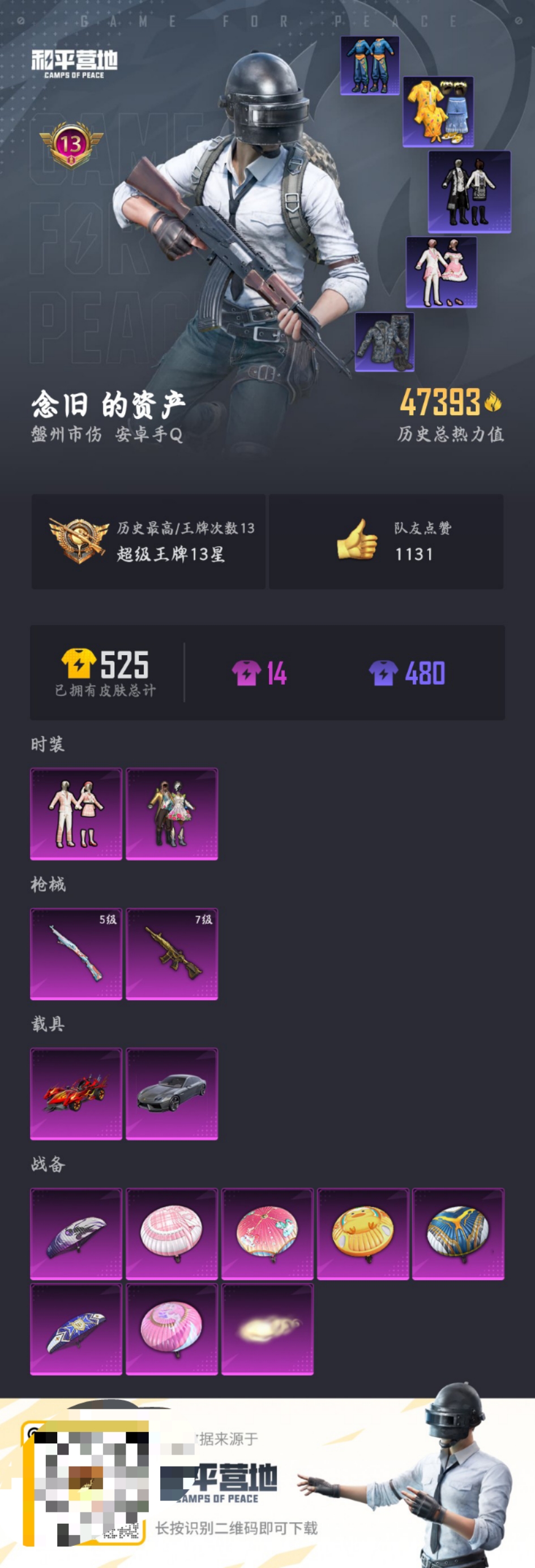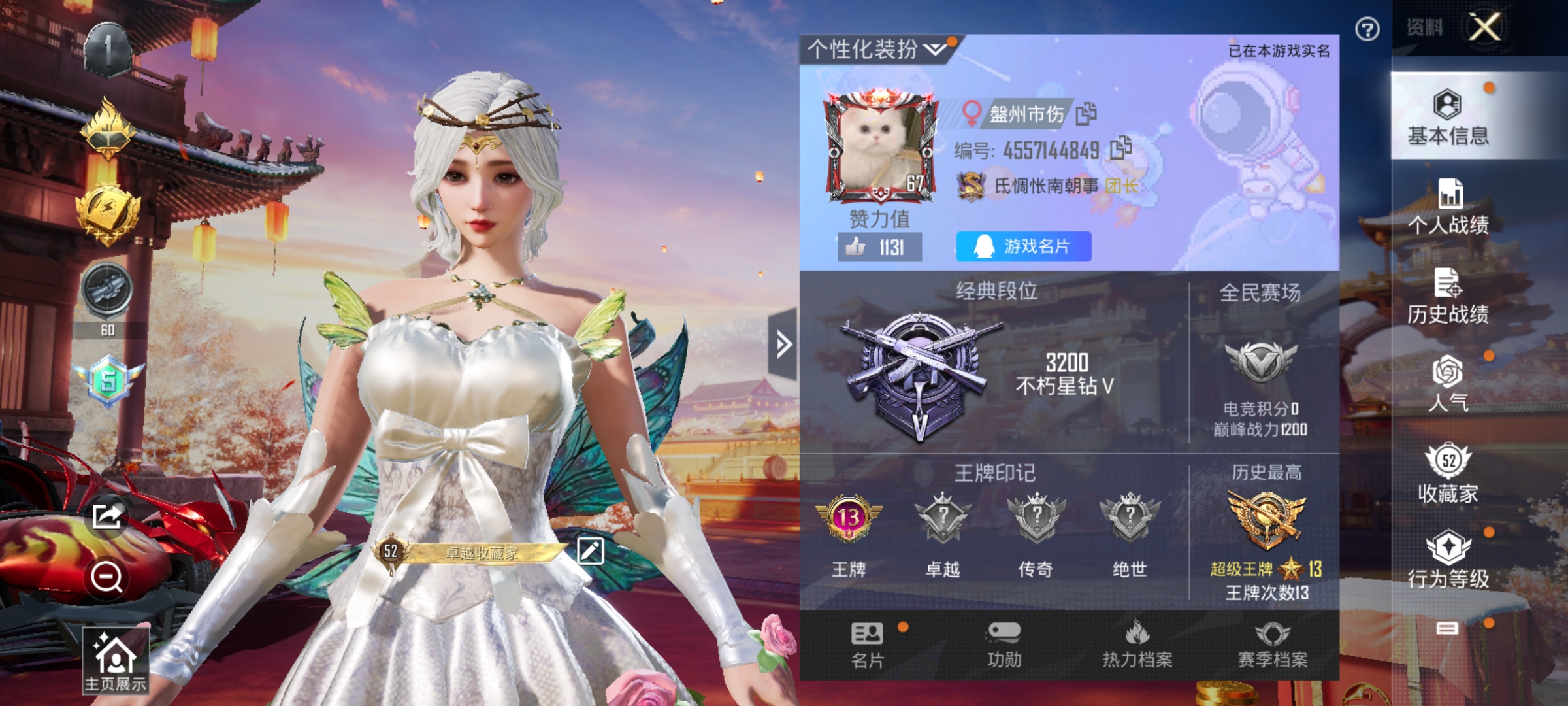[6699770]h3293 实名: 可修改 时装数: 413 载具数: 2 呛械数: 154 战备数: 107 热门装扮: 蝶舞迷情第五大道 载具: 焰龙咆哮兰博基尼estoque银翼灰 稀有呛皮: m416五爪金龙kar98k-巳巳如意 亮点: 精品2粉2特2载具 蝶舞迷情 第五大道 夜幕蓝玛莎