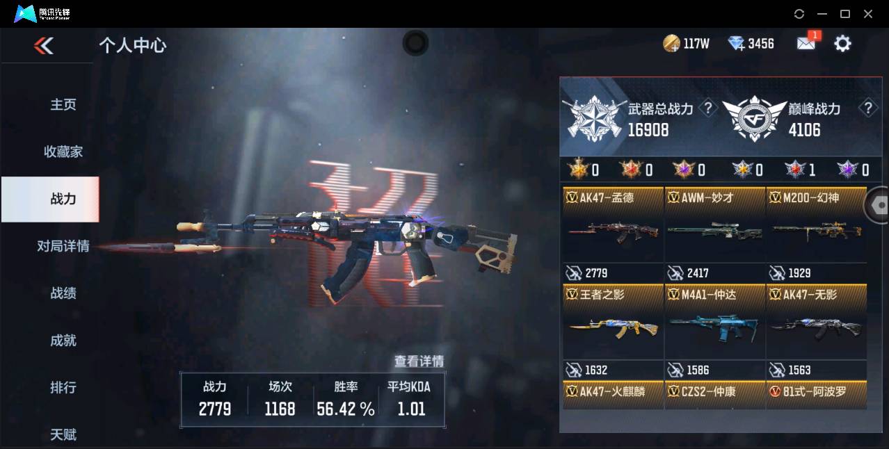 001fq:fqs1397苹果qq区【v6】【164v 30角色 332万化】【王者之影、王者之兽、王者之霆、ak47-孟德、m4a1-仲达、awm-妙才、m200-幻神、81式-光明之神、cop357-雷霆】角色【炽天使-x、零-新生、葵、关小雨】【限时道具不保证剩余时间,段位仅限本赛季,喜欢速秒!!!手慢无!!!】
