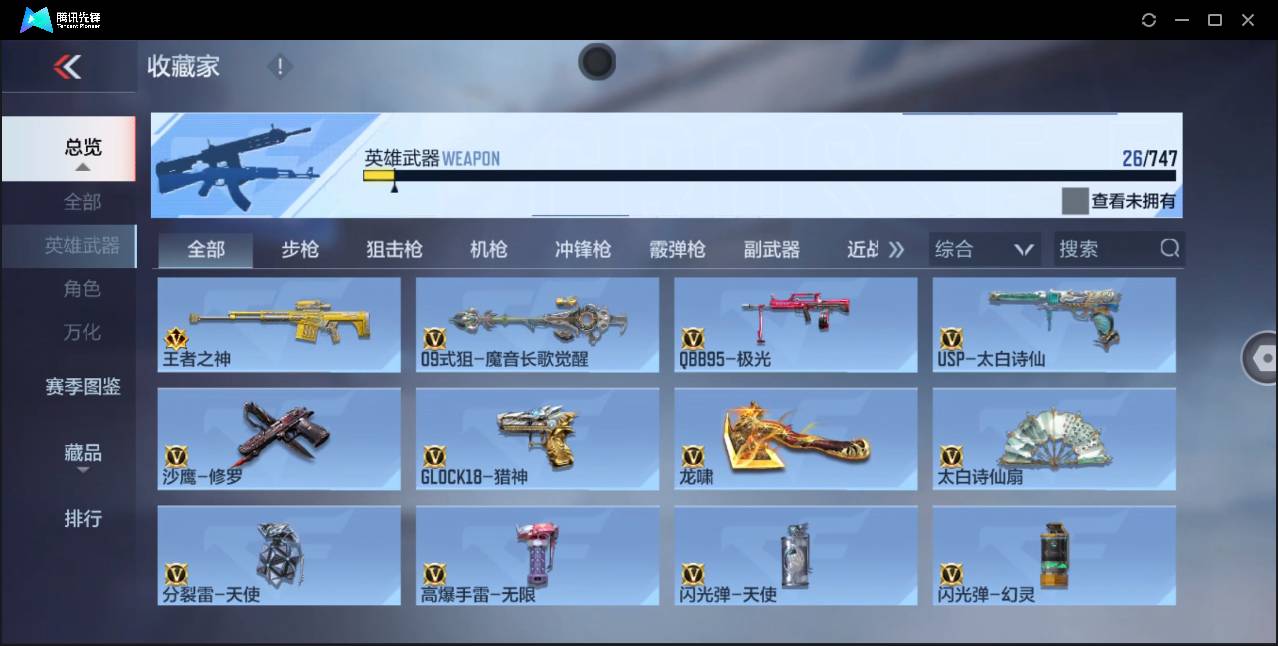 007m:m1149【苹果qq】【不可二次实名】v1练手号,王者之神【英雄级武器26,万化22,角色3】 【王者武器】:王者之神 【热门武器】:芭蕾特-极光、usp-太白诗仙、太白诗仙扇、m4a1-太白诗仙 详情看图【英雄武器包含数量可能含有时效性武器,具体以截图内实际拥有为主】【官方截图】