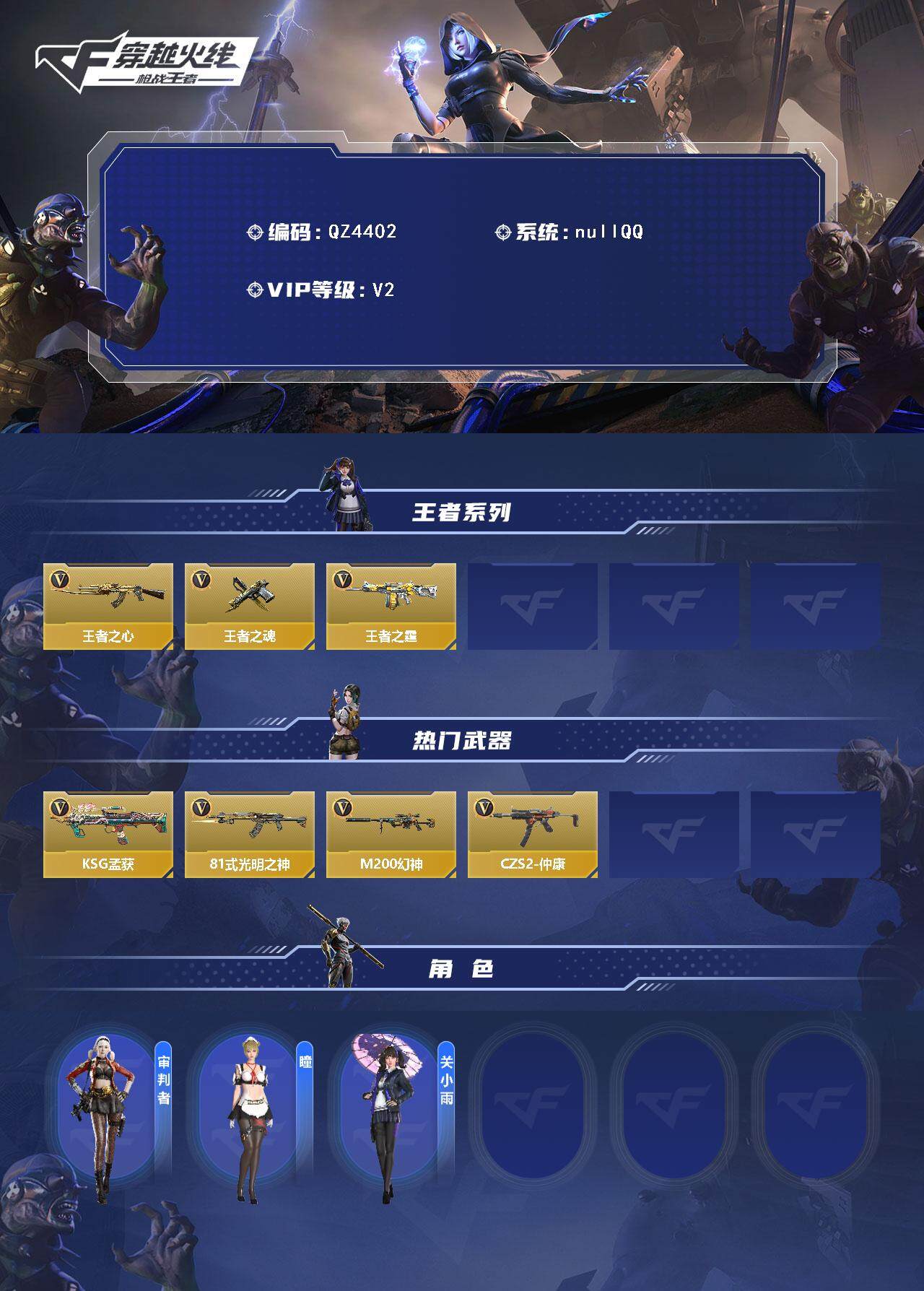 【qz4402】vip2/162v/王者之心/王者之魂/王者之霆/ksg-孟获/81式-光明之神/m200-幻神/czs2-仲康/审判者/瞳/关小雨/蚩尤战弓觉醒/太白诗仙扇
