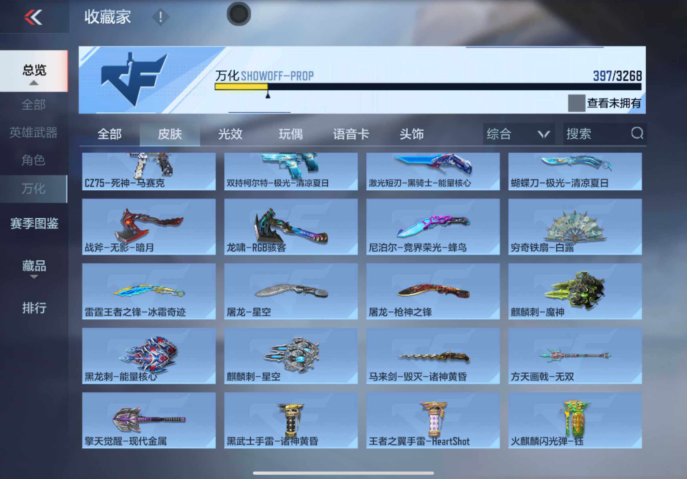 v7/11王者/王魄拉丝皮/王影/王誉/王狱/王蝶/雷霆王者之锋冰皮/王翼闪光烟雾/王影烟雾/王圣烟雾/ak奉先/mk47仁德/m4游骑兵紫魇/m4九尾狐/awm游骑兵/m200幻神深海猎手/tac慈/czs2仲康/黑铁cop/柯尔特仲达/方天画戟 无双/炽芒蝶刃/角色/岚兮儿/消灭音效/深海葬歌/炎龙铠甲/焰火贺岁/巴巴塔/九尾狐/斩杀/能量核心/狙击呛线/熔岩/heartshot/