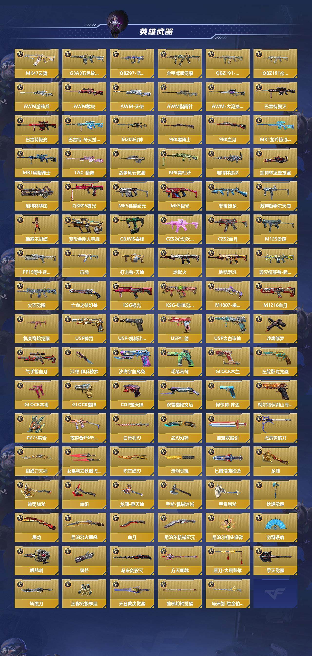 【cfmg940】vip7/287v/心至尊/王者之影/王者之怒/王者之心/王者之神/王者之锋/王者之蝶/王者之腾/王者之狱/王者之魂/王者幻神/王者之霆/q03-王者蔷薇/王者之誉/m12s-雷霆王者/81式-光明之神/m4a1-仲达/m4a1-星象/m4a1-游骑兵/m200-幻神/awm-游骑兵/vepr12-宙斯/cop 357-堕天神/葵/幽灵刀锋-觉醒/樱/关小雨/晴雅/零-水下丽影/炽天使-x/祝融夫人/九安-x/ak47-无影/ak47-火麒麟/ak47-沙漠领主/ak47-变色龙/ak47-猩红传说/ak47-雷麒麟/ak47-血武士/ak47-黑鲨/ak47-春雅觉醒/ak47-木兰/ak47-雅韵青花/ak47-谜城烟火/m4a1-雷神/m4a1-黑骑士/m4a1-死神/m4a1-卧龙/m4a1-rush-夜袭/m4a1-龙血/m4a1-机械迷城/m4a1-赛博雷神/m4a1-雷霆/m4a1-堕天神/m4a1-心动次元/m4a1-运输船/m4a1-千变/m4a1-太白诗仙/scar-幽暗骑士/scar-幽暗骑士觉醒/scar light-白虎/scar-探星者/scar-印刷术觉醒/scar-心动pick/剑齿虎-炫彩/an94-四凶觉醒/an94-赳赳秦师/9a91-游骑兵/9a91-天神/9a91-魔蜥觉醒/m14ebr-天神/m14ebr-拂影/m14ebr-葫芦山庄/m16-恶魔/ak12-天启/q03-金色蔷薇/q03-死神/q03-玉面羞花/hk416-混世行者/hk416-极光/hk417-炎龙铠甲/g36-机械纪元/mk47-云舞/g3a3-五色琉璃觉醒/q97-浩瀚征途/q191-金甲虎啸觉醒/q191-封神榜/q191-帝皇铠甲/awm-裁决/awm-天使/awm-指南针/awm-大湾溢彩/芭蕾特-毁灭/芭蕾特-极光/芭蕾特-冬灭觉醒/98k-黑骑士/98k-血月/mr1-龙吟惊沧海/mr1-幽暗骑士/tac-晴舞/gm6-战争风云觉醒/rpk-美杜莎/加特林-炼狱/加特林-堡垒觉醒/加特林-蟒蛇/qbb95-极光/mk5-机械纪元/mk5-极光/寒霜烈龙/双持斯泰尔-天使/斯泰尔-蝴蝶/qcw05-变形金刚·大黄蜂/cbj-ms-毒蜂/czs2-心动次元/czs2-血月/m12s-雷霆/pp19野牛-造纸术/打击者-天神/地狱火/地狱烈炎/毁灭征服者-超越max/aa12-火药觉醒/亡命之徒-幻兽/ksg-极光/ksg-钟馗觉醒/m1887-幽冥玄喵觉醒/m1216-血月/igin12-机变奇蛇觉醒/usp-神罚/usp-机械迷城/usp-仁德/usp-太白诗仙/沙鹰-修罗/气手呛-血月/沙鹰-神兵修罗/沙鹰-宇航兔兔/毛瑟-毒蜂/改装glock-木兰/左轮-卧龙觉醒/双持glock18-本初/glock18-猎神/双管猎呛-文远/柯尔特-仲达/柯尔特-伏刹山海觉醒/cz75-穷奇/掠夺者p365-虹舞/白骨利刃/墨刃-幻神/雌雄双股剑/虎贲钩镰刀/蝴蝶刀-天神/女皇利刃-铁胆虎魄/炽芒蝶刃/清刚-觉醒/匕首-浩瀚征途/龙啸/神罚战斧/血阳/龙啸-堕天神/手斧-机械迷城/甲骨利斧/秋逸觉醒/屠龙/尼泊尔-火麒麟/血月/尼泊尔-机械纪元/尼泊尔-铜头铁臂/穷奇铁扇/龙鳞-觉醒/太白诗仙扇/麒麟刺/星芒/马来剑-毁灭/方天画戟/唐刀-大唐荣耀/擎天觉醒/斩魔刀/迷你究极泰坦/末日裁决觉醒/破邪蛇棍觉醒/马来剑-耀金伯爵