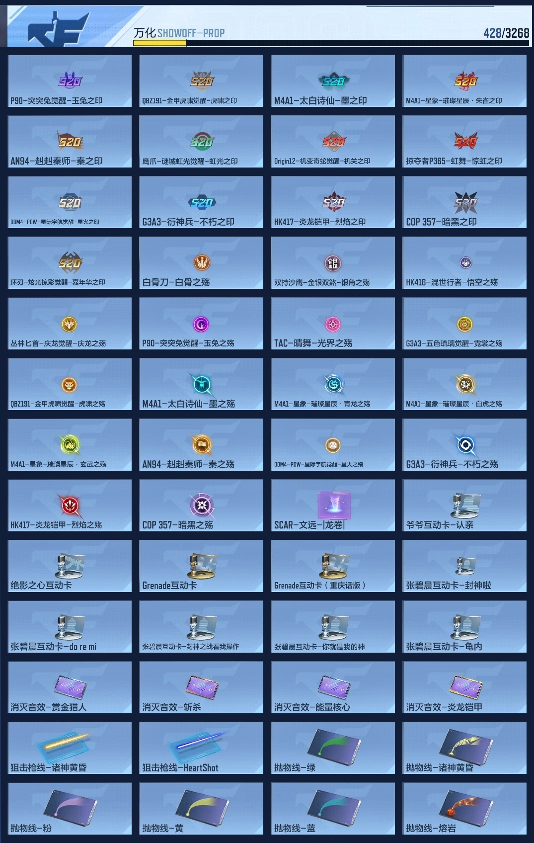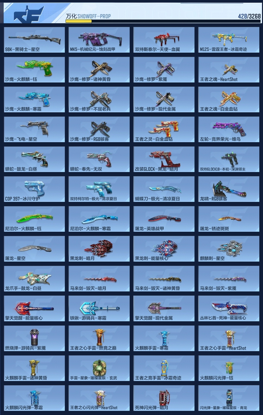 lc625346 【2至尊-1同框-10王者-拉丝王心-拉丝王影-拉丝王怒-奉先无双-文远过载-盖-权-3cop-孟获】 万化数量428 音效卡3 狙击呛线2 消灭音效4 语音卡3 抛物线7 音效卡:王者之怒-现代战场,芭蕾特-毁灭-现代战场,m4a1-雷神-电音; 狙击呛线:狙击呛线-诸神黄昏,狙击呛线-heartshot; 消灭音效:消灭音效-赏金猎人,消灭音效-能量核心,消灭音效-斩杀,消灭音效-炎龙铠甲; 语音卡:晴雅语音卡,葫芦娃语音卡,云悠悠语音卡; 抛物线:抛物线-能量核心,抛物线-熔岩,抛物线-绿,抛物线-蓝,抛物线-黄,抛物线-粉,抛物线-诸神黄昏;