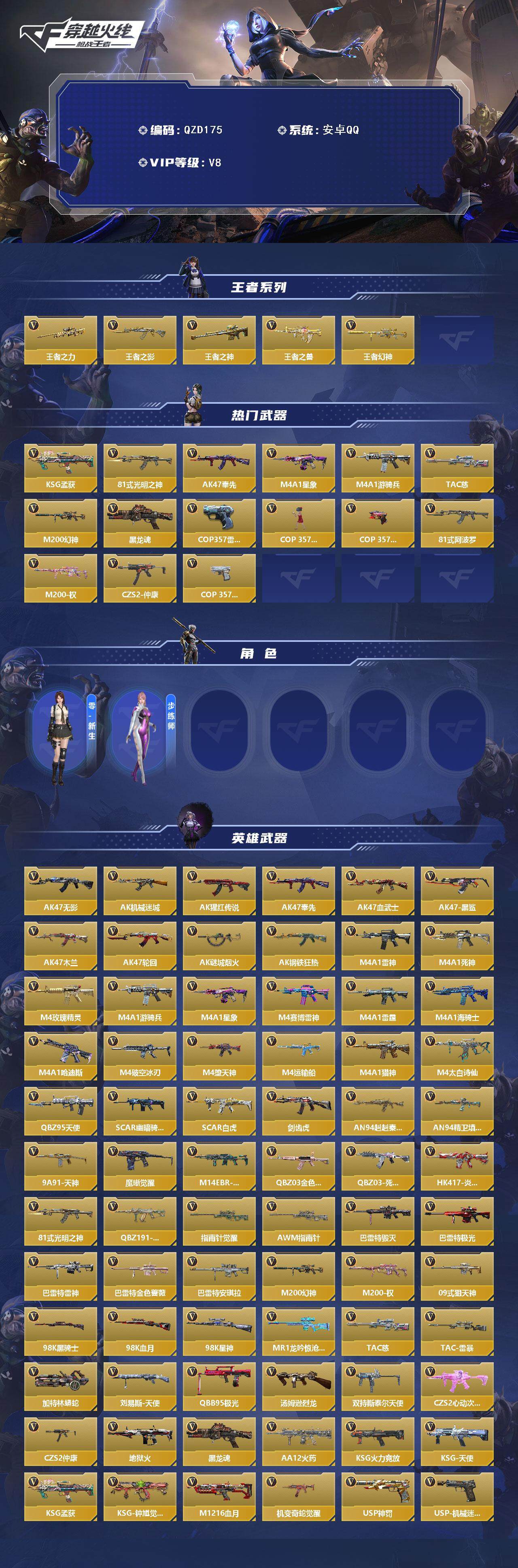 【qzd175】vip8/226v/王者之力/王者之影/王者之神/王者之兽/王者幻神/ksg-孟获/81式-光明之神/ak47-奉先/m4a1-星象/m4a1-游骑兵/tac-慈/m200-幻神/黑龙魂/cop357-雷霆/cop 357-旗袍/cop 357-堕天神/81式-阿波罗/m200-权/czs2-仲康/cop-357-安琪拉/零-新生/步练师/ak47-无影/ak47-机械迷城/a