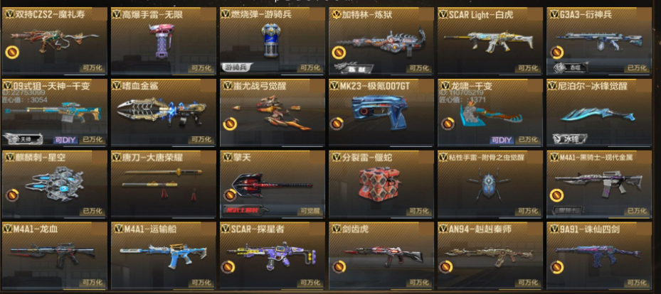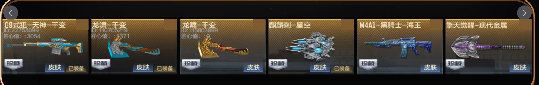 s301 安卓q 【游戏等级】 68 【信誉评分】 100 【贵族等级】 1 【收藏点数】 2610 【武器】 双持czs2-魔礼寿 09式狙-天神 9a91-诛仙四剑 武器-g3a3-衍神兵 武器-hk417-炎龙铠甲 武器-m14ebr-暗夜觉醒 武器-m4a1-运输船 武器-m4a1-黑骑士 武器-m4a1-龙血 武器-igin12-极氪001 武器-qbb95-极光