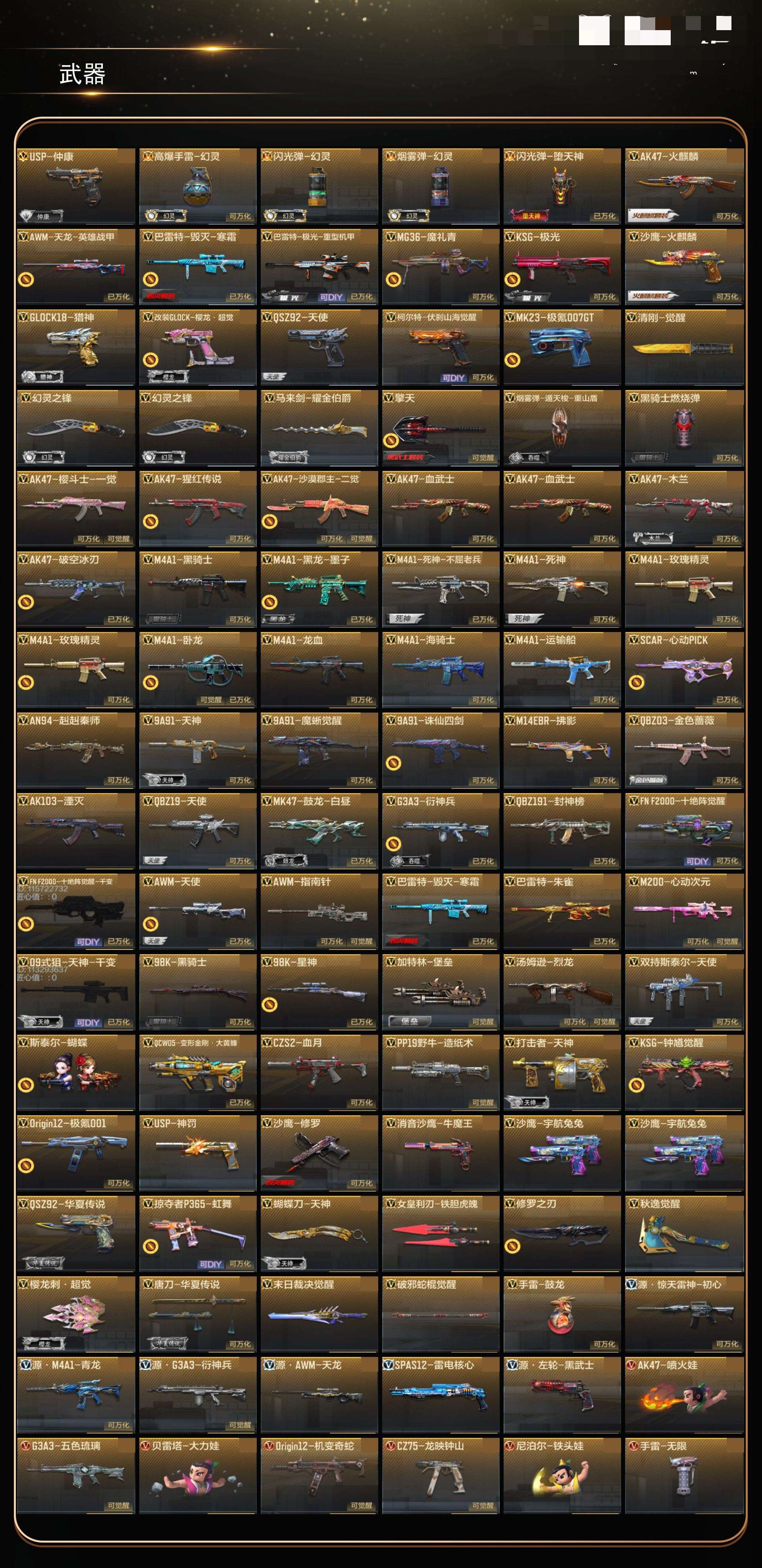 s302安卓q 【游戏等级】 85 【信誉评分】 100 【贵族等级】 4 【收藏点数】 4552 【武器】 ksg-孟获 武器-炽芒蝶刃 09式狙-天神 98k-星神 9a91-天神 武器-9a91-诛仙四剑 武器-9a91-魔蜥觉醒 武器-ak47-木兰 武器-ak47-樱斗士-一觉 武器-ak47-沙漠郡主-二觉 武器-ak47-火麒麟 武器-ak47-猩红传说 武器