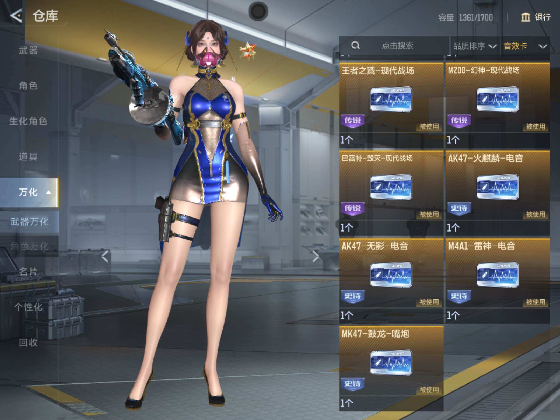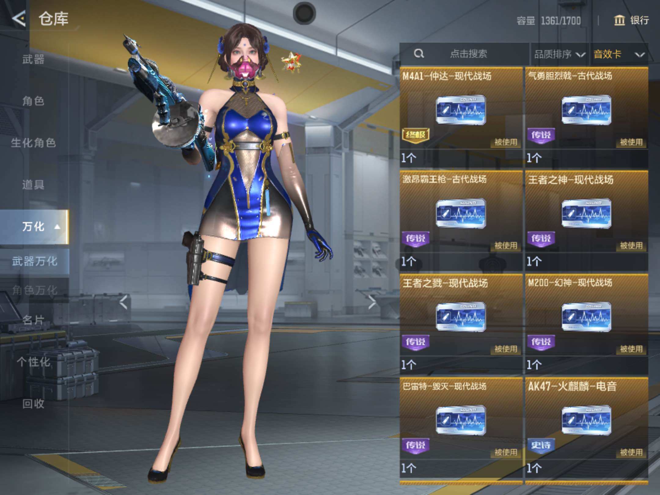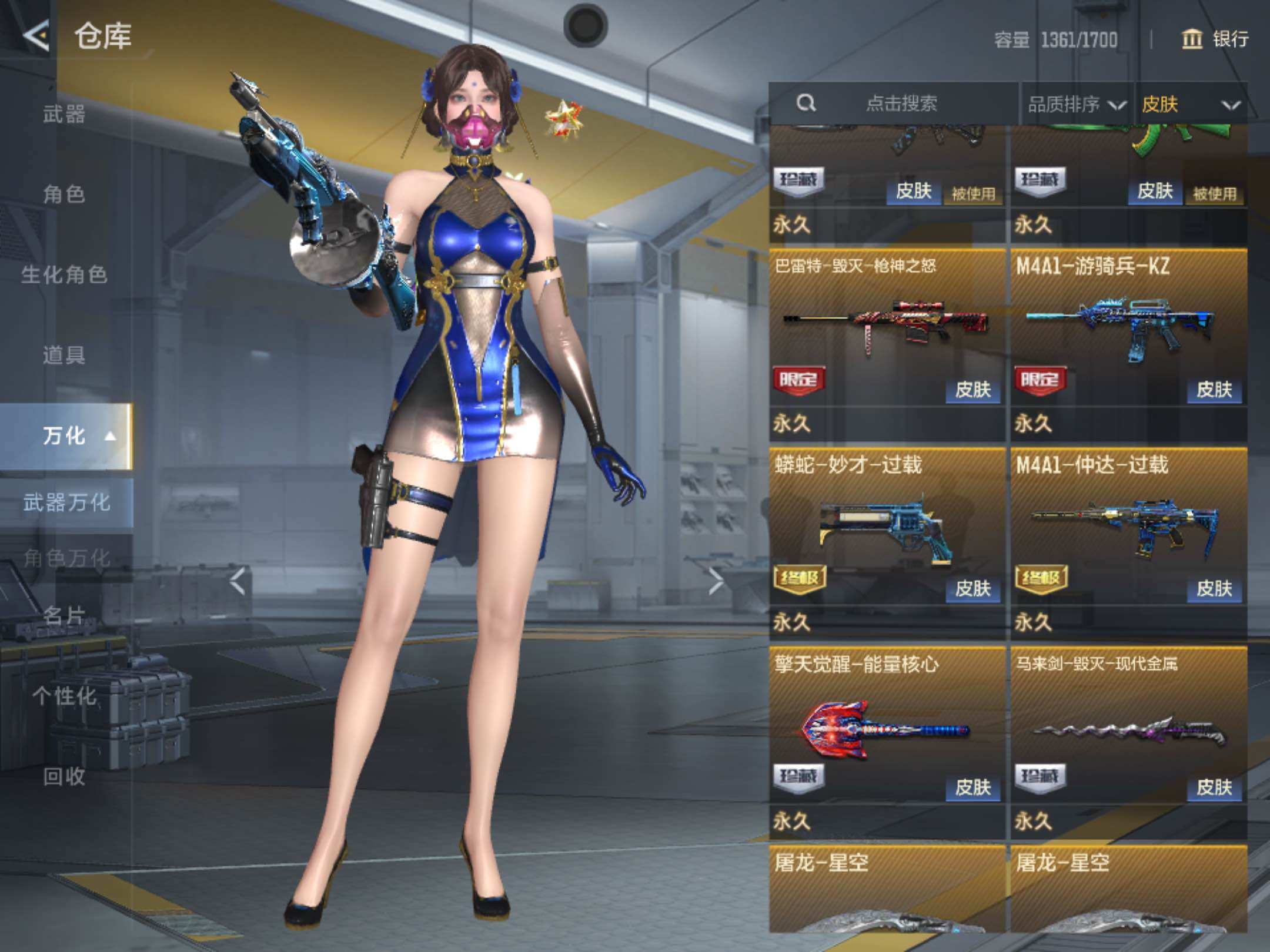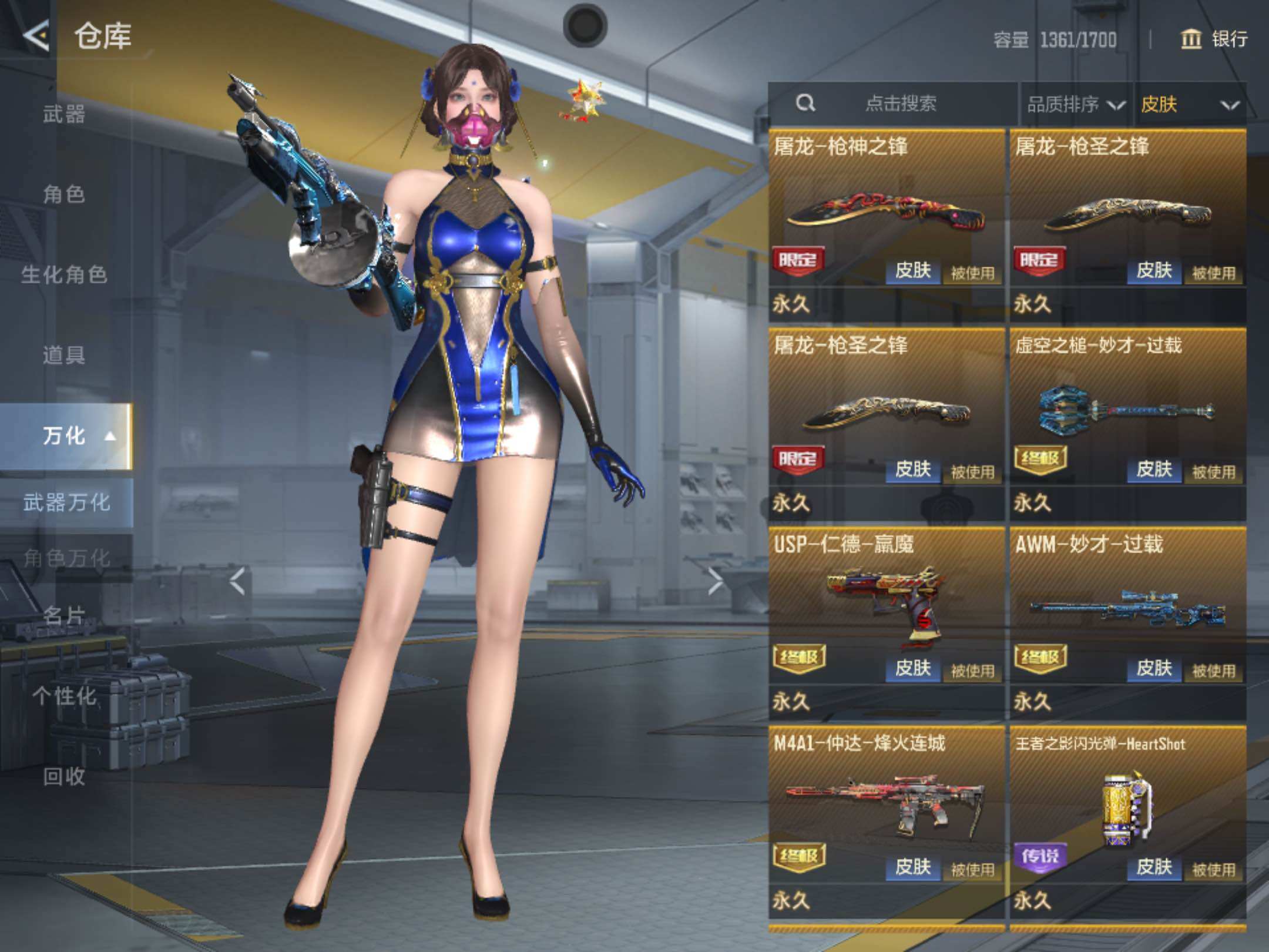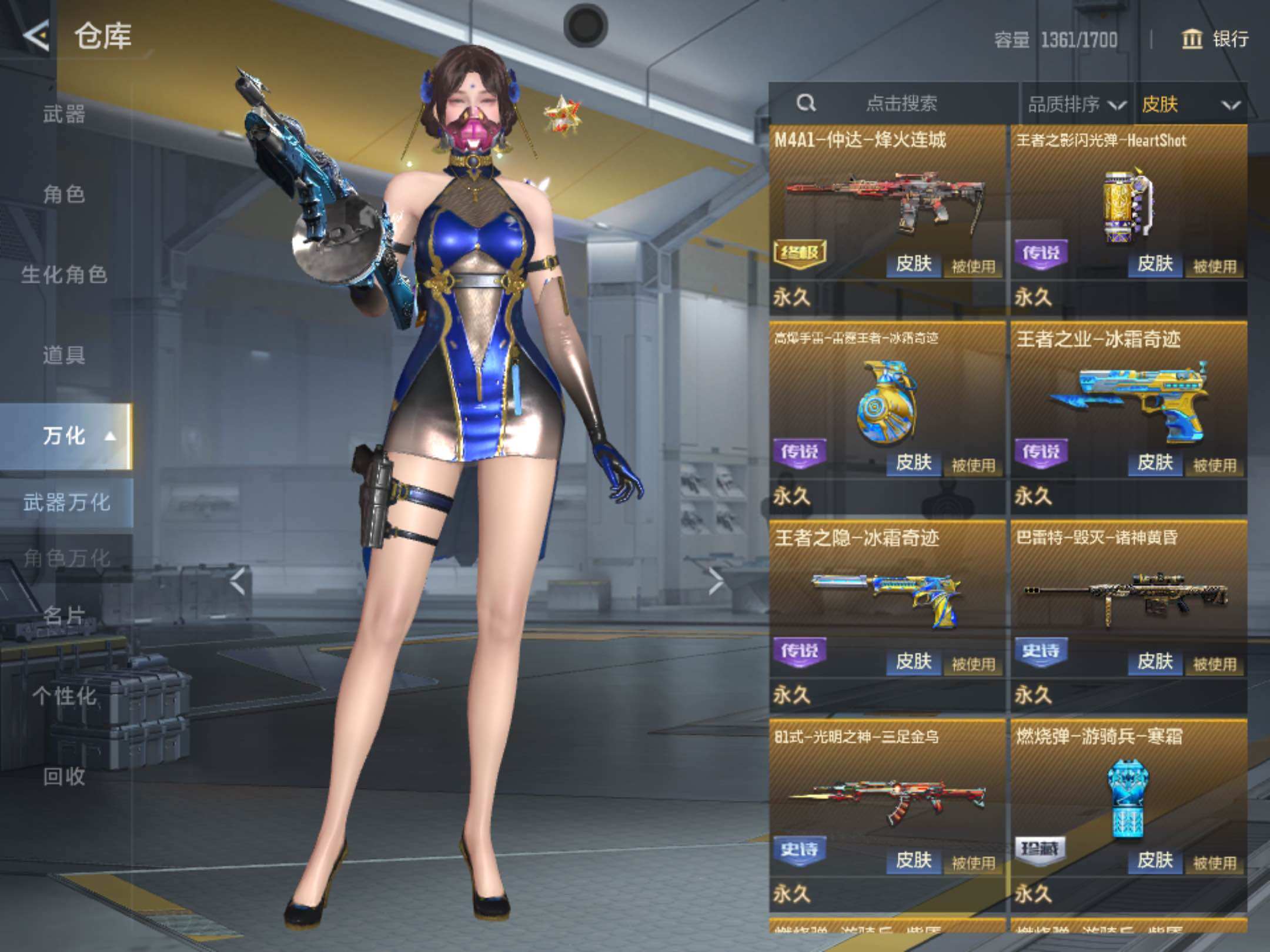 6英雄角色数-196英雄武器数 【王者系列】:王者之戮,王者之影,王者之心,王者之神,王者之迹,王者之蝶,王者之兽,王者之狱,王者之隐,王者之霆,王者之业,cop 357-雷霆王者 【热门武器】:ksg-孟获,81式-光明之神,mk47-仁德,m4a1-仲达,m4a1-游骑兵,m200-幻神,awm-妙才,awm-游骑兵,vepr12-宙斯,cop 357-堕天神,81式-阿波罗,czs2-仲康,an94-盖 【角色】:幽灵刀锋-觉醒,关小雨,晴雅,蝉,夏日灵狐-x,步练师 【英雄武器】:ak47-无影,ak47-火麒麟,ak47-rush-星速,ak47-雷霆,ak47-雅韵青花,ak47-谜城烟火,m4a1-雷神,m4a1-黑骑士2,m4a1-黑龙2,m4a1-死神,m4a1-游骑兵,m4a1-仲达,m4a1-雷霆,m4a1-哈迪斯,m4a1-运输船,m4a1-千变,m4a1-铁胆虎魄,scar-幽暗骑士,scar light-白虎,an94-超新星,an94-赳赳秦师,an94-盖,m14ebr-暗夜,m14ebr-拂影,m14ebr-葫芦山庄,ak12-天启,81式-光明之神,mk47-机械纪元,mk47-云舞,mk47-仁德,sks-美杜莎,g3a3-衍神兵,awm-天龙,awm-赛博时代,awm-游骑兵,awm-妙才,芭蕾特-毁灭,芭蕾特-极光6,m200-幻神,tac-天使,tac-雷暴,寒霜烈龙5,qcw05-变形金刚·大黄蜂,a180-地狱凤凰,czs2-仲康,m12s-雷霆,m12s-天公,vepr12-宙斯,aa12-竞界荣光,ksg-孟获,ksg-钟馗觉醒,贝雷塔-力拔山河,m1887-幽冥玄喵觉醒2,usp-机械迷城,usp-仁德,沙鹰-修罗,沙鹰-宇航兔兔,蚩尤战弓觉醒,cop 357-堕天神,cop 357-雷霆王者,双管猎呛-威侯,柯尔特-仲达,cz75-策,mk23-机械纪元,mk23-幻神,掠夺者p365-虹舞,白骨利刃,墨刃-幻神,雌雄双股剑,炽芒蝶刃6,龙啸,神罚战斧2,镰刀-哈迪斯,气勇胆烈戟,屠龙14,尼泊尔-雷霆3,穷奇铁扇,龙鳞-觉醒,麒麟刺,星芒,马来剑-毁灭,斩魔剑-天使,唐刀-华夏传说,方天画戟,擎天觉醒,铁锹-孟德,虚空之槌-妙才,丛林匕首-火力竞放觉醒,丛林匕首-庆龙觉醒,黄金迷你玉凝 【三国/其他套装】:孟获套,仲康套,幻神套,毁灭套,仁德套,仲达套,哈迪斯套