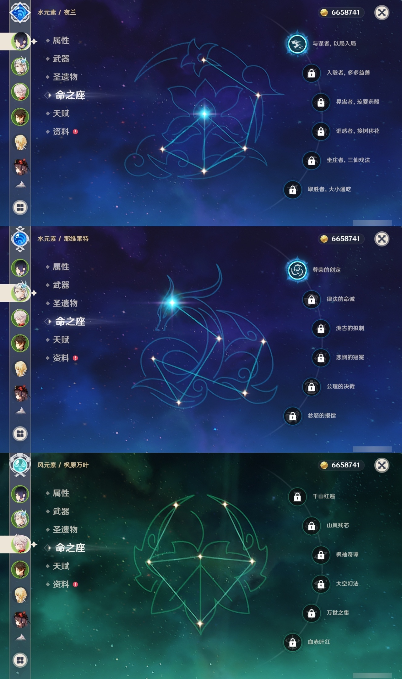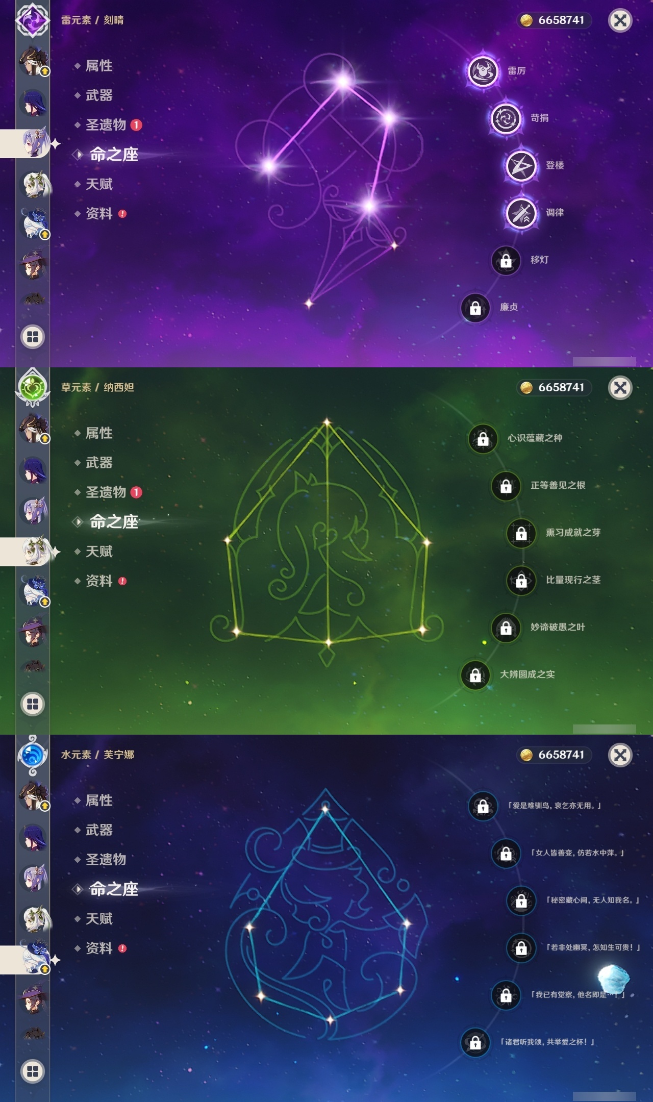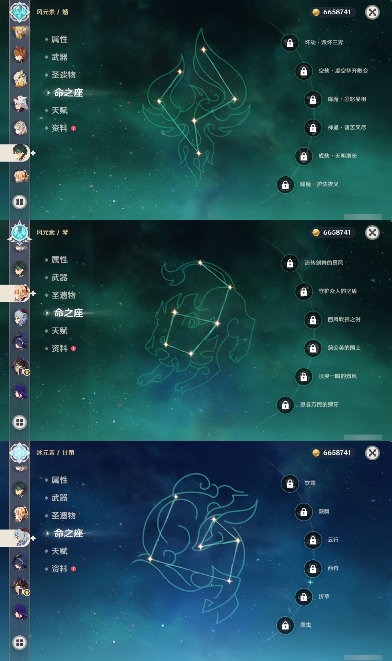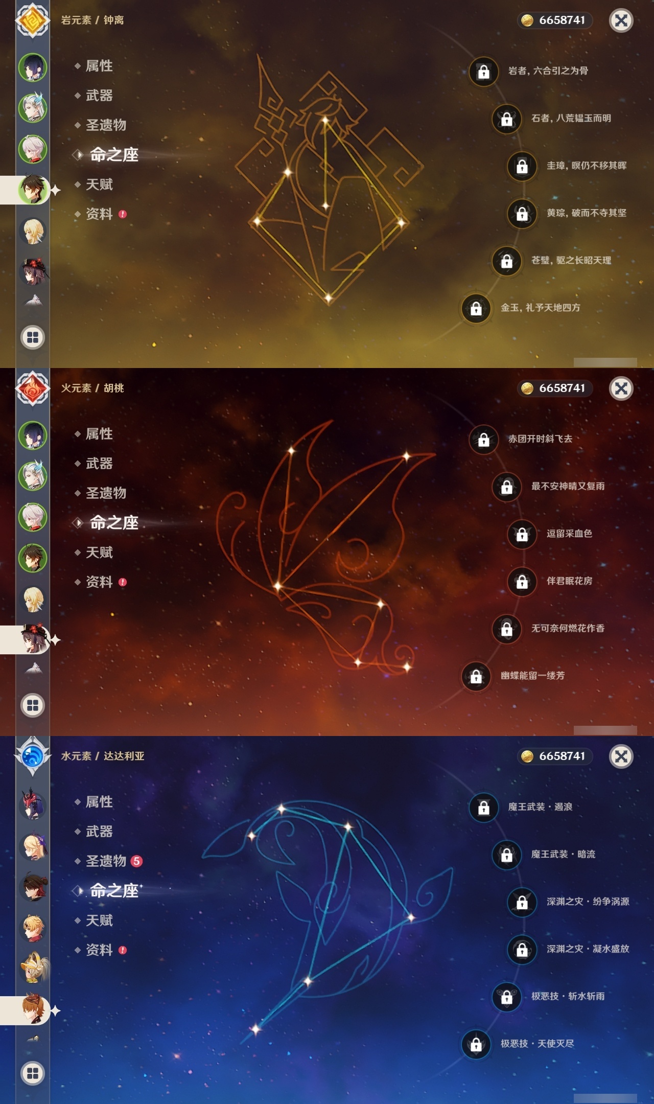 【原神】【lyys7966】冒险等级:60,五星数量:42,五星角色:刻晴 4命迪希雅 1命那维莱特 1命夜兰 1命莫娜七七琴希诺宁宵宫钟离荒泷一斗达达利亚阿贝多芙宁娜闲云赛诺纳西妲迪卢克枫原万叶甘雨魈胡桃克洛琳德雷电将军__五星武器:千夜浮梦 3精天空之脊 2精天空之卷 2精天空之刃 2精最初的大魔术阿莫斯之弓苍古自由之誓风鹰剑天空之傲无工之剑雾切之回光薙草之稻光赤角石溃杵息灾贯虹之槊若水圣显之钥赦罪__四星角色:班尼特 6命行秋 6命香菱 6命久岐忍 6命鹿野院平藏 6命珐露珊 6命迪奥娜 6命绮良良 6命柯莱 6命芭芭拉 6命云堇 6命五郎 6命烟绯 6命重云 6命诺艾尔 6命雷泽 6命菲谢尔 6命北斗 6命多莉 5命早柚 5命辛焱 5命莱依拉 4命罗莎莉亚 4命琳妮特 4命九条裟罗 3命凝光 3命砂糖 3命菲米尼 3命瑶瑶 2命卡维 2命赛索斯 2命卡齐娜 1命坎蒂丝 1命夏洛蒂 1命夏沃蕾 1命嘉明 1命米卡蓝砚托马伊安珊