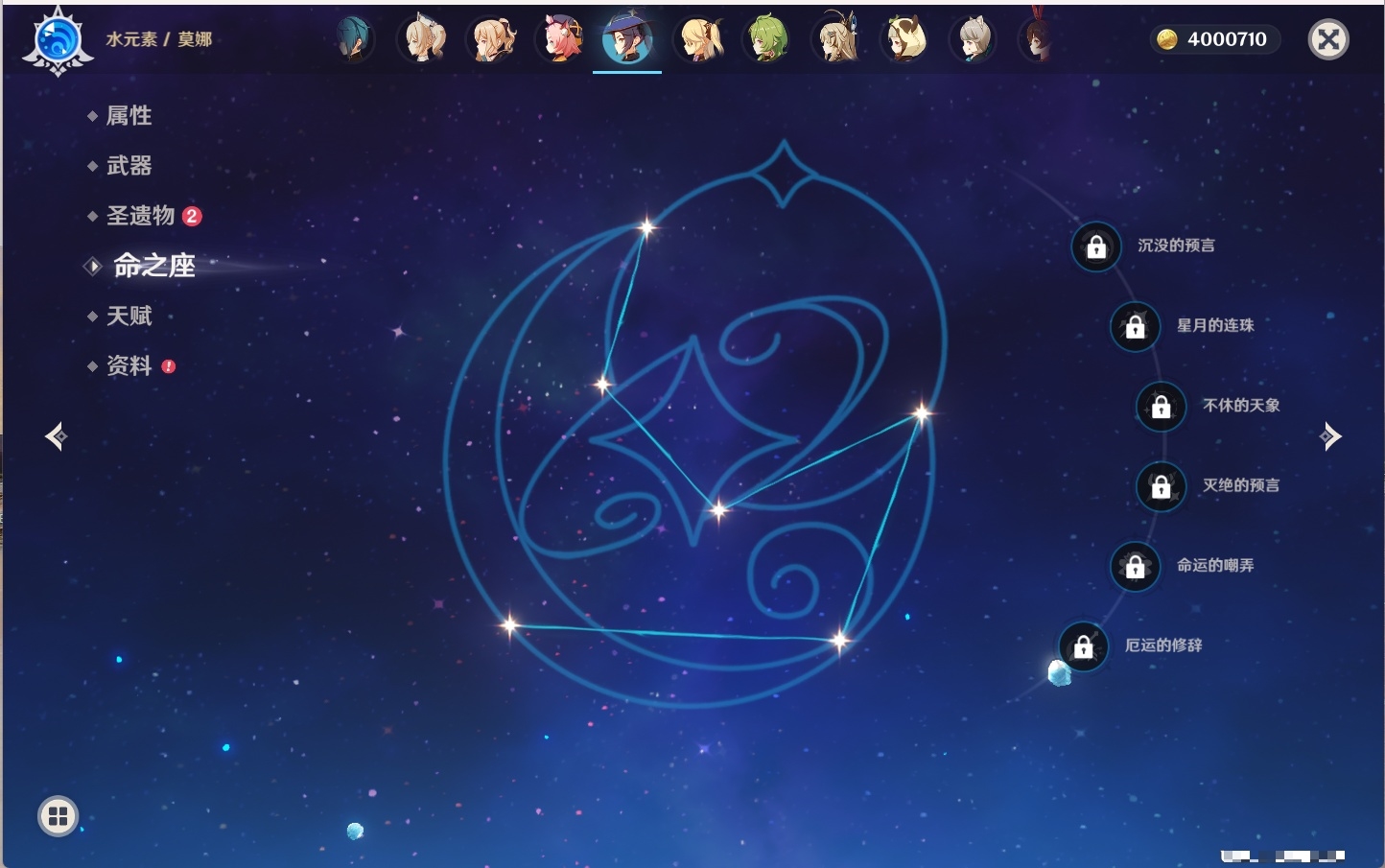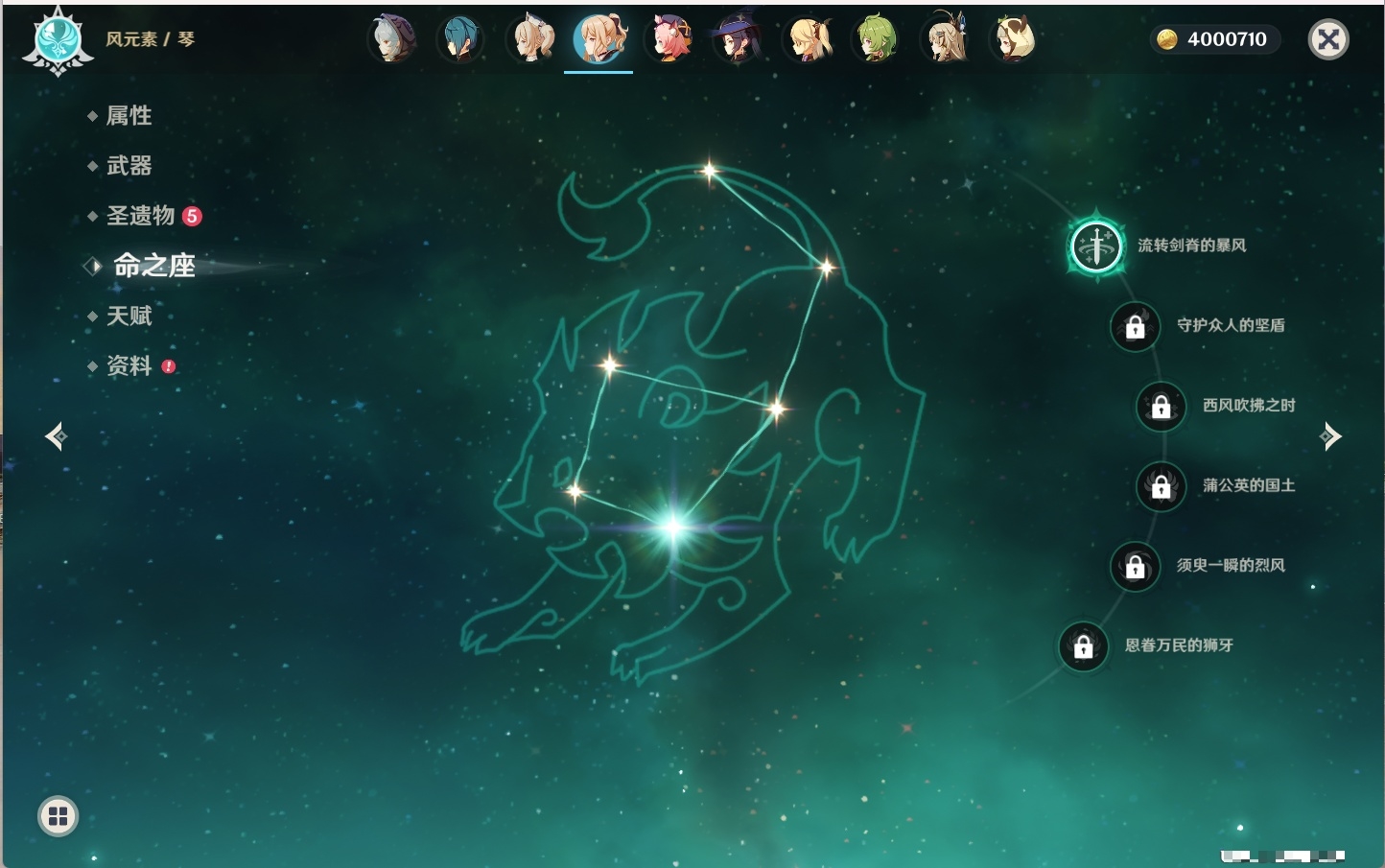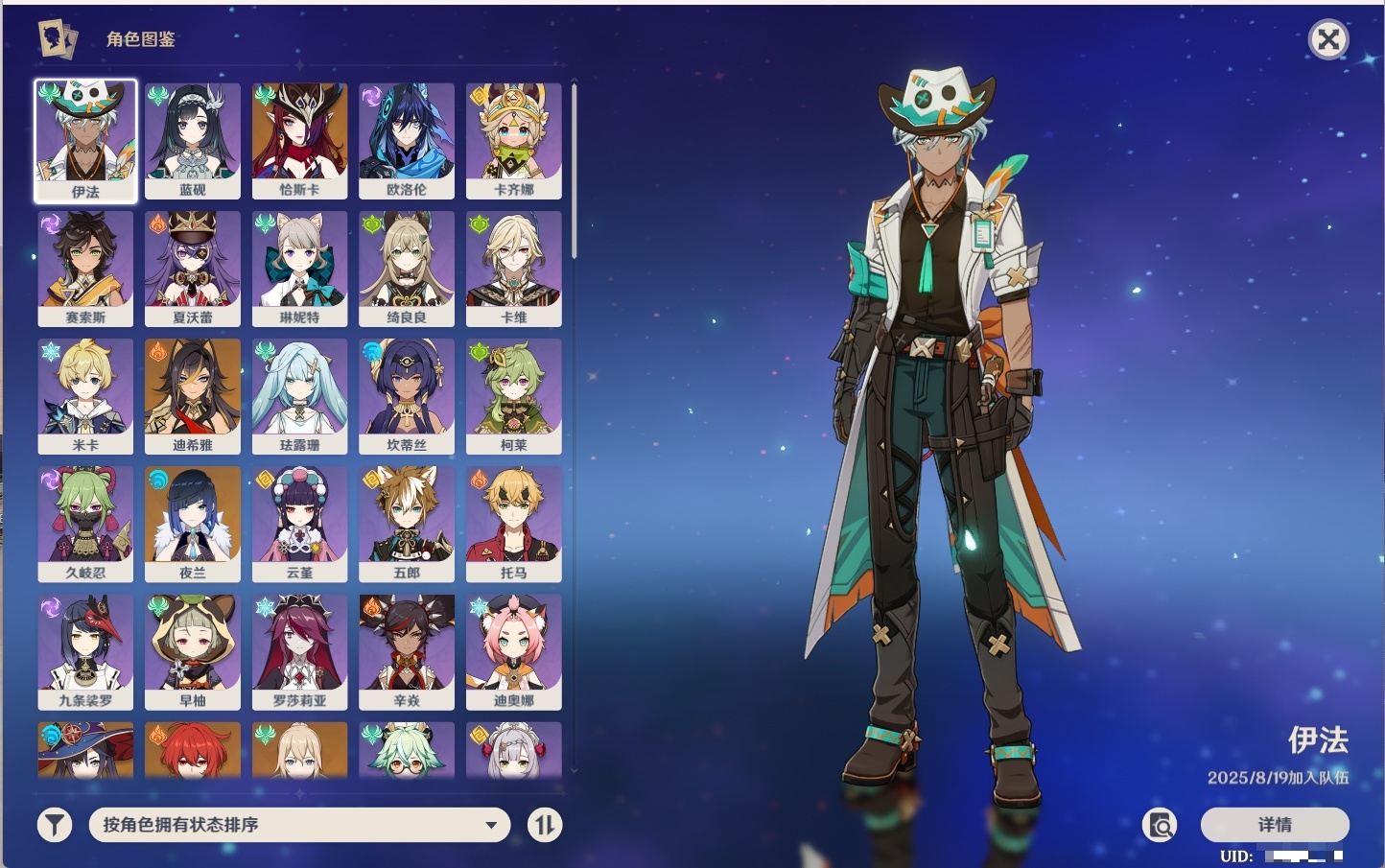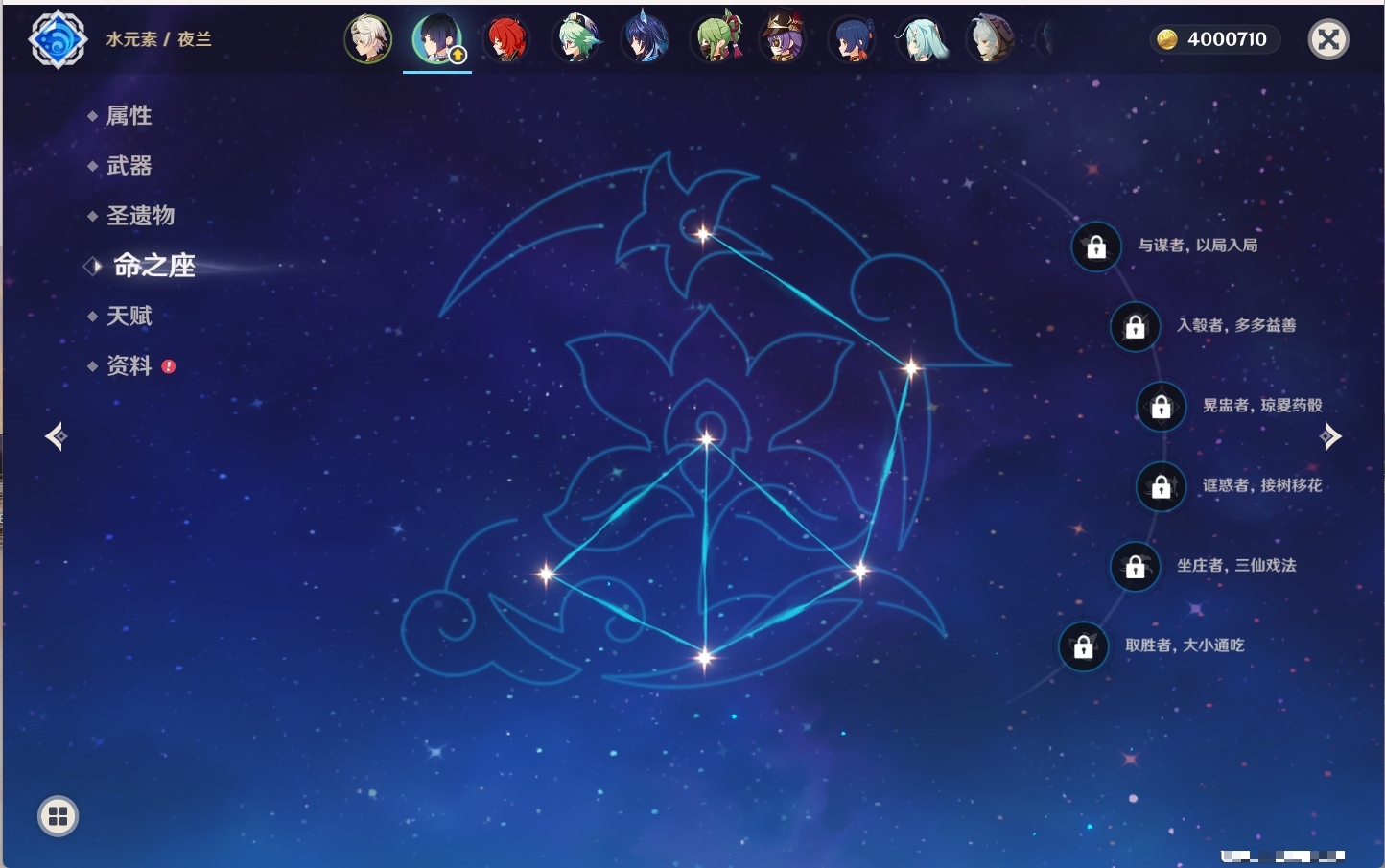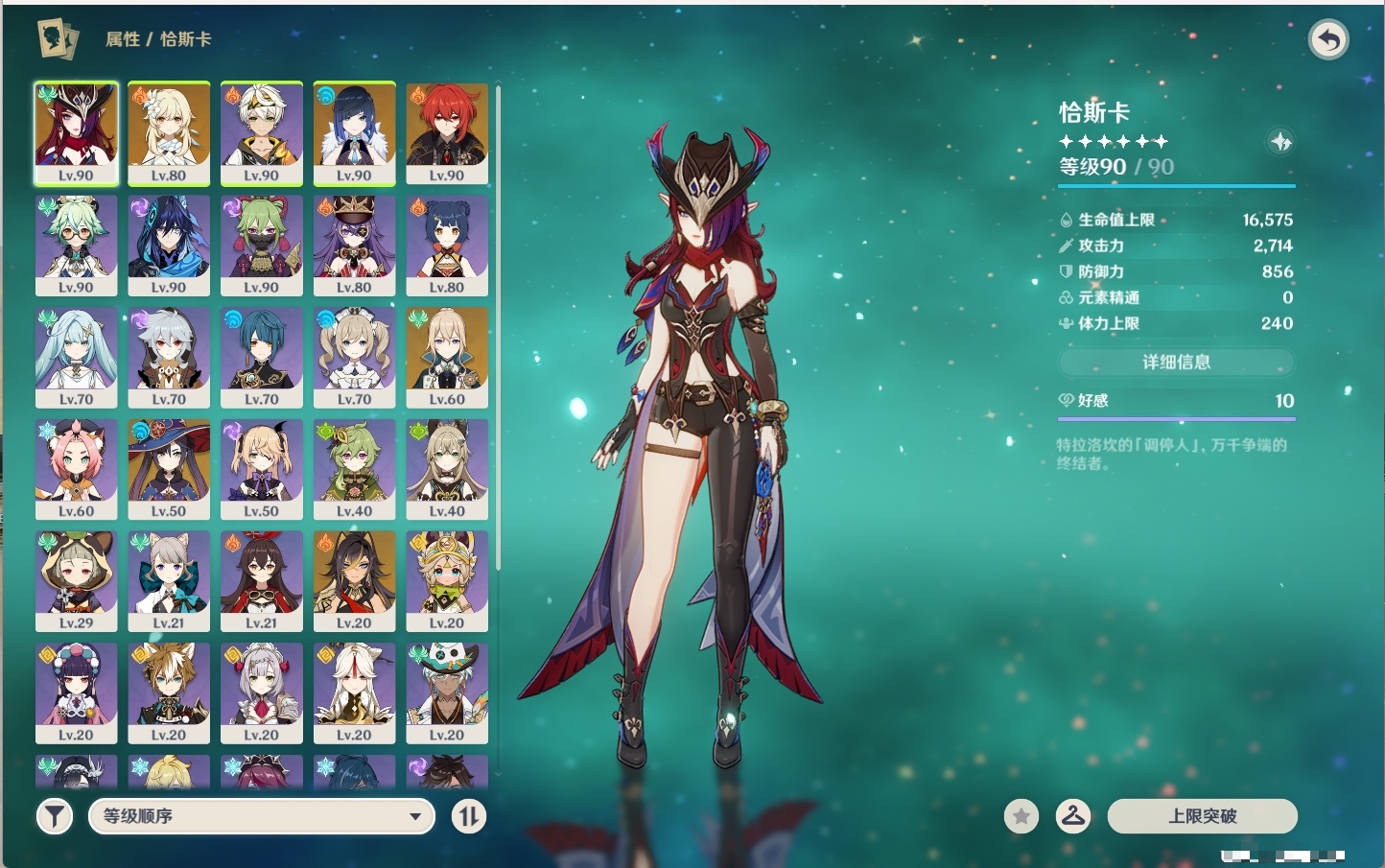 [13977248]19黄 风:6命恰斯卡,1命琴 火:2命迪卢克,0命迪希雅 水:0命夜兰,0命莫娜 弓:精1星鹫赤羽 双手剑:精1狼的末路 长柄武器:精2和璞鸢 【角色皮肤】 四星角色:班尼特-炽绘奇旅
