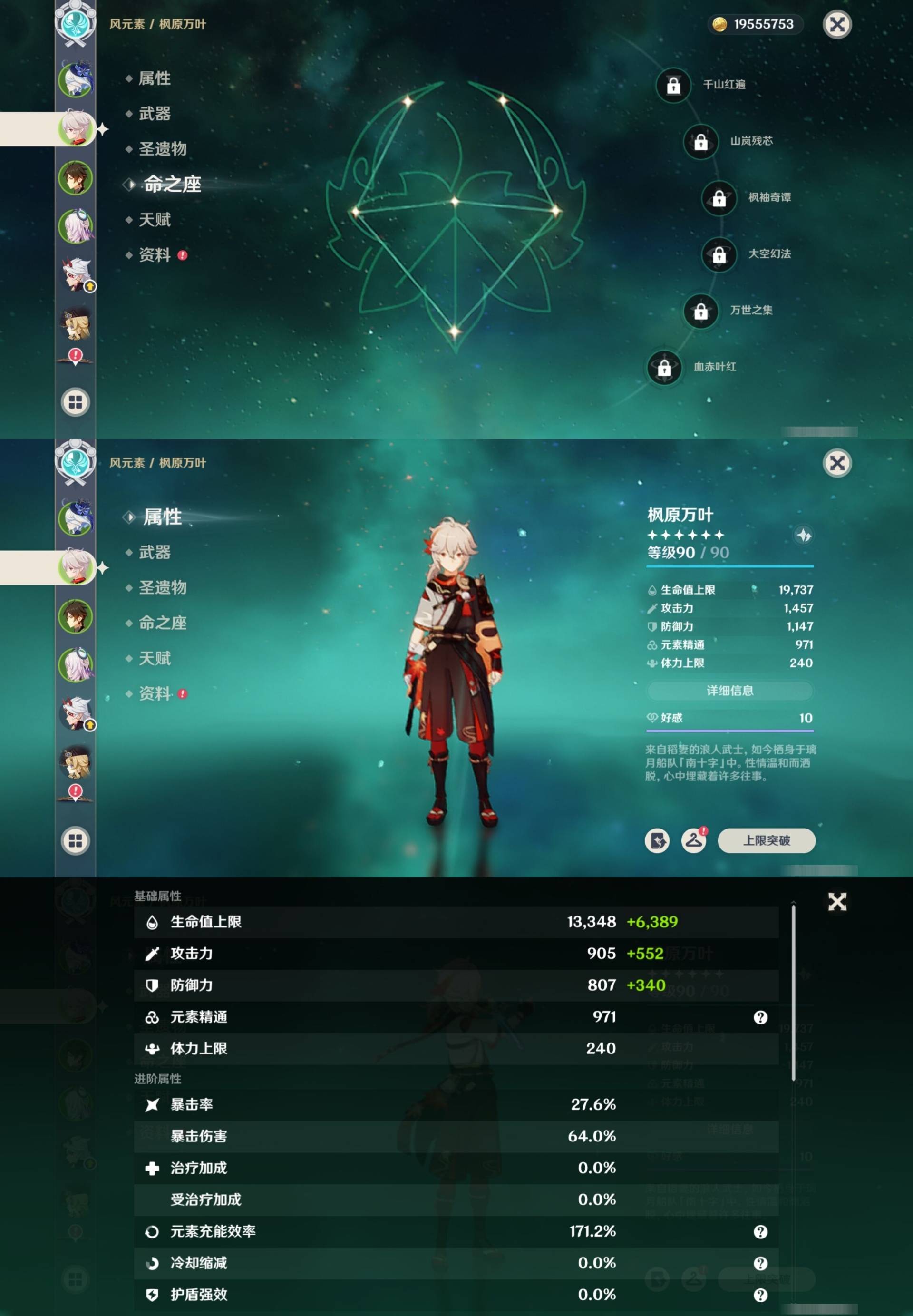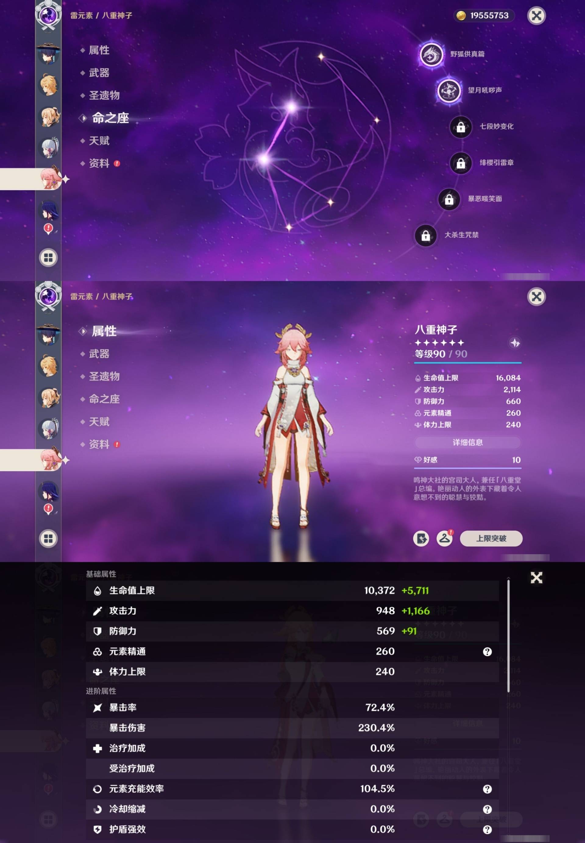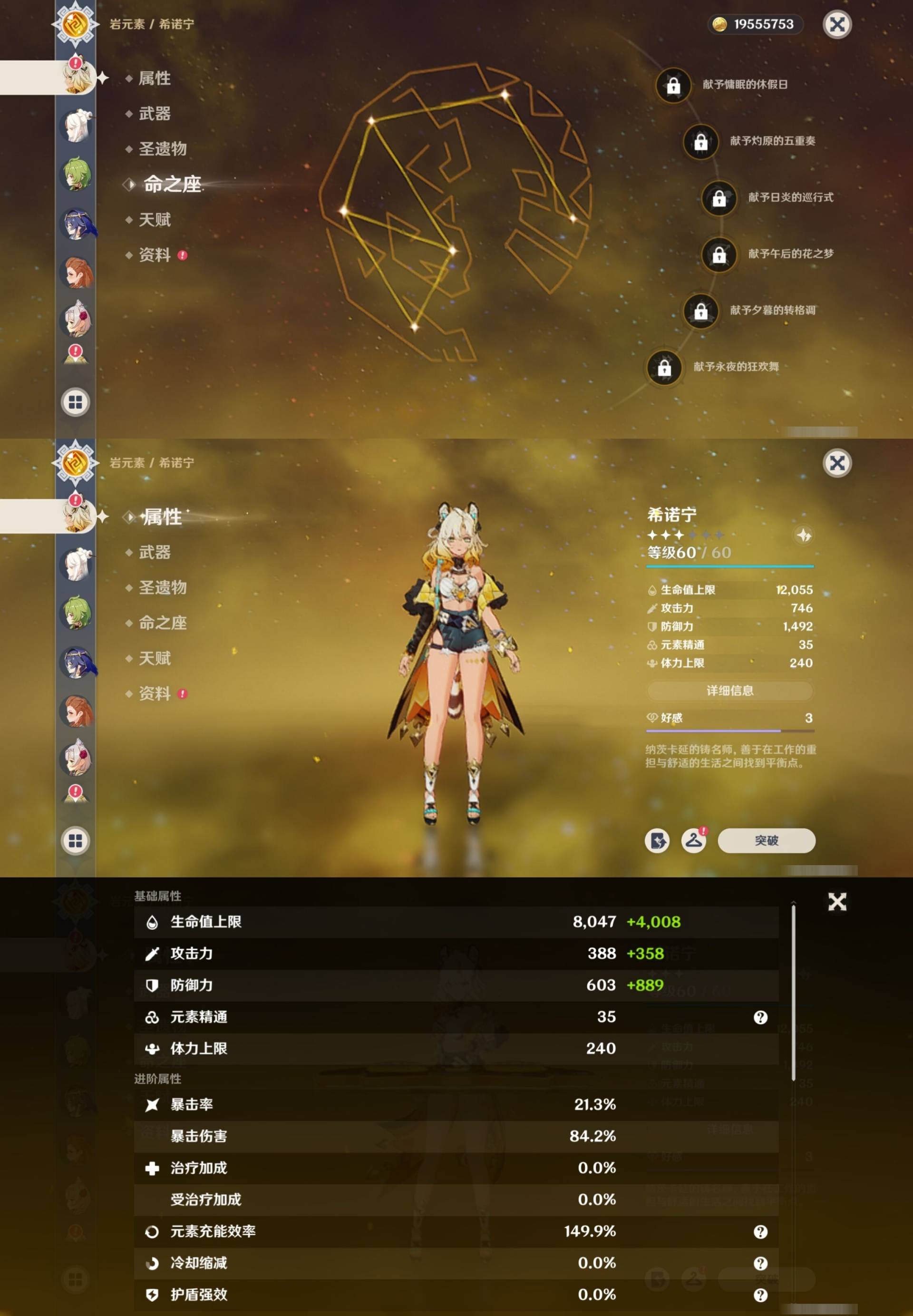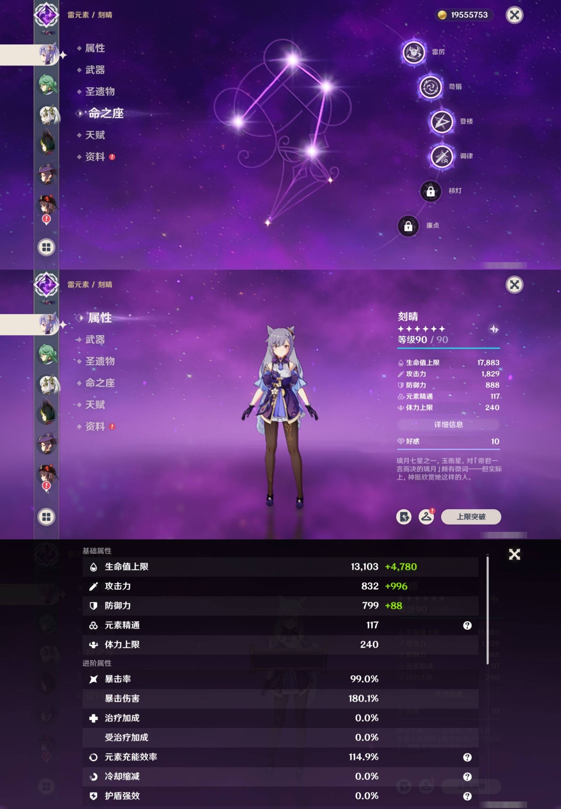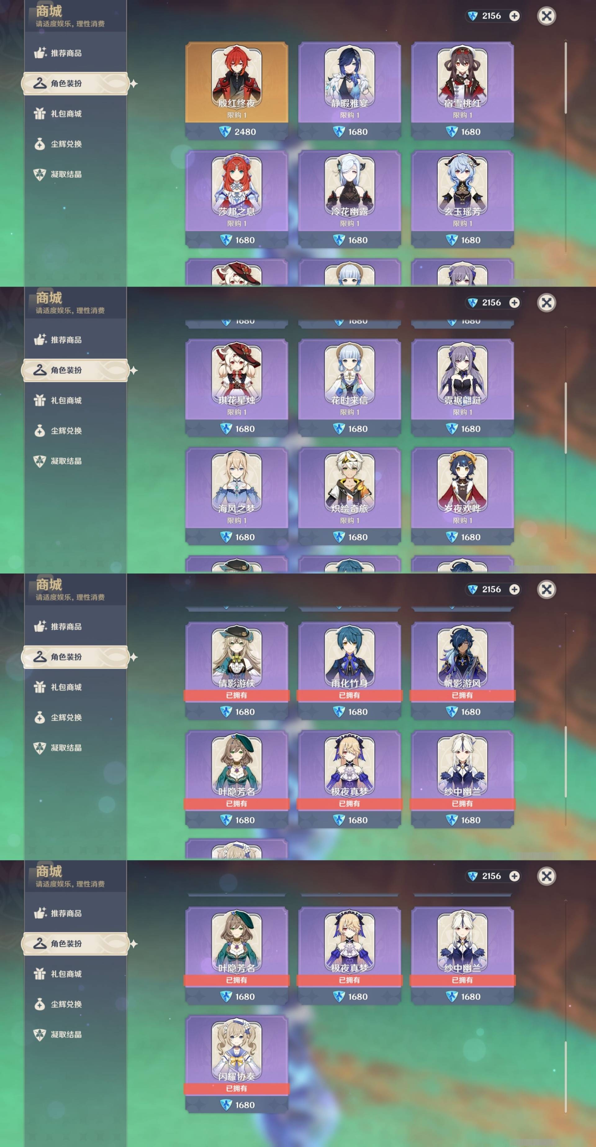 [14000924]72黄 风:0命枫原万叶,1命流浪者,4命琴 火:1命胡桃,1命迪希雅,3命迪卢克 水:6命芙宁娜,0命莫娜 冰:0命茜特菈莉,0命神里绫华,2命七七,0命埃洛伊 岩:0命钟离,1命荒泷一斗,0命娜维娅,0命希诺宁 雷:2命八重神子,0命雷电将军,4命刻晴 草:0命白术,0命纳西妲,3命提纳里 弓:精1天空之翼,精1阿莫斯之弓 法器:精1图莱杜拉的回忆,精1神乐之真意,精1碧落之珑 单手剑:精1静水流涌之辉,精1雾切之回光,精1雾切之回光,精1苍古自由之誓,精1风鹰剑,精1风鹰剑,精1圣显之钥,精1岩峰巡歌 双手剑:精2赤角石溃杵,精3无工之剑,精1天空之傲 长柄武器:精1薙草之稻光,精1护摩之杖,精1天空之脊 【角色皮肤】 四星角色:绮良良-倩影游侠,行秋-雨化竹身,凯亚-帆影游风,丽莎-叶隐芳名,菲谢尔-极夜真梦,凝光-纱中幽兰,芭芭拉-闪耀协奏