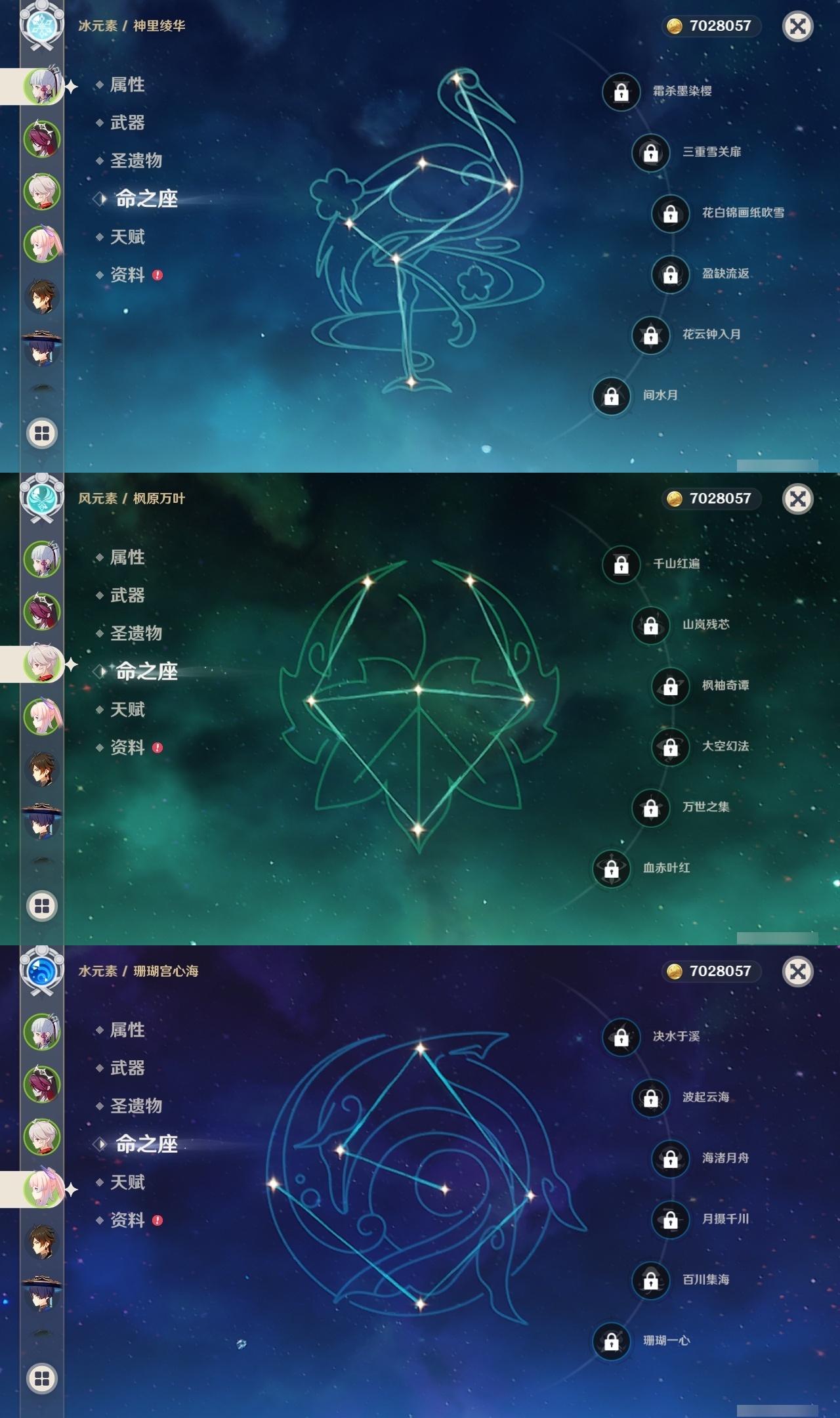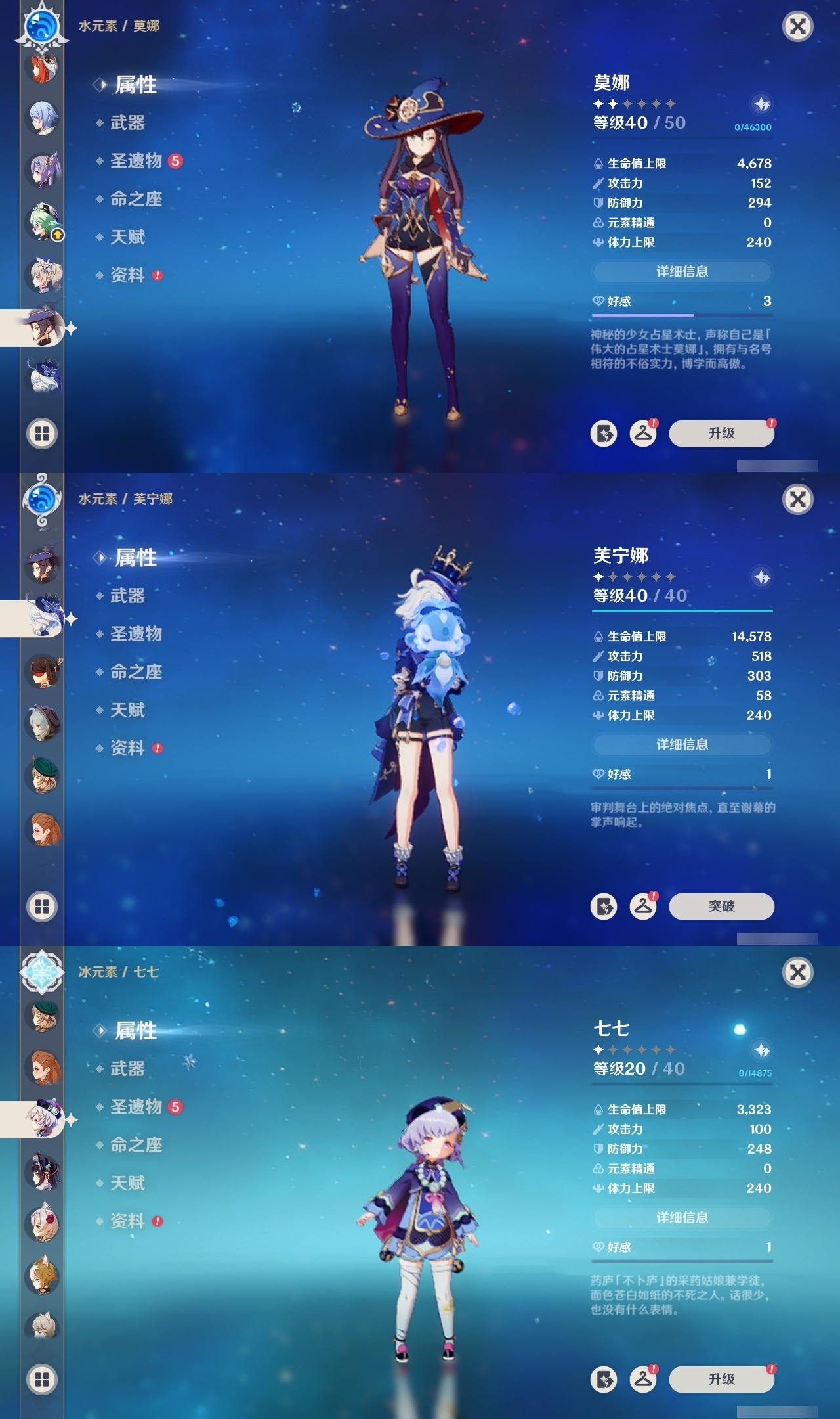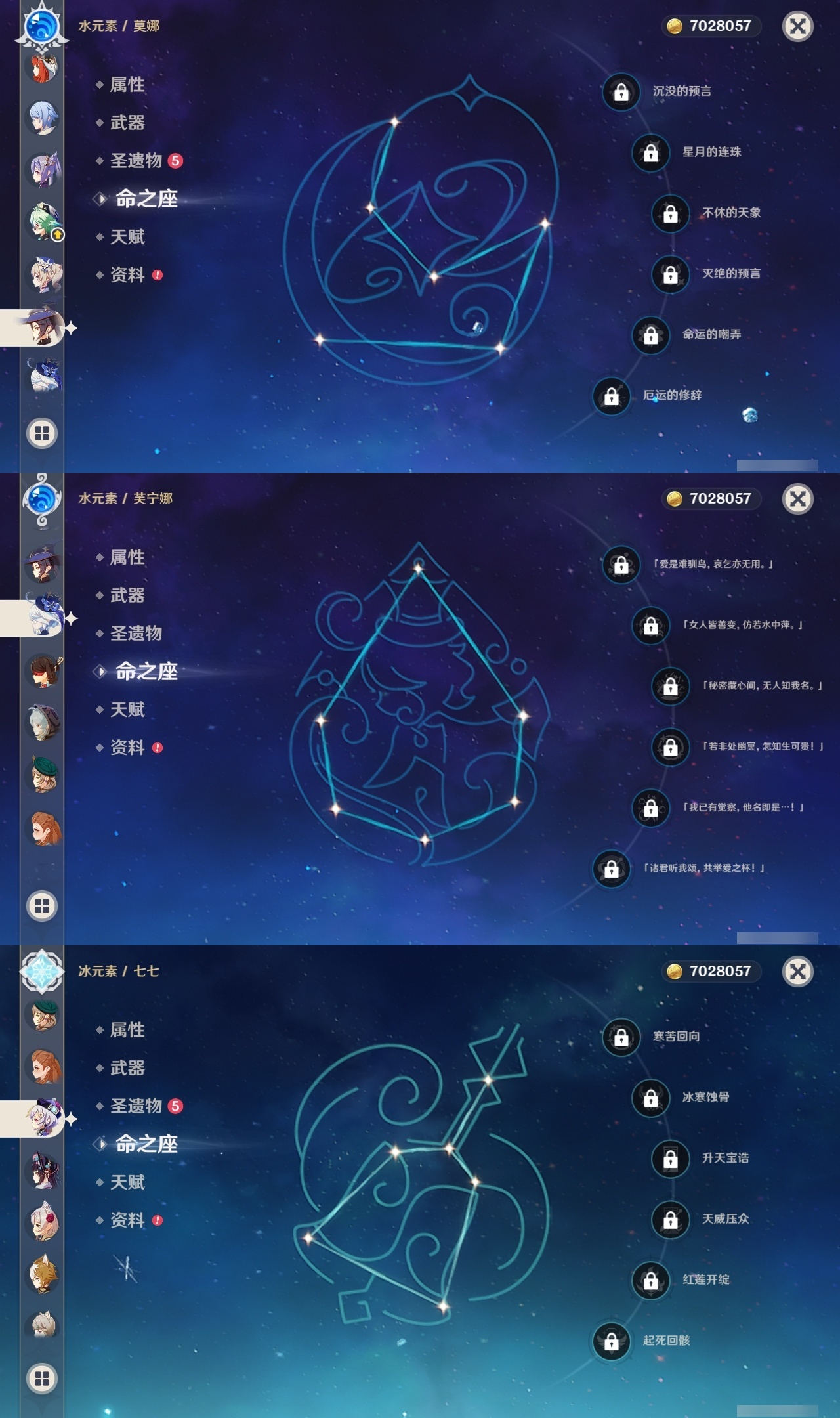【原神】【lyys8668】冒险等级:58,五星数量:34,五星角色:迪卢克 2命魈 2命刻晴 2命雷电将军 2命流浪者 1命莫娜七七琴珊瑚宫心海神里绫华优菈钟离达达利亚八重神子神里绫人夜兰芙宁娜妮露纳西妲枫原万叶可莉__五星武器:无工之剑 3精天空之卷 2精图莱杜拉的回忆飞雷之弦振护摩之杖四风原典松籁响起之时天空之脊天空之刃雾切之回光薙草之稻光若水__四星角色:行秋 6命九条裟罗 6命香菱 6命凝光 6命砂糖 6命芭芭拉 6命烟绯 6命重云 6命辛焱 6命诺艾尔 6命罗莎莉亚 6命雷泽 6命北斗 6命班尼特 5命莱依拉 5命云堇 5命菲谢尔 5命迪奥娜 3命早柚 3命托马 3命五郎 3命久岐忍 2命鹿野院平藏 2命珐露珊 2命多莉 2命柯莱 2命埃洛伊绮良良瑶瑶米卡菲米尼琳妮特赛索斯
